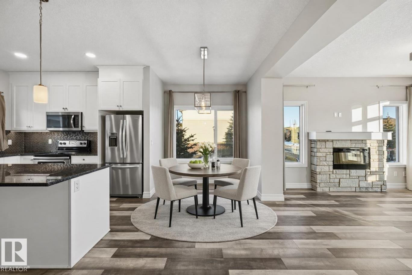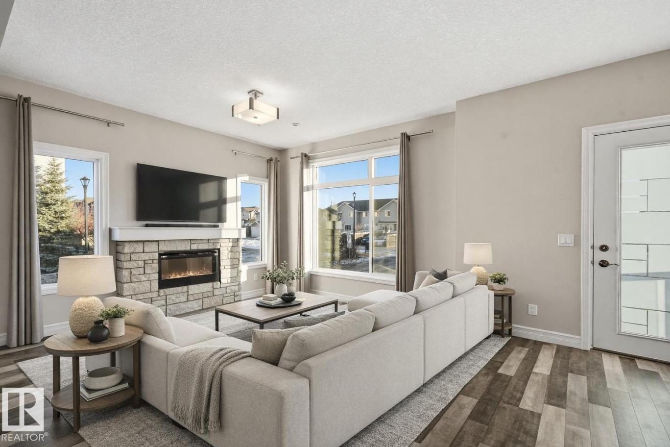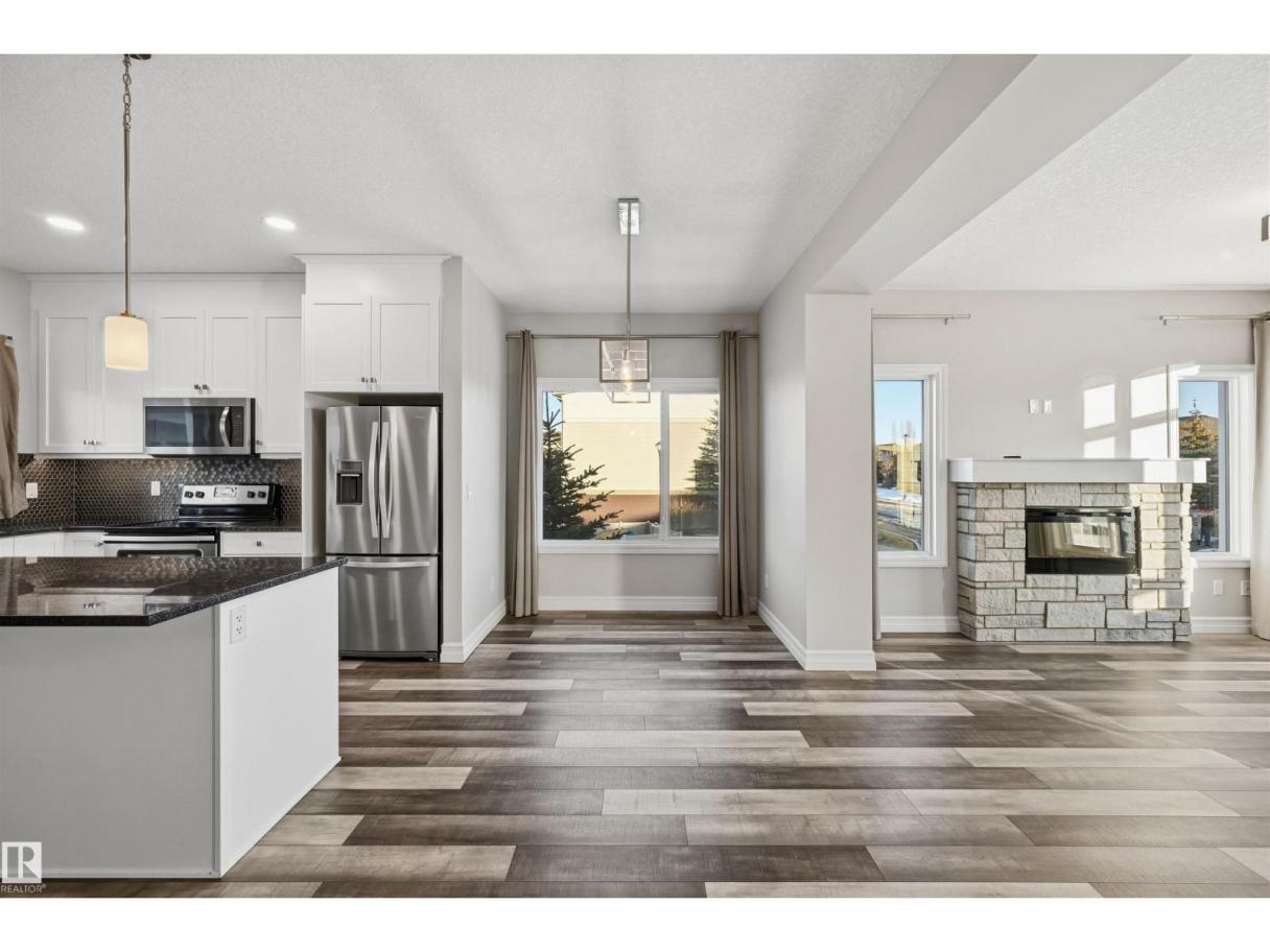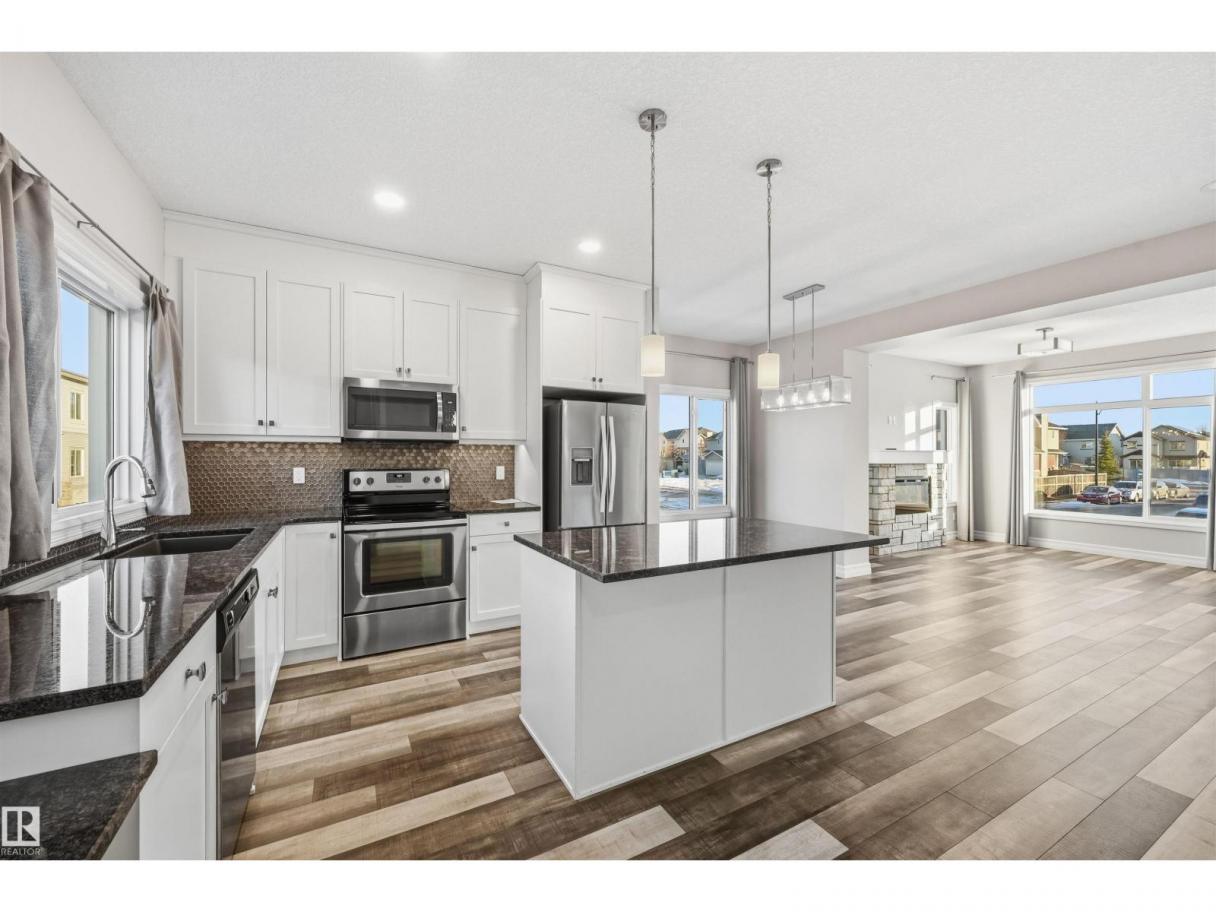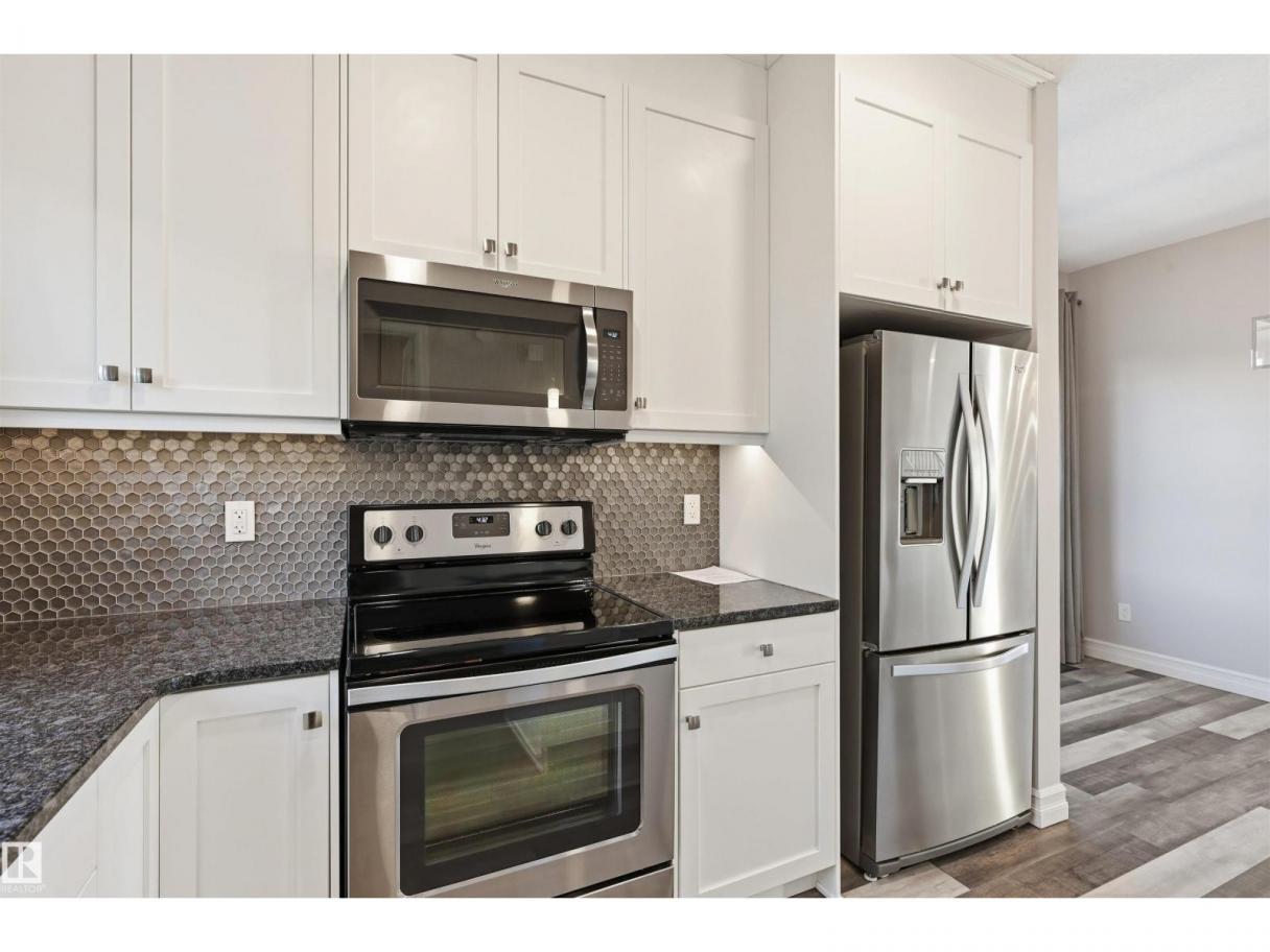 Bright, modern & spacious END UNIT 3 bed/2.5 bath townhouse w/ double attached garage in the desirable Walker neighborhood. 1600 sf total living space. Perfect for 1st time home owners or investors! Main floor features 9' ceilings, vinyl plank floors & a roomy living rm filled with natural light. Kitchen offers a functional layout, stainless steel appliances, quartz countertops, tons of counter space, walk-in pantry, eating bar, & built in desk. Upper level also has 9' ceilings & large primary bedrm w/ 3pc ensuite & walk in closet. Two other well sized bedrms, 4 pc main bath & laundry complete this level. Ground floor flex room w/ large window is perfect for an office, play rm, exercise area, or extra storage space! Energy-efficient mechanical including HRV & tankless hot water for a lower utility bill. This well maintained complex offers visitor parking and nearby walking trails & lake. Conveniently close to shopping, schools & public transit. Quick access to commuter routes incl Henday! (id:6769)