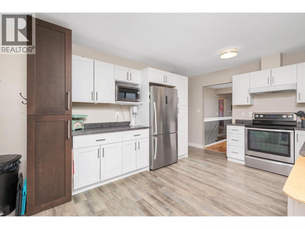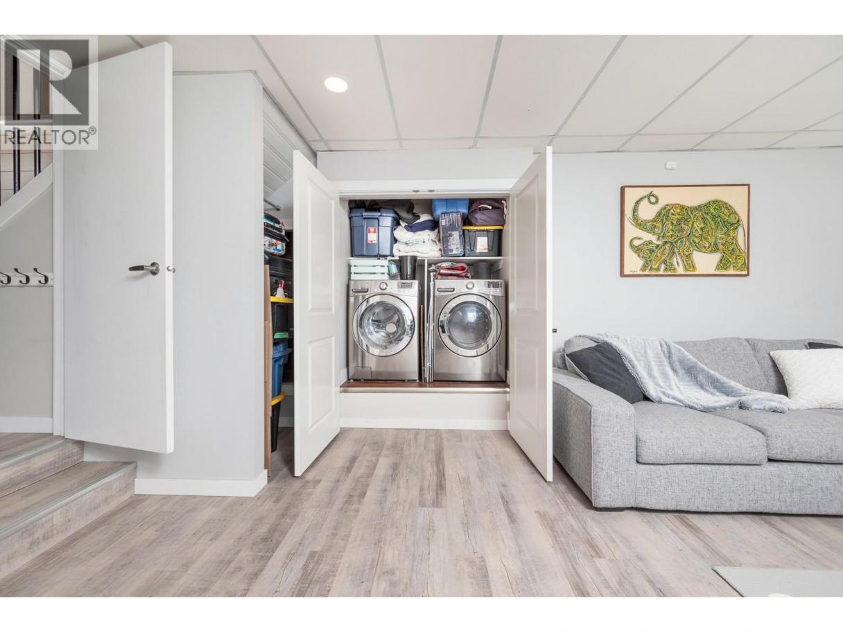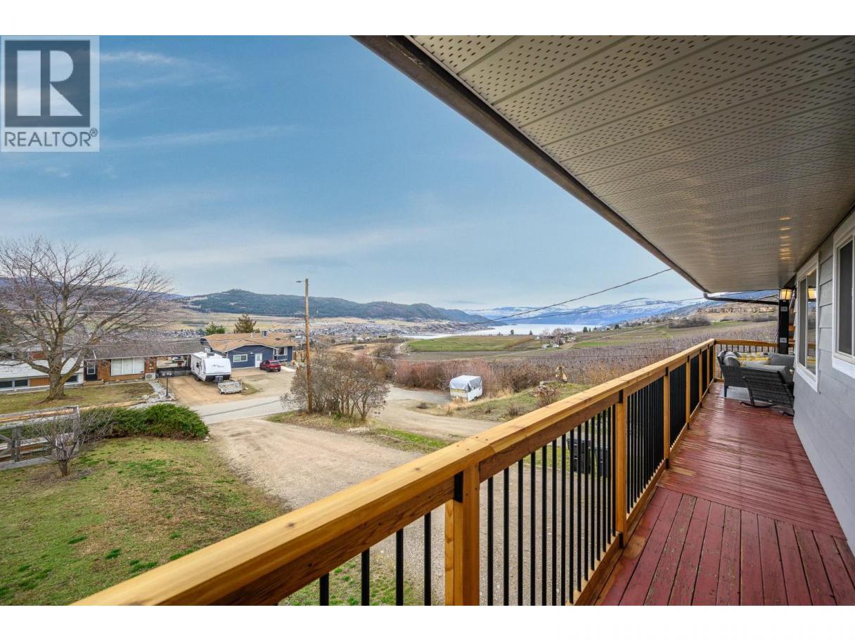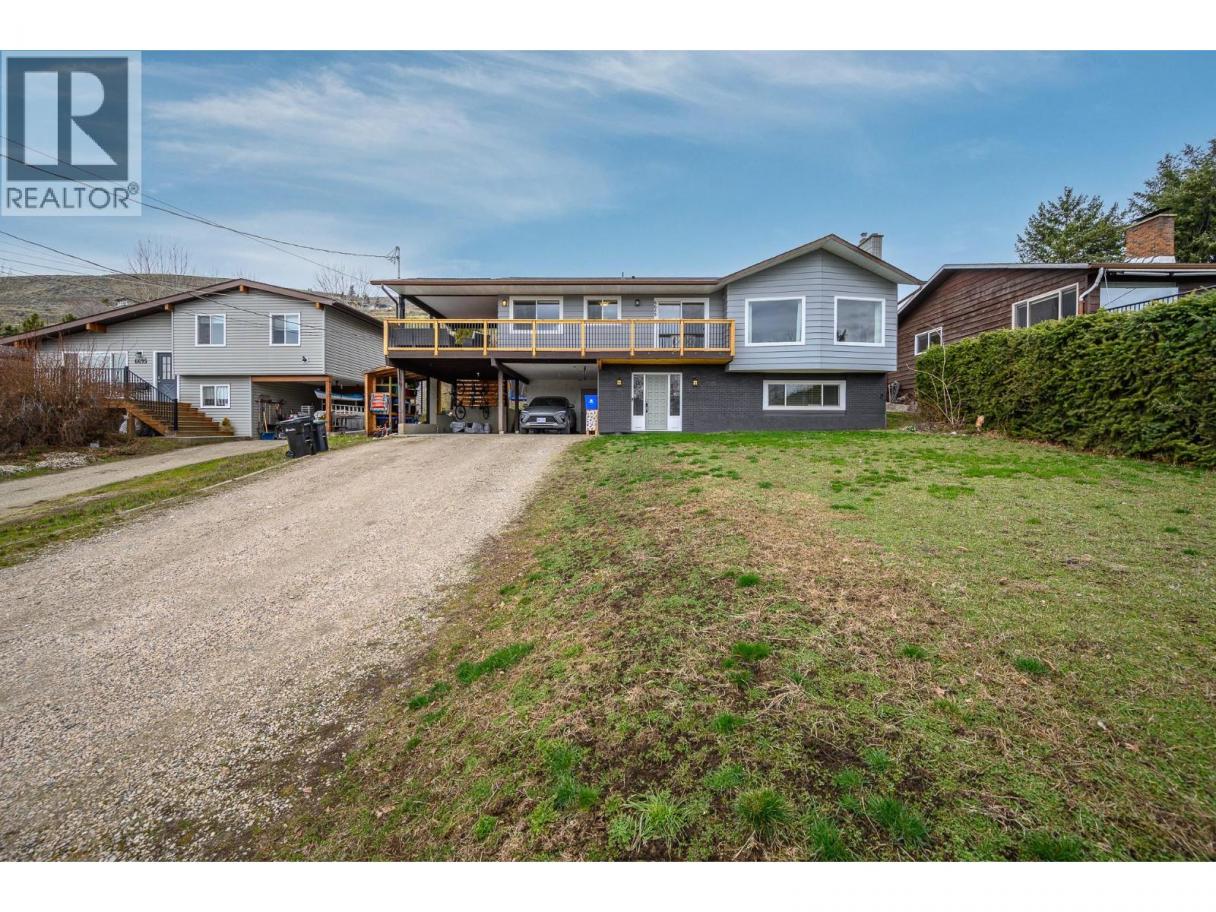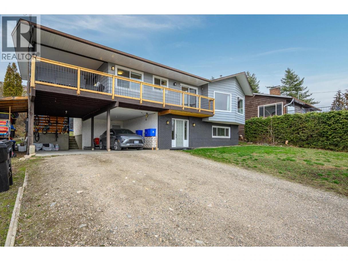 Welcome to this spacious family home at the end of a quiet dead-end street, offering privacy, beautiful Okanagan Lake and valley views, and direct access to the Gray Canal Trail from your backyard. The entry level features a large foyer, versatile bonus space ideal for a family room, playroom, or home office, and conveniently located laundry. The second level offers a bright, functional layout with a generous living and dining area, large picture windows, and a cozy gas fireplace to enjoy the views year-round. The well-appointed kitchen provides ample cabinetry and workspace and opens to the large covered deck—perfect for outdoor dining and entertaining. The bedrooms are located facing the backyard with the primary bedroom with dual closets and a 3-piece ensuite, two additional bedrooms, and a full main bathroom, making it ideal for families. A self-contained in-law suite with private entry off the carport adds excellent flexibility for extended family or rental income, complete with its own kitchen, living area, bedroom, and laundry. Outside, enjoy spacious front and back yards with plenty of room for kids, pets, and gardening. The backyard also features a large detached shop, ideal for hobbies or storage. Ample parking includes a double carport and extended driveway. A fantastic opportunity to enjoy the Okanagan lifestyle in a quiet, family-friendly location close to trails, nature, and amenities. Bring your family and start enjoying the Okanagan lifestyle today! (id:6769)