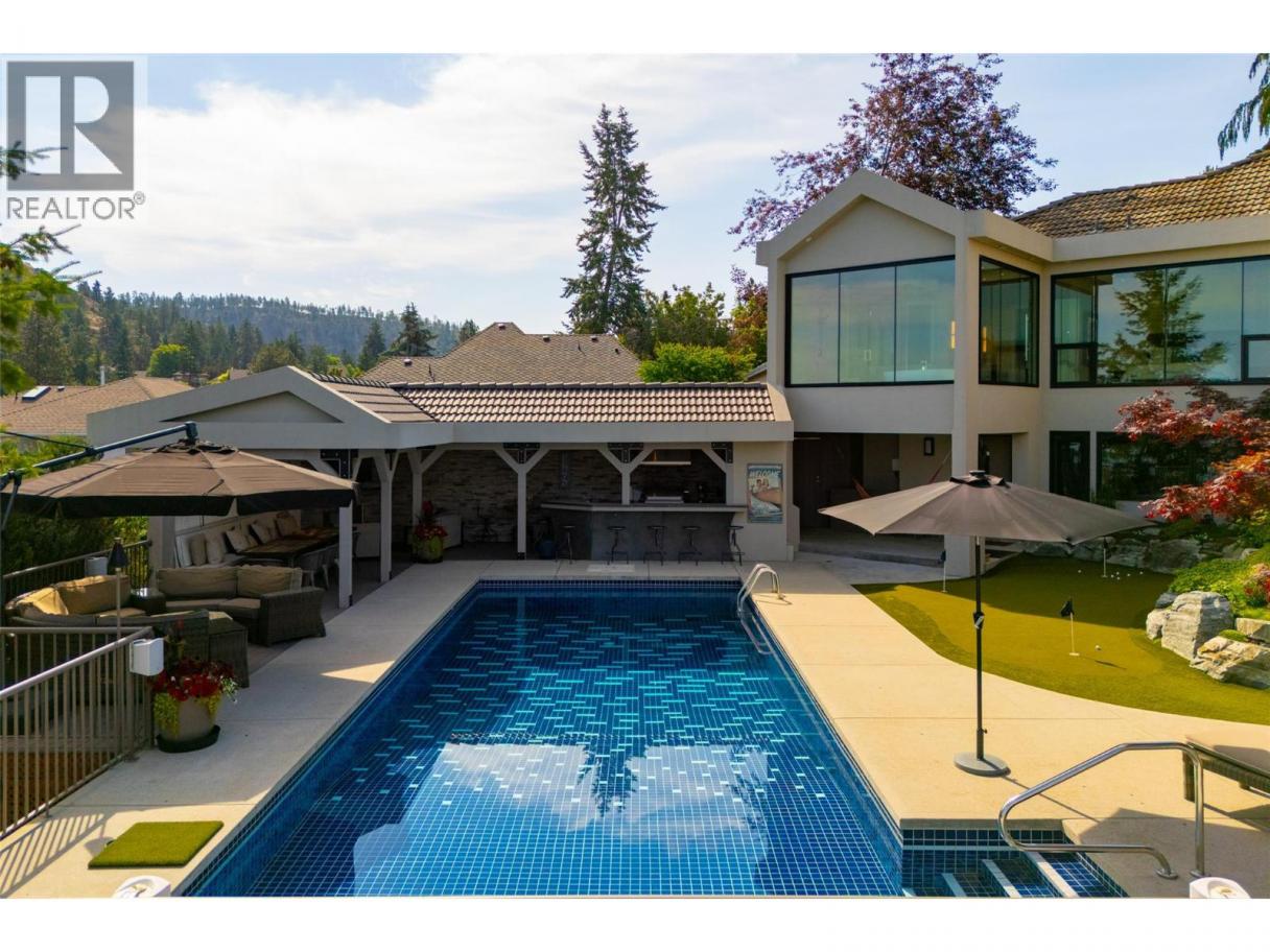 The Hideaway — Where Privacy, Nature, and City Life Meet Offered at $3.99M. The Hideaway delivers what may be the most breathtaking view in the entire Okanagan Valley — full stop. Bordered by untouched nature and backing directly onto one of Kelowna’s most scenic and sought-after parks, this property offers rare backyard privacy with nothing but forest and lake beyond. Inside, more than 5,700 square feet unfolds across five levels of thoughtful design, natural light, and effortless living. At its heart, a dramatic 26-foot wall of glass transforms the Okanagan into living art, placing the lake and valley permanently on display. Every space flows naturally into the next — from the chef’s kitchen to the gym, the terrace to the putting green, the games room to the pool deck — designed for entertaining, relaxation, and the quiet luxury of total privacy when desired. A new standout feature is one of Kelowna’s most stunning private saunas, perfectly positioned to capture panoramic lake views, creating a spa-like retreat rarely found in residential homes. And while it feels worlds away, downtown Kelowna is just ten minutes from your door. The Hideaway isn’t simply a home — it’s an experience. One that must be seen, felt, and lived to be fully appreciated. Enjoy the video. (id:6769)