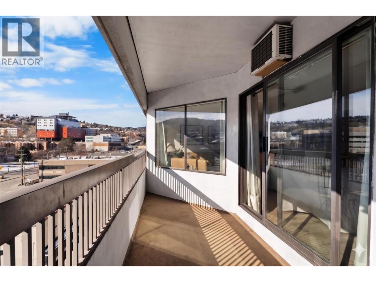 Comfortable downtown living in a concrete building - you cant hear a single neighbor! Just steps from many of Kamloops’ most loved amenities. Located on the 7th floor, this south-facing unit captures beautiful views overlooking Petersen Creek and the bridge, with sliding glass doors from both the dining area and one of the bedrooms leading to a private deck where you can enjoy the scenery and natural light. The home has seen several updates over the years including modern flooring, fresh paint, and a clean feel throughout. The building is centrally located within walking distance to the Farmers’ Market, Riverside Park, the hospital, Sandman Centre (home of the Kamloops Blazers), the library, gym facilities, restaurants, and local coffee shops—making everyday errands and entertainment incredibly convenient. Residents also enjoy access to shared amenities including a large outdoor patio and a common lounge with library and games on the main level. An ideal option for those seeking low-maintenance living in one of Kamloops’ most walkable neighbourhoods. (id:6769)