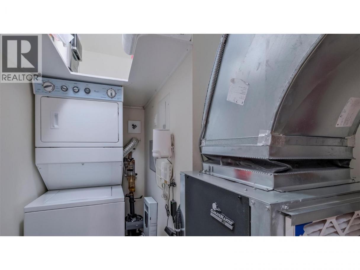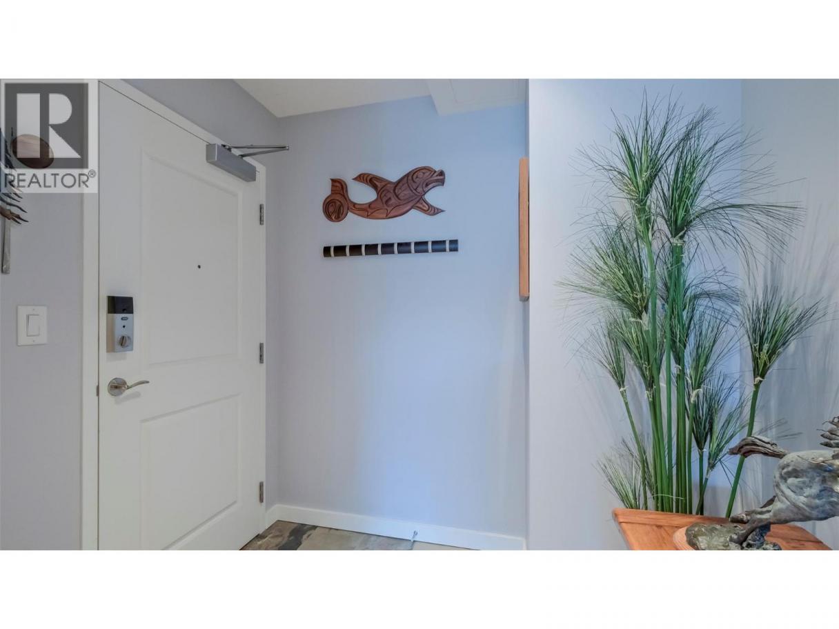 Welcome to this beautifully refreshed 1,277 sq. ft. southwest corner condo, where floor-to-ceiling windows bathe the space in natural light. Perfectly positioned on the quiet side of the building, this home offers exceptional privacy and peace away from street noise. Enjoy panoramic lake and mountain views from your expansive 400 sq. ft. covered deck—ideal for year-round outdoor living with a built-in natural gas BBQ hookup. Inside, the open-concept layout features two generously sized bedrooms, a flexible den or home office, and airy 9' ceilings throughout. Recent updates include fresh paint, a new fridge and stove, and stylish new window treatments. This home also comes with a premium parking stall, a secure storage locker, and access to additional secure parking if needed. Geo-thermal heating and cooling are included in the strata fee, covering heating, hot water, and air conditioning for year-round comfort and efficiency. Whether you're downsizing, investing, or searching for a serene retreat, this condo is a must-see. (id:6769)