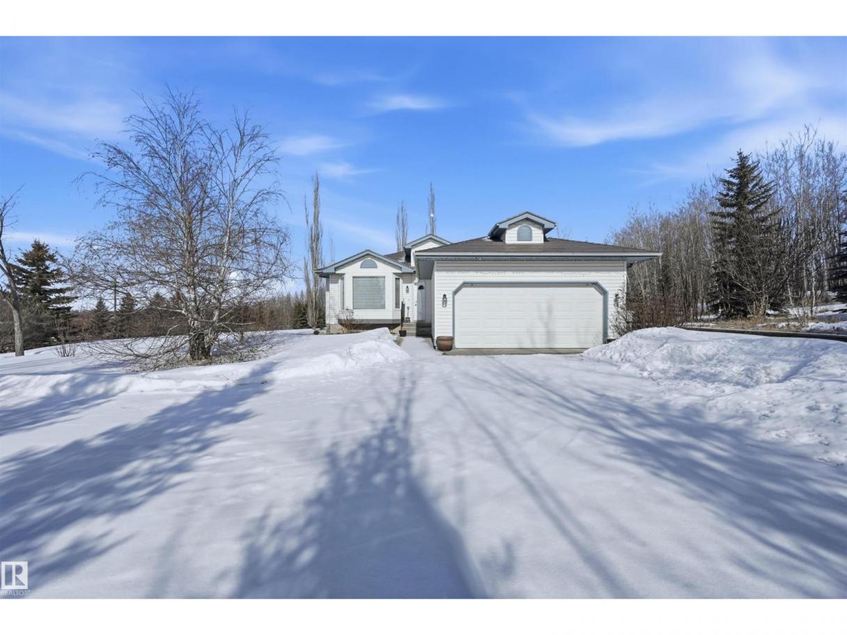 PRIVATE 3.3 ACRE LOT 10 MIN DRIVE TO BEAUMONT IN SCOTTSDALE ESTATES!! Original owner & meticulously maintained! Mature Evergeens border the entire property & create a sense of quiet serenity. Inside, sun lights the home w/ skylights & large windows. Gorgeous gas fireplace in living rm features imported stone surround & provides ample heat in the winter. Kitchen has granite/quartz updates, plenty of cabinets, wall oven & gas stove. Primary retreat w/ spa-like ensuite* & deck access! Main floor complete w/ 2nd bdrm, 2nd bthrm & laundry rm. Basement has in-floor heating, 2nd living area, huge 3rd bdrm, 3pc bthrm & cold storage/storage. Enjoy quiet summer evenings on the wrap-around deck w/ sunset views + apple trees, ample gardening space, firepit area & storage shed. Features: NEW METAL ROOF, NEWER HARDWOOD, newer hot water tank, newer washer/dryer, HEATED OVERSIZED GARAGE, central vac, BBQ gas line & more! *Hot tub could be moved to exterior & freestanding tub installed* 4th bdrm could be added in basement (id:6769)