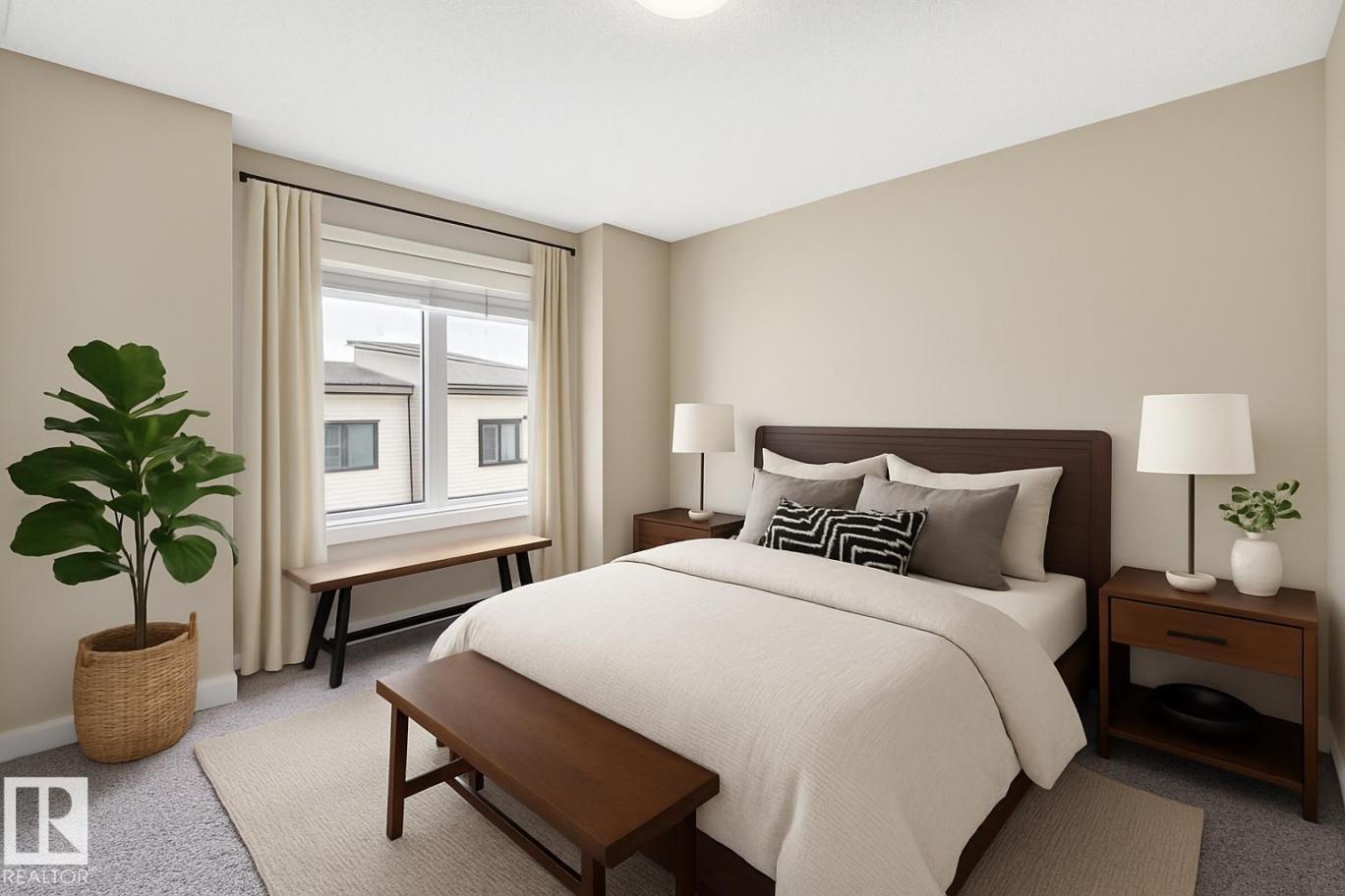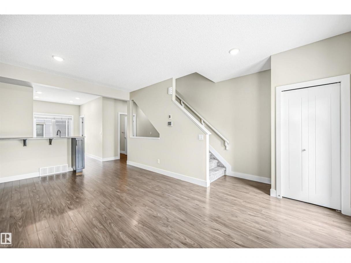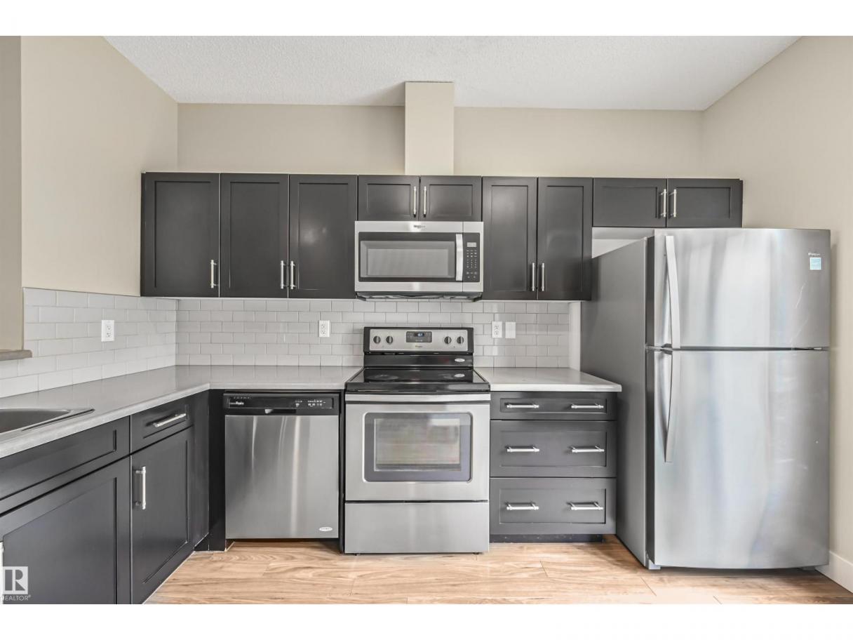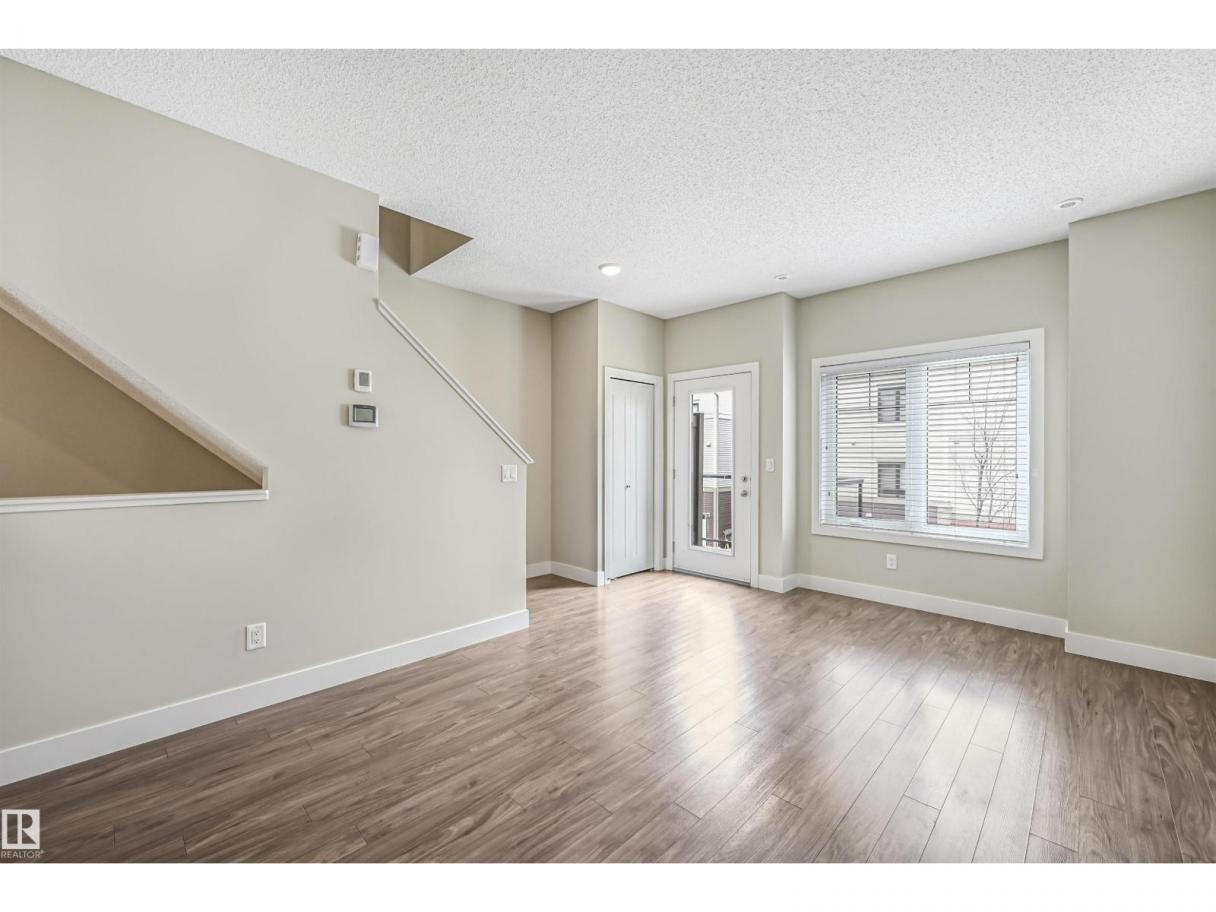 Welcome to this well-maintained spacious 2 bedroom/2.5 bath townhome in the desirable Walker. Main floor boasts a roomy open concept layout, 9' ceilings & quality finishings. The functional chef's kitchen includes S/S appliances, walk-in pantry & eating bar. Living room features an attached balcony to enjoy the fresh air & green space. The main level is equipped with a half bath & vinyl flooring. On the upper level, you'll find two well-sized bedrooms. Primary bedroom has 3pc ensuite & walk in closet. A second full bathroom and laundry closet complete the upper level. Flex room on ground level is perfect for a home office space or extra storage. Other features include a single attached garage and energy-efficient mechanical including tankless hot water for a lower utility bill. This well maintained complex offers visitor parking & is conveniently located close to shopping, walking trails & lake. Quick proximity to Anthony Henday, South Common, schools & public transportation. A must see! (id:6769)