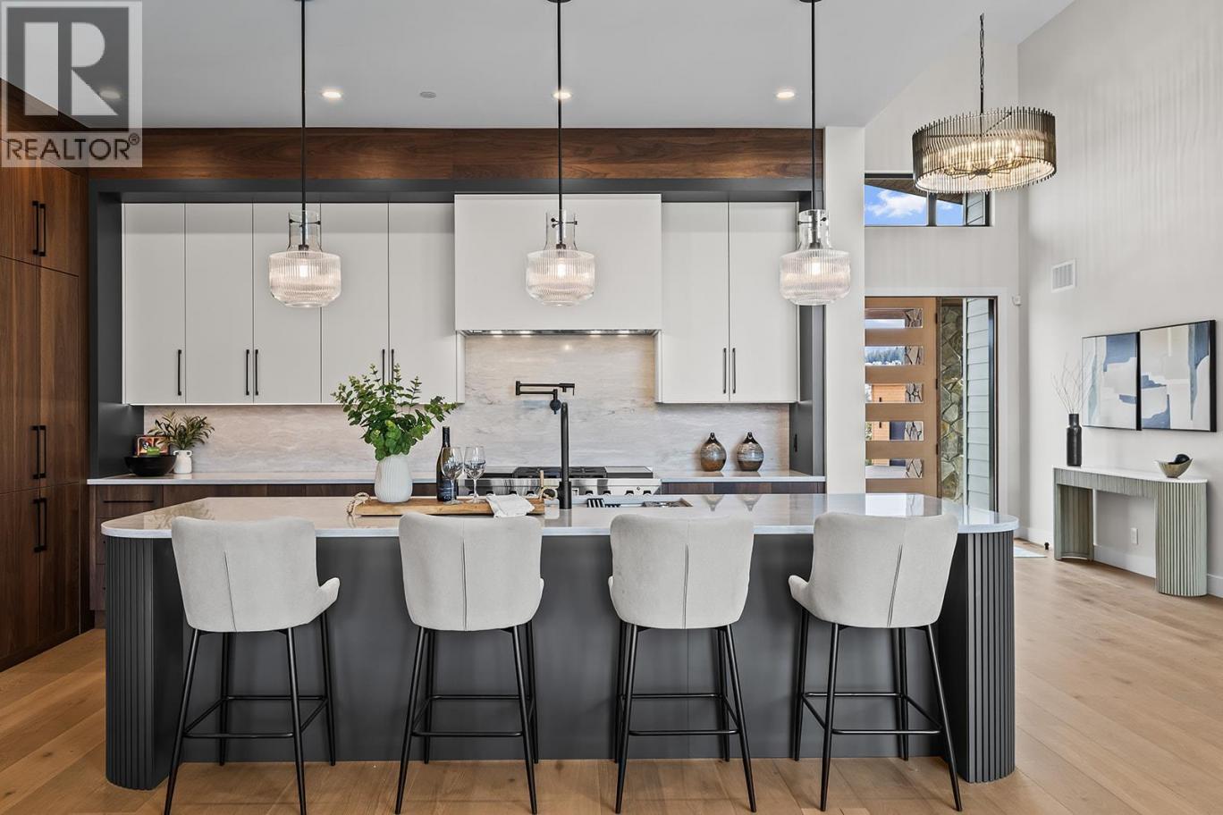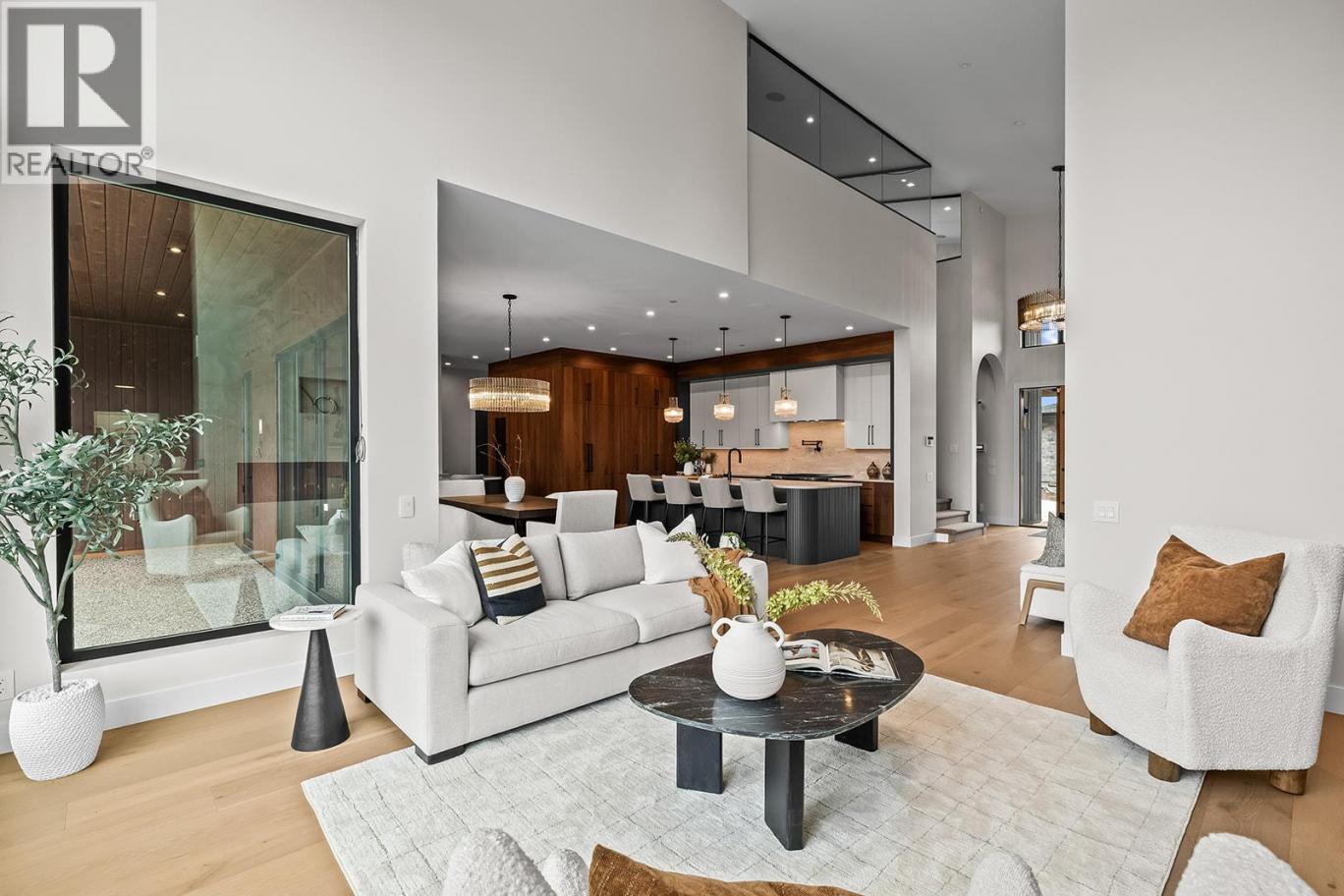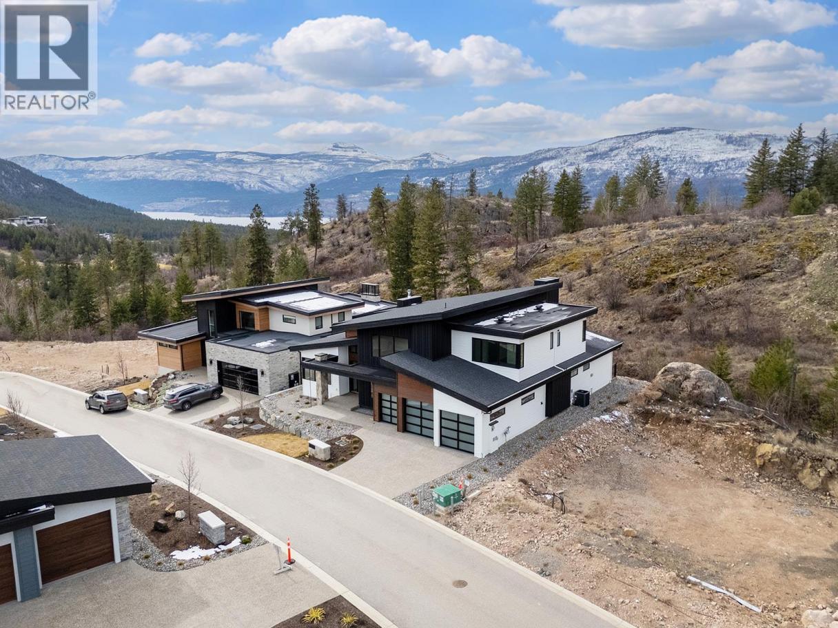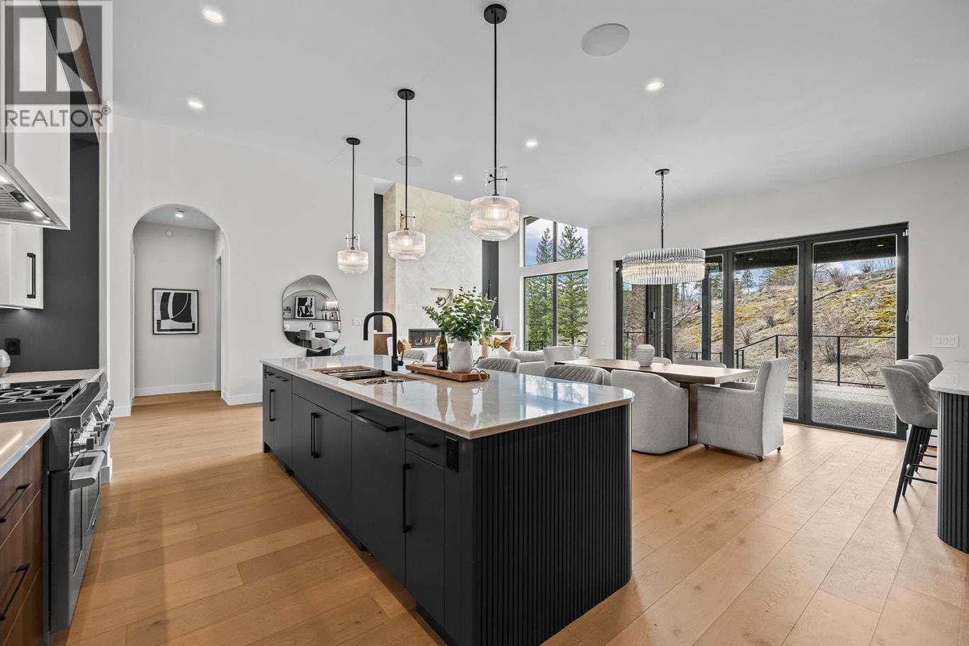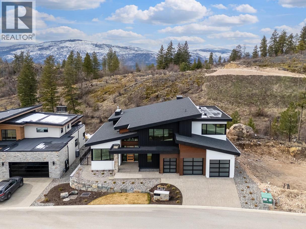 Experience refined Predator Ridge golf resort living in this exceptional Carrington Homes new build, where striking architecture meets seamless indoor outdoor design. Located in one of the Okanagan’s most prestigious Predator Ridge golf communities, this luxury residence offers breathtaking surroundings and thoughtfully crafted living spaces. The impressive exterior showcases multiple rooflines and professional landscaping that beautifully reflects the natural beauty of the Okanagan Valley. Inside, vaulted ceilings and expansive windows fill the home with natural light, creating a warm yet sophisticated atmosphere ideal for both everyday living and entertaining. At the heart of the home is a spectacular chef’s kitchen designed for culinary enthusiasts. An impressive 11 foot island with a 45"" workstation sink anchors the space, complemented by quartz surfaces, premium cabinetry, and a statement 48"" professional range featuring gas, induction, and sous-vide cooking capabilities. Concealed appliances and a hidden walk in pantry maintain a sleek, modern aesthetic while maximizing functionality. Entertaining flows effortlessly from the elegant wet bar to the outdoor living area through dramatic accordion glass doors. The covered patio, pool, and outdoor shower create a private retreat perfect for enjoying warm Okanagan evenings and embracing the coveted Predator Ridge lifestyle. The serene primary suite offers a true spa experience with a luxurious ensuite featuring a stunning wet room and vanity island. Upstairs, a spacious bonus room opens to a large covered deck, alongside two bedrooms, a versatile flex room, and convenient upper laundry. Completing this remarkable luxury Predator Ridge Property is an oversized 2 garage plus a dedicated golf cart bay, perfect for effortless access to world-class golf, trails, and resort amenities (id:6769)