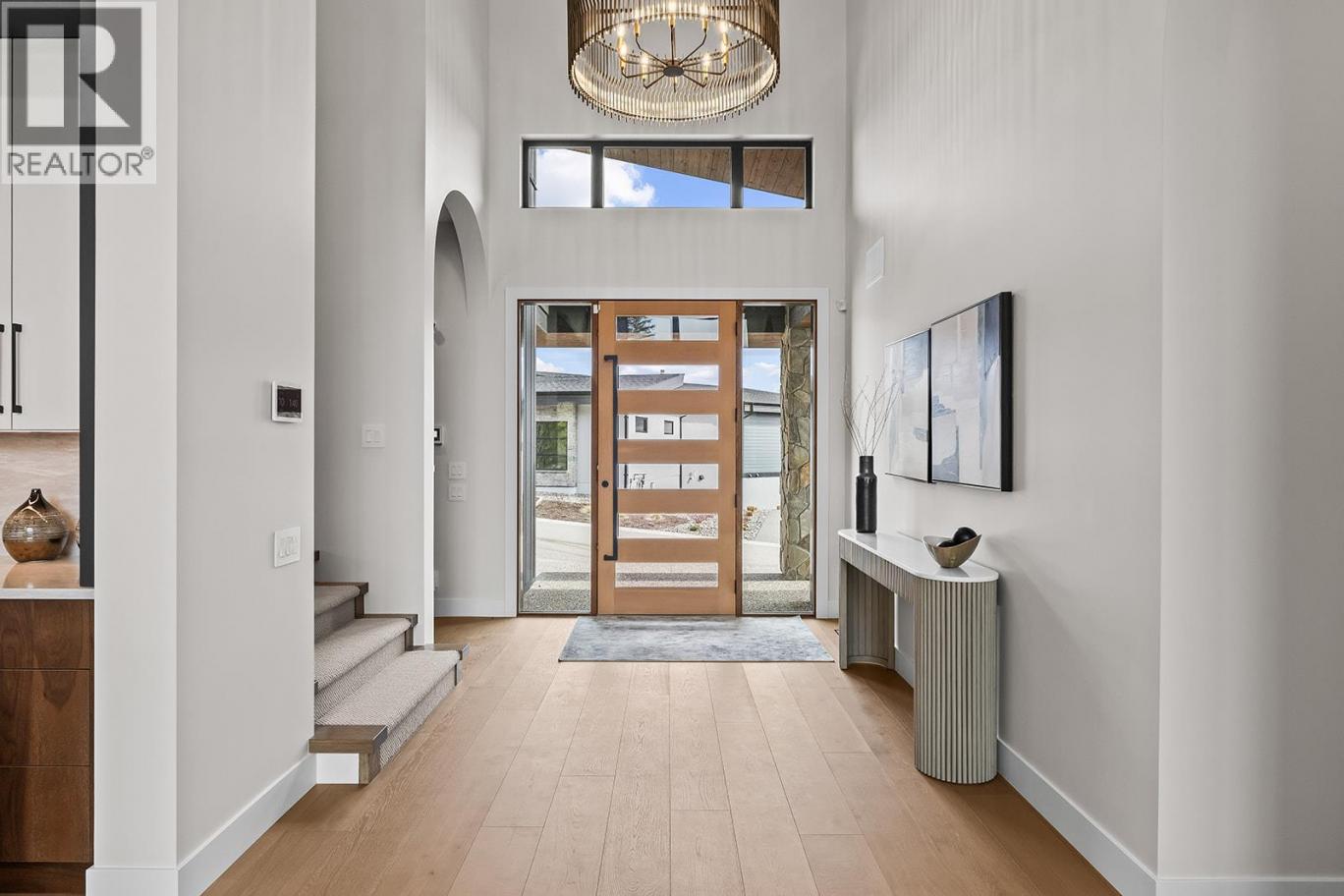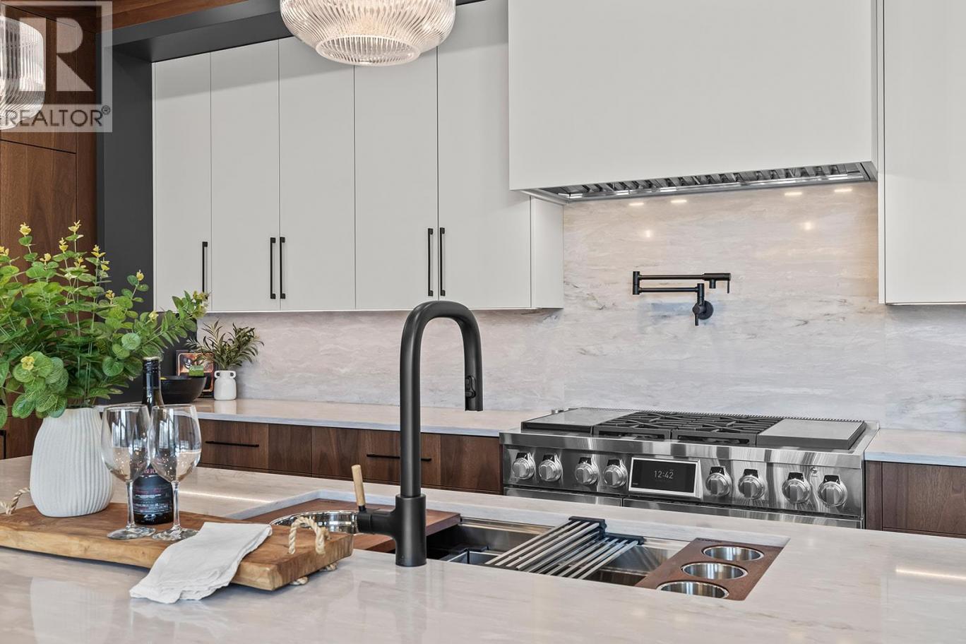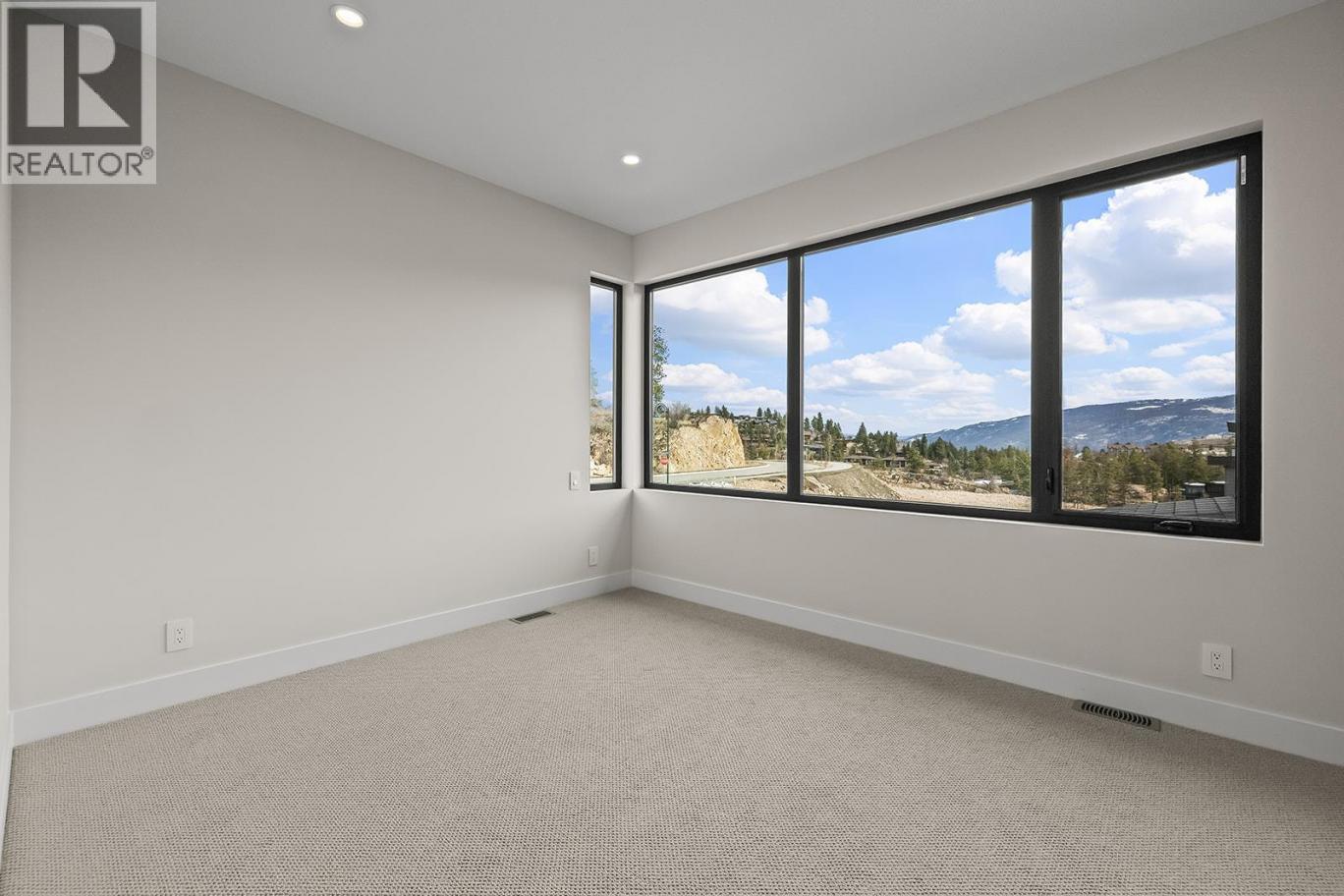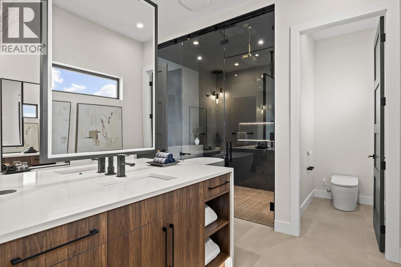 Experience refined Predator Ridge golf resort living in this exceptional Carrington Homes new build, where striking architecture meets seamless indoor outdoor design. Located in one of the Okanagan’s most prestigious Predator Ridge golf communities, this luxury residence offers breathtaking surroundings and thoughtfully crafted living spaces. The impressive exterior showcases multiple rooflines and professional landscaping that beautifully reflects the natural beauty of the Okanagan Valley. Inside, vaulted ceilings and expansive windows fill the home with natural light, creating a warm yet sophisticated atmosphere ideal for both everyday living and entertaining. At the heart of the home is a spectacular chef’s kitchen designed for culinary enthusiasts. An impressive 11 foot island with a 45"" workstation sink anchors the space, complemented by quartz surfaces, premium cabinetry, and a statement 48"" professional range featuring gas, induction, and sous-vide cooking capabilities. Concealed appliances and a hidden walk in pantry maintain a sleek, modern aesthetic while maximizing functionality. Entertaining flows effortlessly from the elegant wet bar to the outdoor living area through dramatic accordion glass doors. The covered patio, pool, and outdoor shower create a private retreat perfect for enjoying warm Okanagan evenings and embracing the coveted Predator Ridge lifestyle. The serene primary suite offers a true spa experience with a luxurious ensuite featuring a stunning wet room and vanity island. Upstairs, a spacious bonus room opens to a large covered deck, alongside two bedrooms, a versatile flex room, and convenient upper laundry. Completing this remarkable luxury Predator Ridge Property is an oversized 2 garage plus a dedicated golf cart bay, perfect for effortless access to world-class golf, trails, and resort amenities (id:6769)