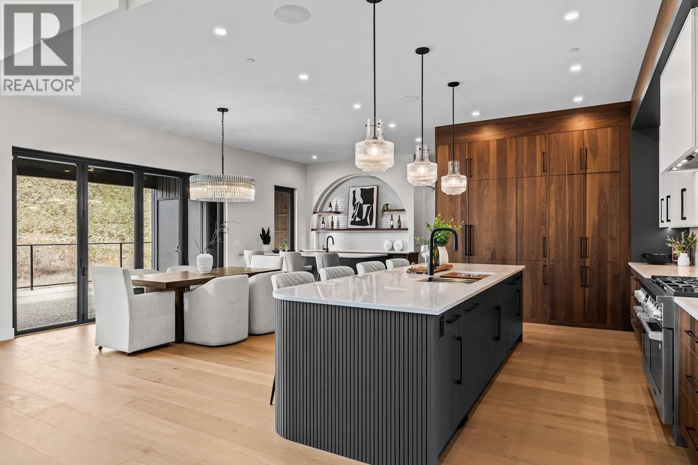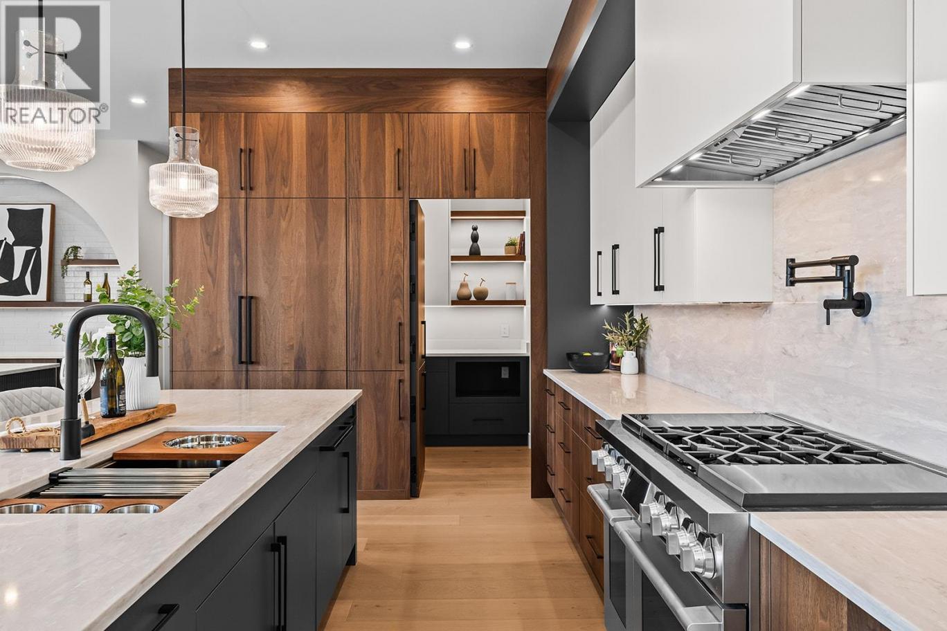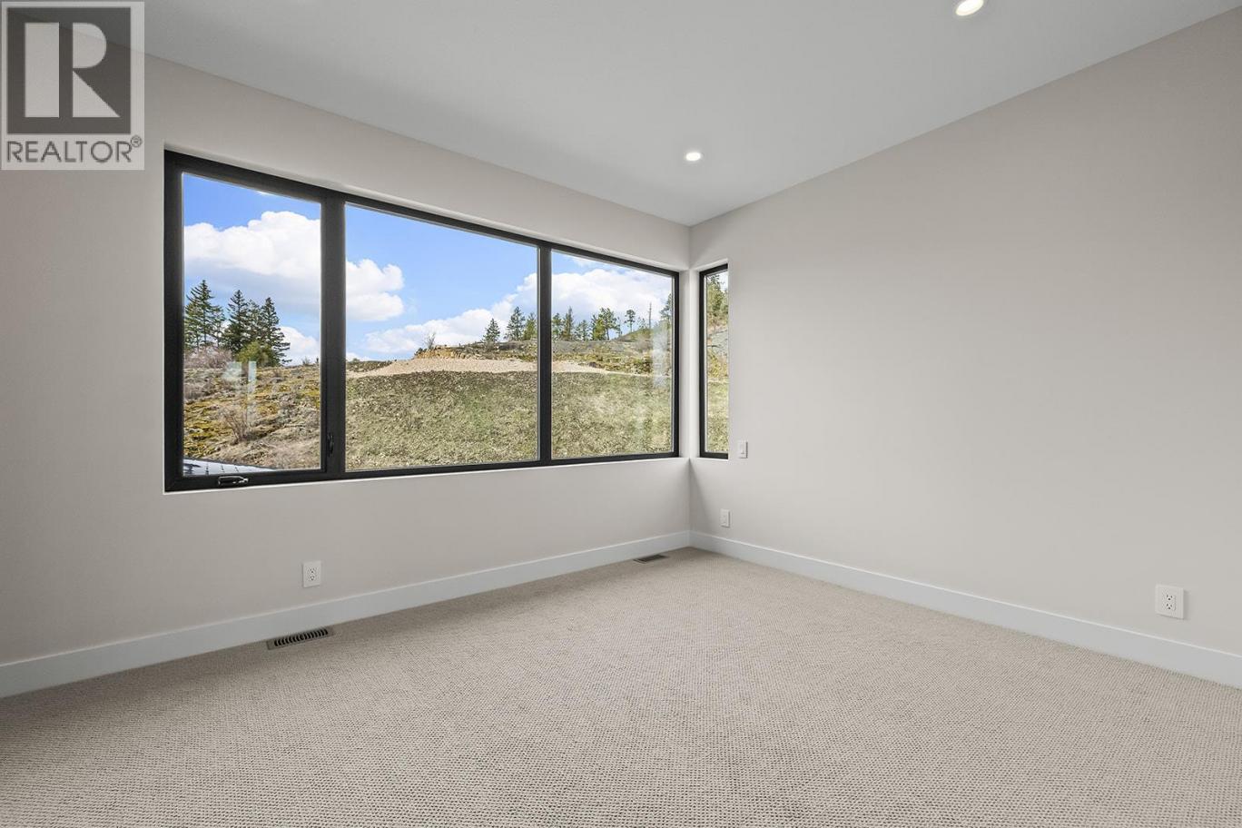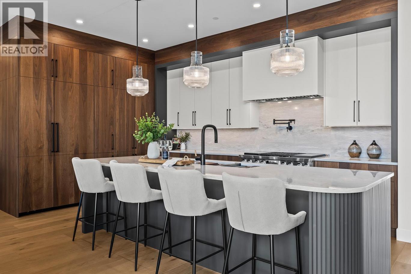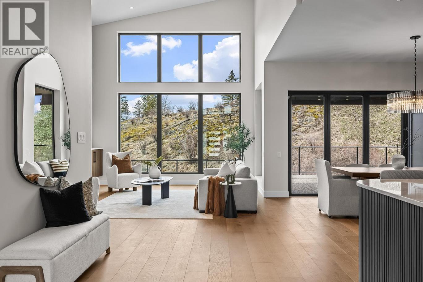 Experience refined Predator Ridge golf resort living in this exceptional Carrington Homes new build, where striking architecture meets seamless indoor outdoor design. Located in one of the Okanagan’s most prestigious Predator Ridge golf communities, this luxury residence offers breathtaking surroundings and thoughtfully crafted living spaces. The impressive exterior showcases multiple rooflines and professional landscaping that beautifully reflects the natural beauty of the Okanagan Valley. Inside, vaulted ceilings and expansive windows fill the home with natural light, creating a warm yet sophisticated atmosphere ideal for both everyday living and entertaining. At the heart of the home is a spectacular chef’s kitchen designed for culinary enthusiasts. An impressive 11 foot island with a 45"" workstation sink anchors the space, complemented by quartz surfaces, premium cabinetry, and a statement 48"" professional range featuring gas, induction, and sous-vide cooking capabilities. Concealed appliances and a hidden walk in pantry maintain a sleek, modern aesthetic while maximizing functionality. Entertaining flows effortlessly from the elegant wet bar to the outdoor living area through dramatic accordion glass doors. The covered patio, pool, and outdoor shower create a private retreat perfect for enjoying warm Okanagan evenings and embracing the coveted Predator Ridge lifestyle. The serene primary suite offers a true spa experience with a luxurious ensuite featuring a stunning wet room and vanity island. Upstairs, a spacious bonus room opens to a large covered deck, alongside two bedrooms, a versatile flex room, and convenient upper laundry. Completing this remarkable luxury Predator Ridge Property is an oversized 2 garage plus a dedicated golf cart bay, perfect for effortless access to world-class golf, trails, and resort amenities (id:6769)