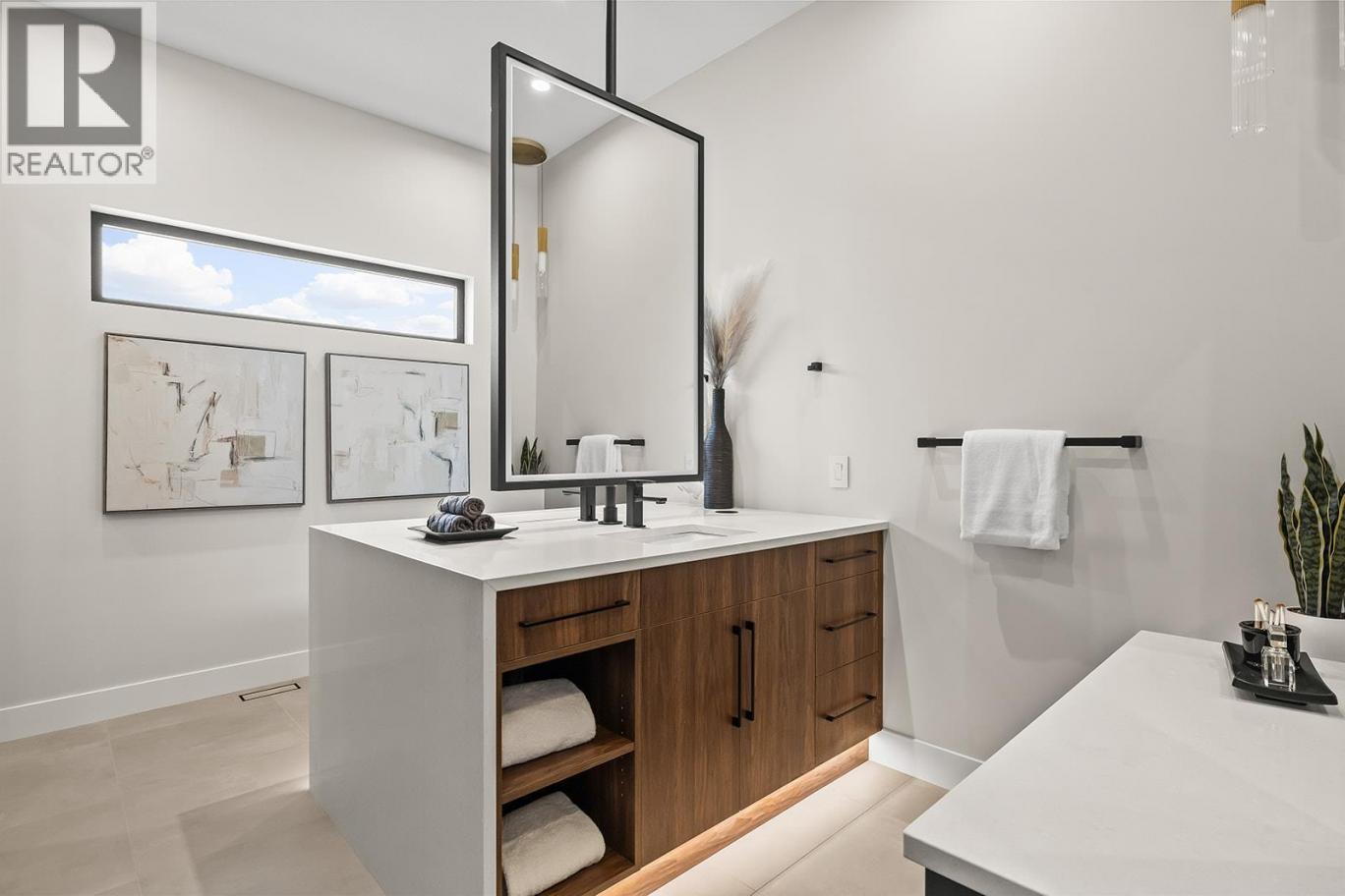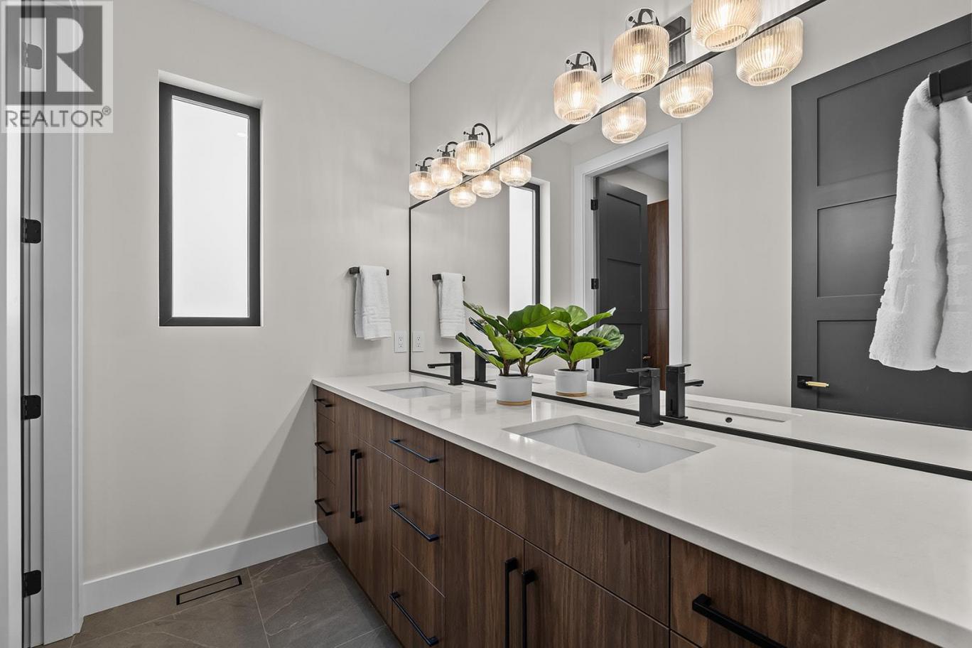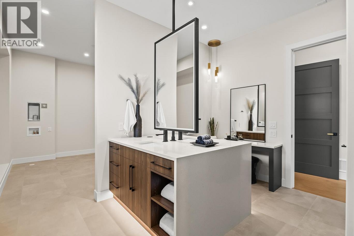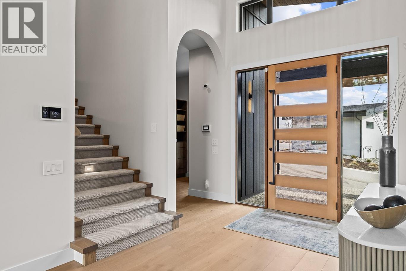 Experience refined Predator Ridge golf resort living in this exceptional Carrington Homes new build, where striking architecture meets seamless indoor outdoor design. Located in one of the Okanagan’s most prestigious Predator Ridge golf communities, this luxury residence offers breathtaking surroundings and thoughtfully crafted living spaces. The impressive exterior showcases multiple rooflines and professional landscaping that beautifully reflects the natural beauty of the Okanagan Valley. Inside, vaulted ceilings and expansive windows fill the home with natural light, creating a warm yet sophisticated atmosphere ideal for both everyday living and entertaining. At the heart of the home is a spectacular chef’s kitchen designed for culinary enthusiasts. An impressive 11 foot island with a 45"" workstation sink anchors the space, complemented by quartz surfaces, premium cabinetry, and a statement 48"" professional range featuring gas, induction, and sous-vide cooking capabilities. Concealed appliances and a hidden walk in pantry maintain a sleek, modern aesthetic while maximizing functionality. Entertaining flows effortlessly from the elegant wet bar to the outdoor living area through dramatic accordion glass doors. The covered patio, pool, and outdoor shower create a private retreat perfect for enjoying warm Okanagan evenings and embracing the coveted Predator Ridge lifestyle. The serene primary suite offers a true spa experience with a luxurious ensuite featuring a stunning wet room and vanity island. Upstairs, a spacious bonus room opens to a large covered deck, alongside two bedrooms, a versatile flex room, and convenient upper laundry. Completing this remarkable luxury Predator Ridge Property is an oversized 2 garage plus a dedicated golf cart bay, perfect for effortless access to world-class golf, trails, and resort amenities (id:6769)