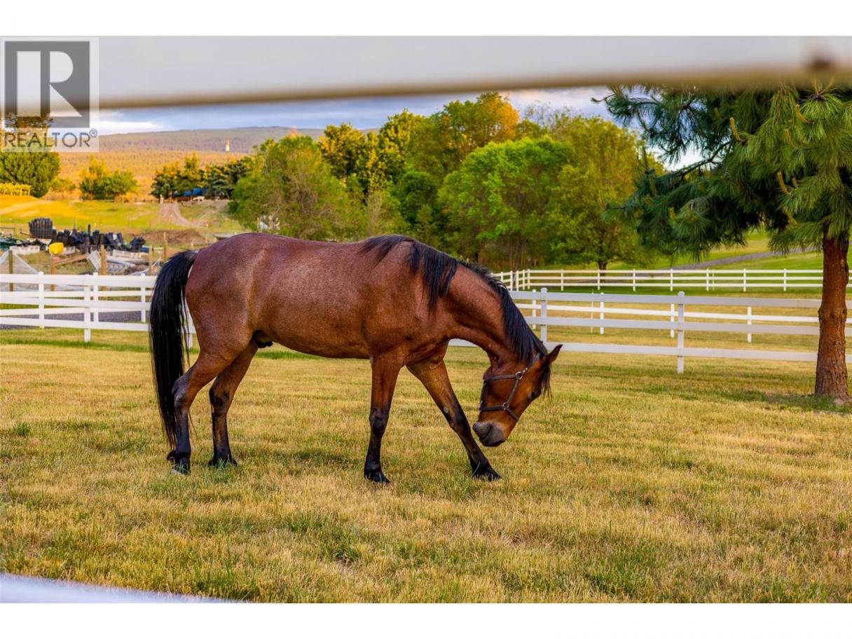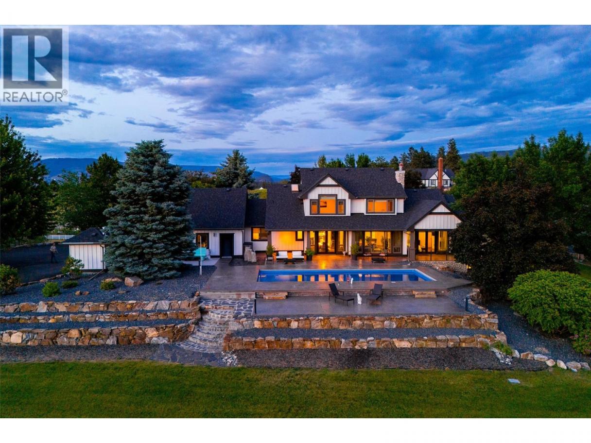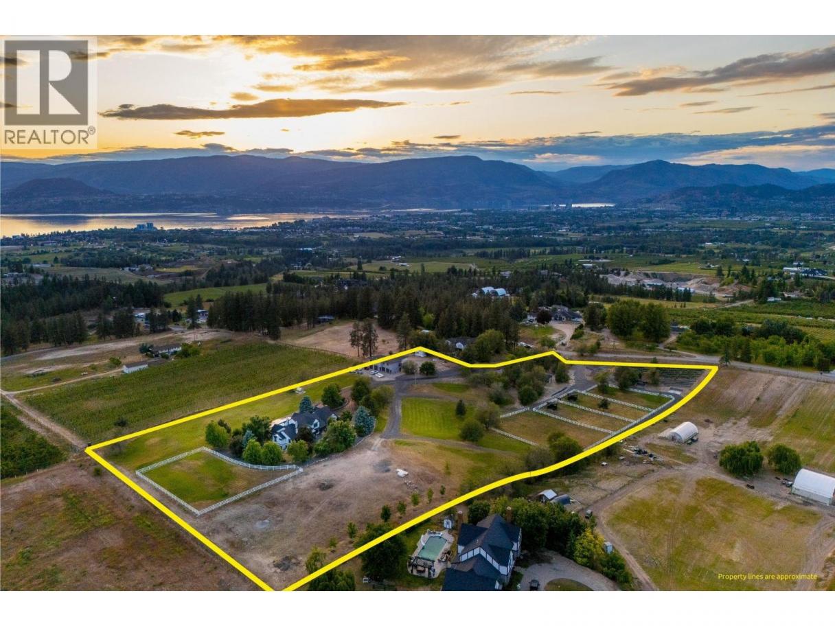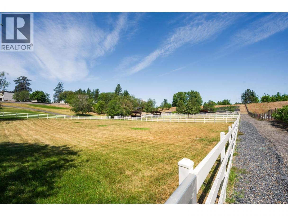 Luxury defined by land, lifestyle & freedom — 9.56 acres in South East Kelowna! A property built for living fully immersed in nature where you can grow your own food, harvest lavender, grapes & honey! A place where family gathers, horses roam & evenings end poolside as the sun sets, all from your private 5,400+ sqft estate overlooking orchards, farmland & the valley below. Extensively updated, the home offers the perfect family floor plan with 4 bedrooms, 5 bathrooms, a home office & full basement spread across 3 levels. Entertain from the kitchen with high-end SS appliances, enjoy tons of natural light & retreat to the main-floor primary bedroom with direct access to the backyard oasis. The outdoor living space features a saltwater pool, water fountains, putting green, stamped concrete patio, built-in speakers & stunning west-facing views. In addition to the triple garage, the property includes a detached 4-car shop with oversized doors attached to a spacious drive-thru barn with horse bays, wash station & radiant in-floor heating throughout. Enjoy a greenhouse, shelter for hay storage, 5 horse paddocks, premium fencing, honey apiary, lavender rows, extensive landscaping, security gate, domestic & irrigation water + endless potential for your agricultural or equestrian vision! A private sanctuary offering privacy & the lifestyle to build your legacy! (id:6769)