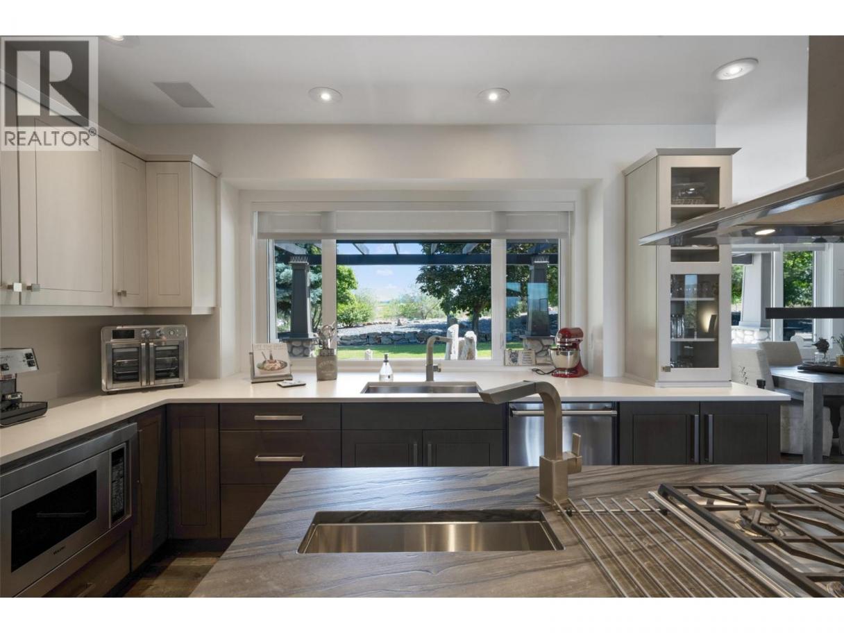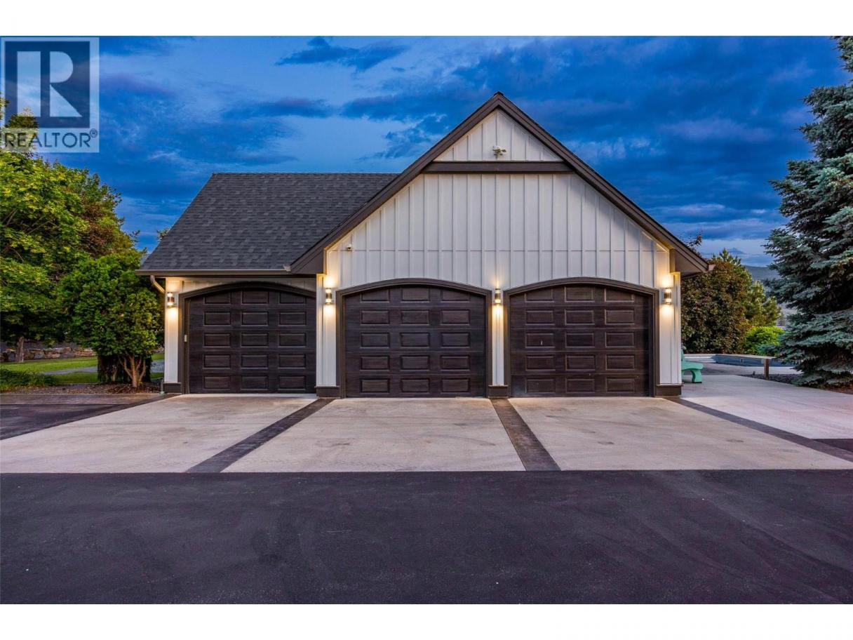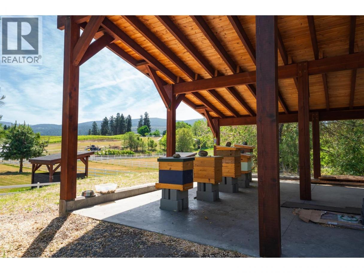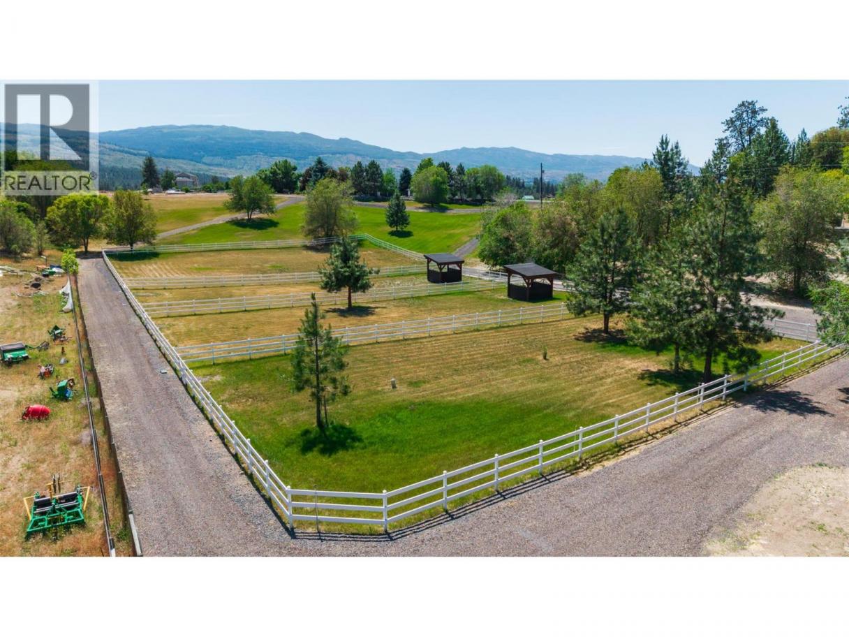 Luxury defined by land, lifestyle & freedom — 9.56 acres in South East Kelowna! A property built for living fully immersed in nature where you can grow your own food, harvest lavender, grapes & honey! A place where family gathers, horses roam & evenings end poolside as the sun sets, all from your private 5,400+ sqft estate overlooking orchards, farmland & the valley below. Extensively updated, the home offers the perfect family floor plan with 4 bedrooms, 5 bathrooms, a home office & full basement spread across 3 levels. Entertain from the kitchen with high-end SS appliances, enjoy tons of natural light & retreat to the main-floor primary bedroom with direct access to the backyard oasis. The outdoor living space features a saltwater pool, water fountains, putting green, stamped concrete patio, built-in speakers & stunning west-facing views. In addition to the triple garage, the property includes a detached 4-car shop with oversized doors attached to a spacious drive-thru barn with horse bays, wash station & radiant in-floor heating throughout. Enjoy a greenhouse, shelter for hay storage, 5 horse paddocks, premium fencing, honey apiary, lavender rows, extensive landscaping, security gate, domestic & irrigation water + endless potential for your agricultural or equestrian vision! A private sanctuary offering privacy & the lifestyle to build your legacy! (id:6769)