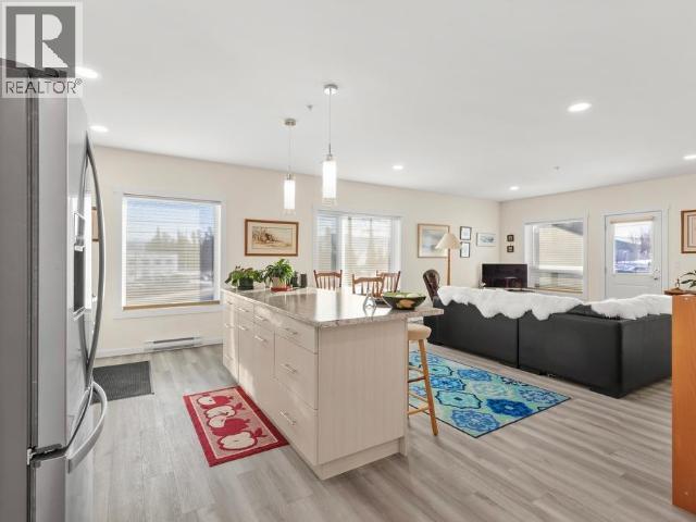 Bright, immaculate on Southeast corner! This stylish 2-bed, 2-bath corner unit offers 1,186 sq ft of contemporary living with morning sun and mountain views plus a South-facing balcony. The open-concept design features a sleek galley kitchen with soft-tone cabinetry, light countertops, stainless steel appliances, a pantry, and an island with bar seating--great for entertaining! Vinyl plank flooring flows throughout, leading to the primary suite with a walk-in closet and 3-piece ensuite with spacious w/i shower. A well-sized second bedroom, full secondary bathroom, laundry closet, and generous entry with a large, functional closet complete the space. Includes one powered parking spot and an exclusive-use storage locker. Prime Takhini location with easy access to transit, trails, the Canada Games Centre, and downtown amenities. With condo fees of $463/month covering essential services, this energy-efficient condo offers a balanced blend of style, comfort, and convenience! (id:6769)