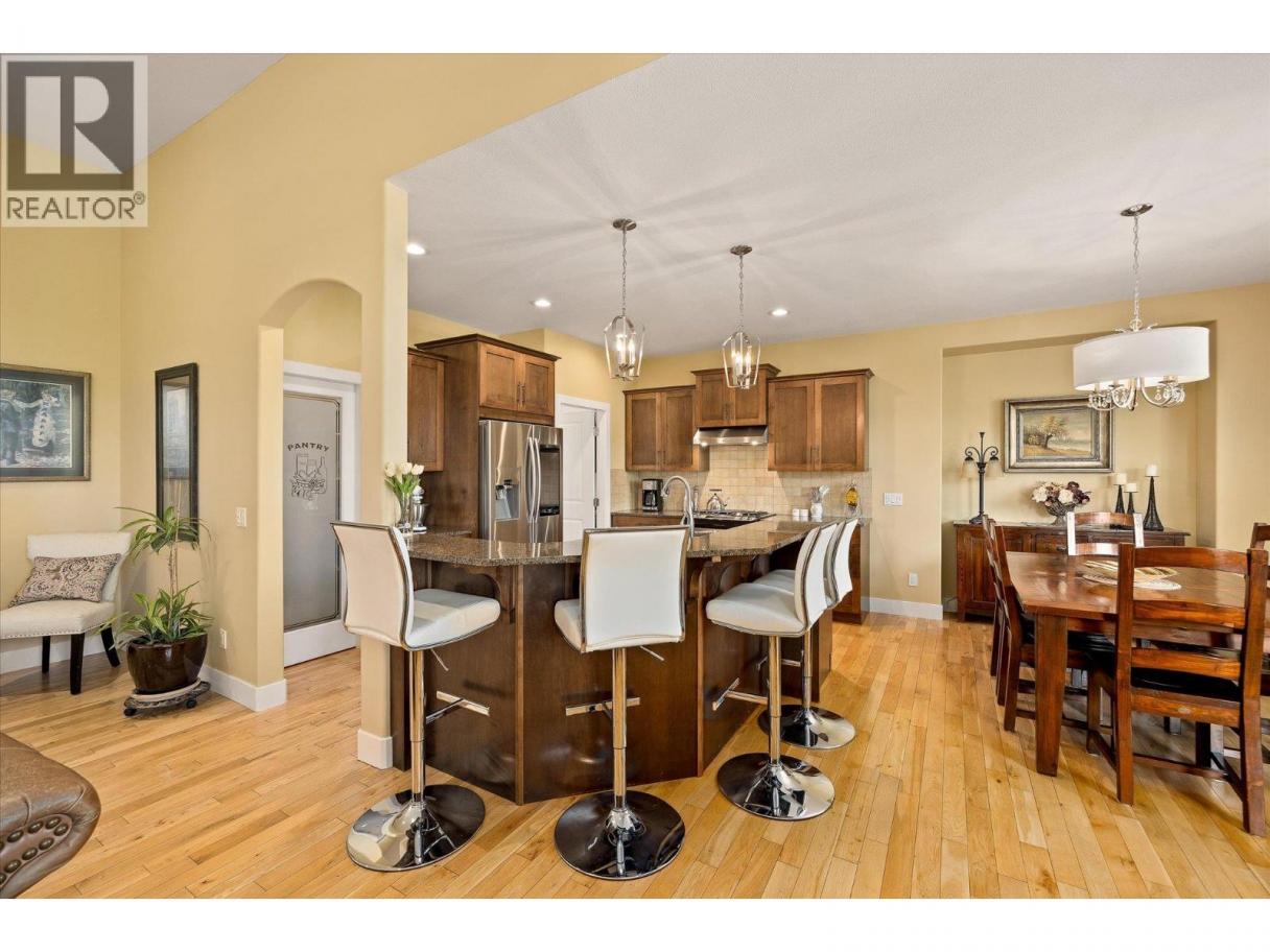 Tucked into the coveted Lakes community, this home earns its reputation in everything that genuinely makes daily life better. Four bedrooms, two up and two down. An open-concept main floor that breathes. A layout thoughtful enough to grow with you, whether that means space for family, a spot for guests, or the flexibility to add a suite. The primary bedroom is on the main floor with a full 5-piece ensuite and a walk-in closet that finally gives you room to get organized and stay that way. The kitchen was designed for real life: richly toned cabinetry, granite countertops, a bar-height island perfect for morning coffee or evening conversation, a large walk-in pantry, and stainless steel appliances all updated within the last 5–7 years. Main-floor laundry with a quality LG set means no stairs when your arms are full. Downstairs, a cozy family room and bonus room give everyone room to spread out. For folks serious about storage, the 248 sq. ft. storage and mechanical room is a standout feature. Whether it's gear, seasonal items, or a workshop setup, there is room for it all! Outside, a large upper deck and lower patio invite you to slow down and settle into the Okanagan pace of life. The landscaping is already done (lawns, gardens, irrigation)! The gas BBQ hookup is ready for the season ahead. A double garage, gas fireplace, central vac, and security system round out a home that's been cared for and kept ready for move-in! Come and see it, some homes just make sense! (id:6769)