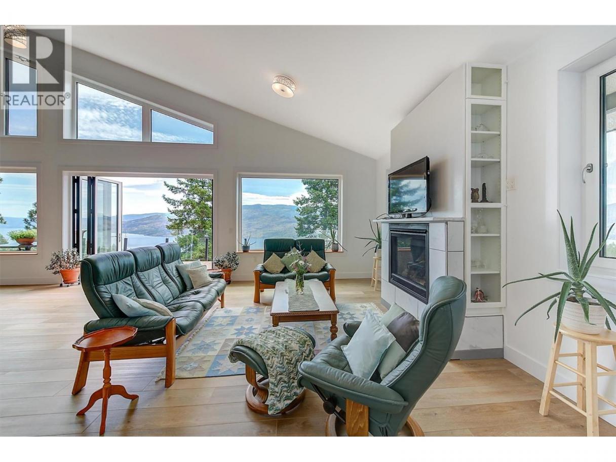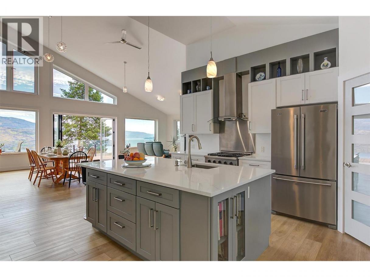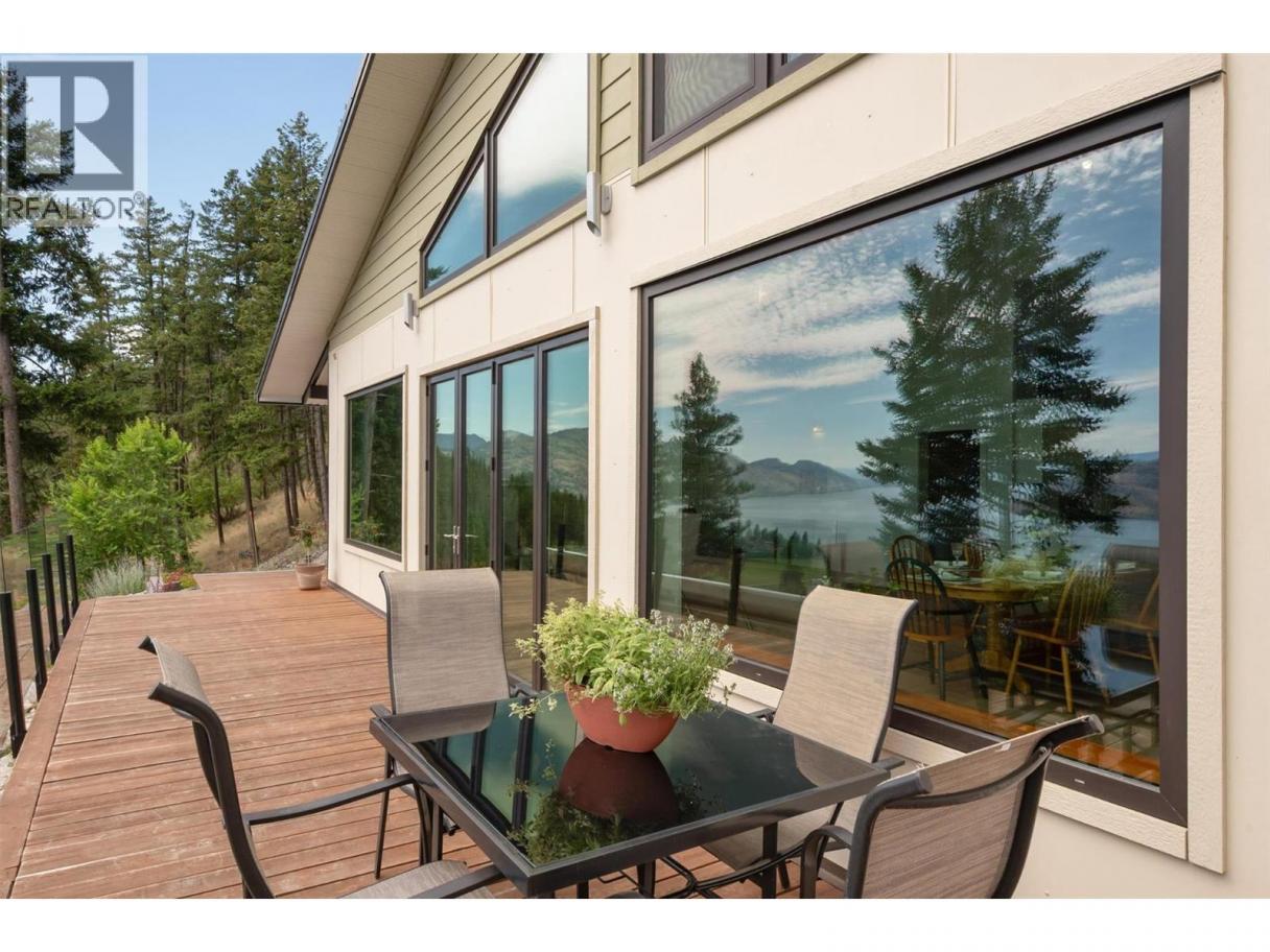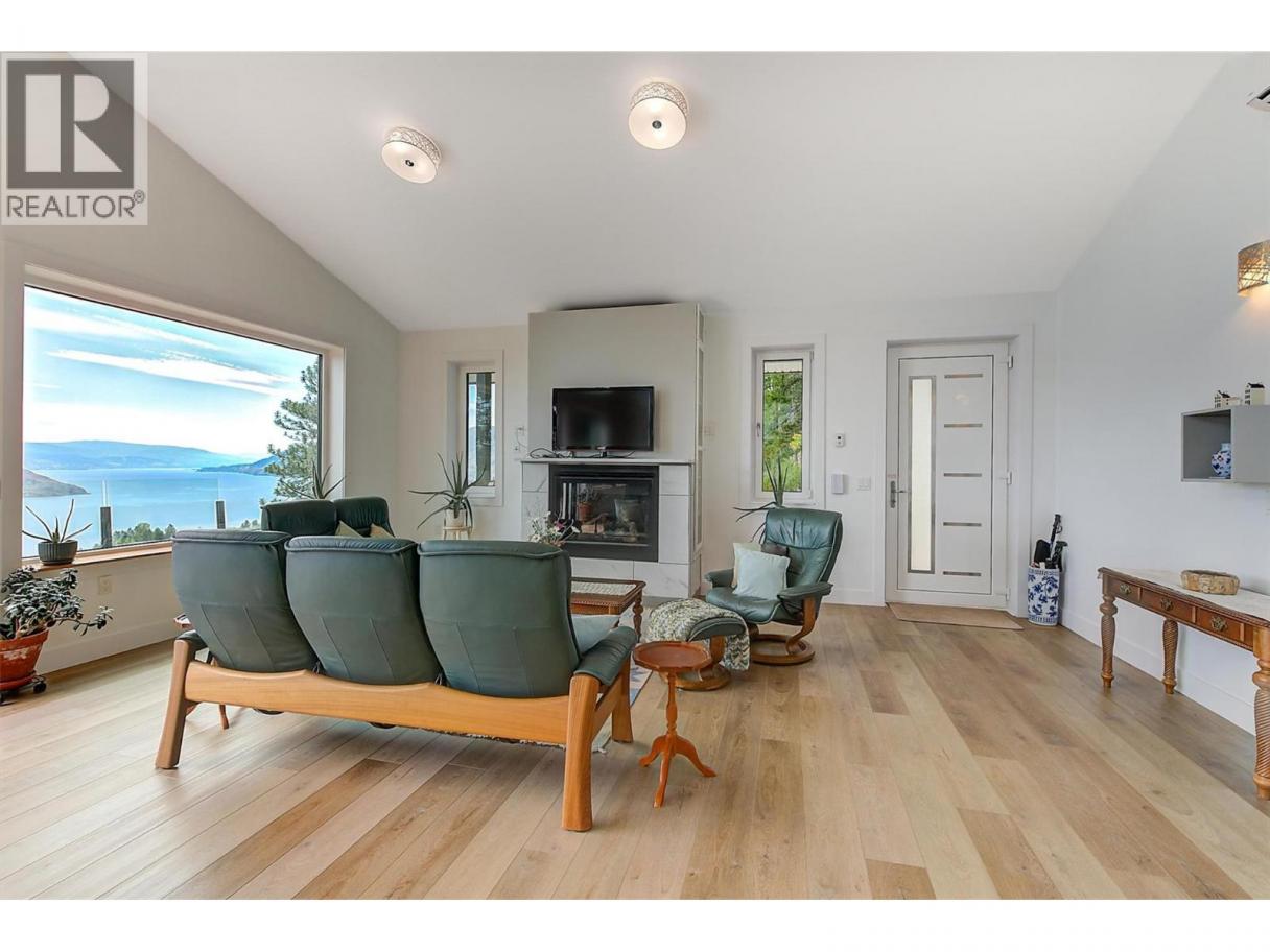 This stunning 2019 owner-built home offers thoughtful design and breathtaking panoramic views of Okanagan Lake and the surrounding mountains. Perched on the hillside, the home captures the scenery from both the spacious front deck and the bright interior living spaces. The open-concept main living area features soaring vaulted ceilings, a generous living room, and seamless flow into the dining area and beautifully designed chef’s kitchen complete with stainless steel appliances, quartz countertops, and a large island—perfect for entertaining or everyday living. The home offers three spacious bedrooms, each with walk-in closets and private access to modern bathrooms, providing comfort and privacy for family or guests. Step outside to a peaceful garden patio surrounded by nature, or explore the nearby trail system for the ultimate quiet and private Okanagan lifestyle. Adding exceptional versatility, the property includes a separate one-bedroom legal suite with its own entrance, ideal for extended family, guests, or generating rental income. Built to exceed building code standards, this high-performance home is engineered to be fire-smart, wind-resistant, and earthquake-resistant, offering long-term durability and peace of mind. Year-round comfort is ensured with a super high-efficiency design, radiant in-floor heating, and ductless split air conditioning. Sustainability and energy efficiency are enhanced by a 10-kilowatt solar panel system, natural gas generator, and battery backup system, helping reduce utility costs while providing added security. Completing the home is an attached double garage with a Level 2 EV charger for modern convenience. Beautifully maintained and move-in ready, this Peachland property perfectly blends luxury, efficiency, and the relaxed Okanagan lifestyle. (id:6769)