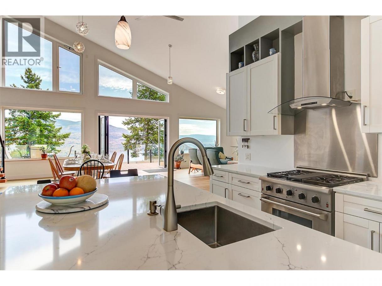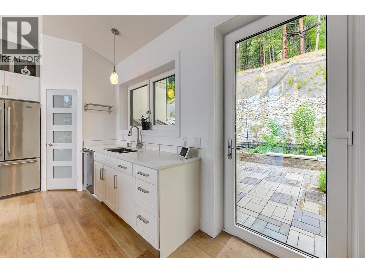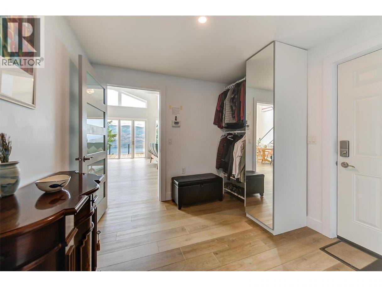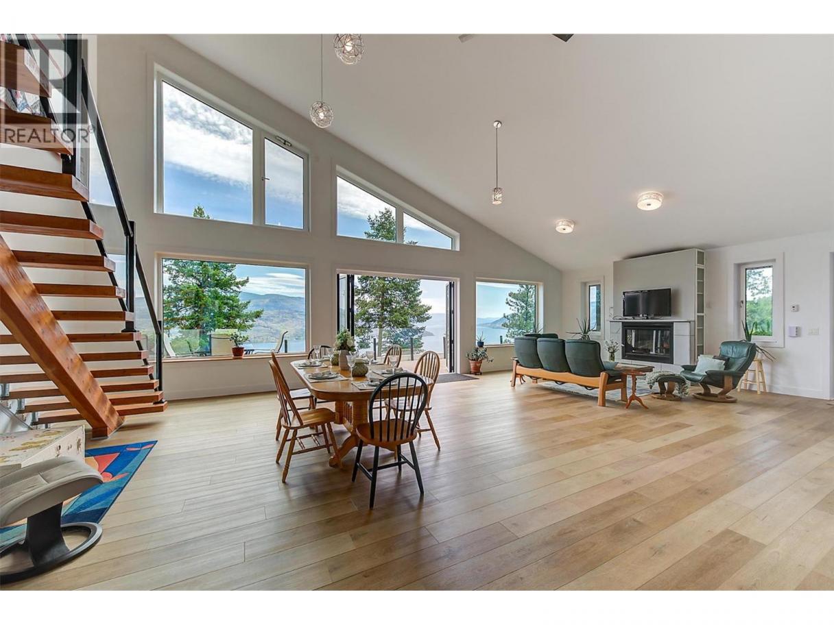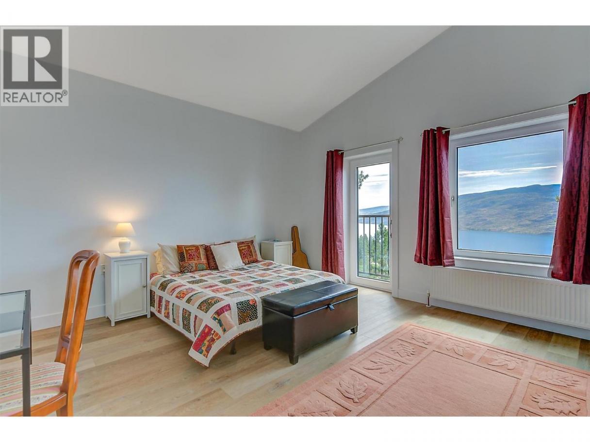 This stunning 2019 owner-built home offers thoughtful design and breathtaking panoramic views of Okanagan Lake and the surrounding mountains. Perched on the hillside, the home captures the scenery from both the spacious front deck and the bright interior living spaces. The open-concept main living area features soaring vaulted ceilings, a generous living room, and seamless flow into the dining area and beautifully designed chef’s kitchen complete with stainless steel appliances, quartz countertops, and a large island—perfect for entertaining or everyday living. The home offers three spacious bedrooms, each with walk-in closets and private access to modern bathrooms, providing comfort and privacy for family or guests. Step outside to a peaceful garden patio surrounded by nature, or explore the nearby trail system for the ultimate quiet and private Okanagan lifestyle. Adding exceptional versatility, the property includes a separate one-bedroom legal suite with its own entrance, ideal for extended family, guests, or generating rental income. Built to exceed building code standards, this high-performance home is engineered to be fire-smart, wind-resistant, and earthquake-resistant, offering long-term durability and peace of mind. Year-round comfort is ensured with a super high-efficiency design, radiant in-floor heating, and ductless split air conditioning. Sustainability and energy efficiency are enhanced by a 10-kilowatt solar panel system, natural gas generator, and battery backup system, helping reduce utility costs while providing added security. Completing the home is an attached double garage with a Level 2 EV charger for modern convenience. Beautifully maintained and move-in ready, this Peachland property perfectly blends luxury, efficiency, and the relaxed Okanagan lifestyle. (id:6769)
