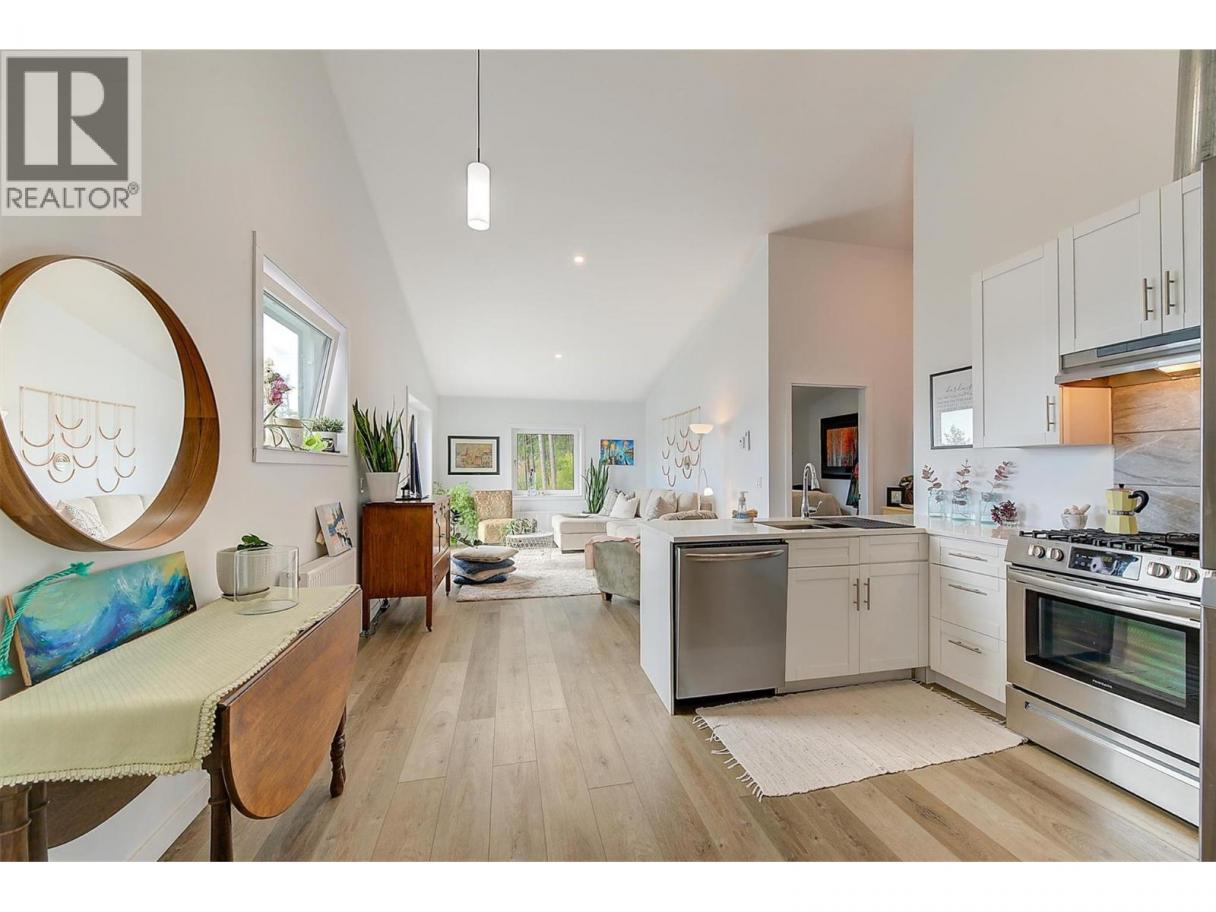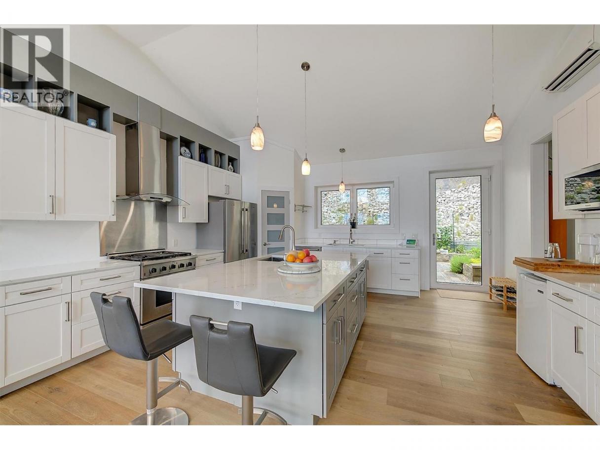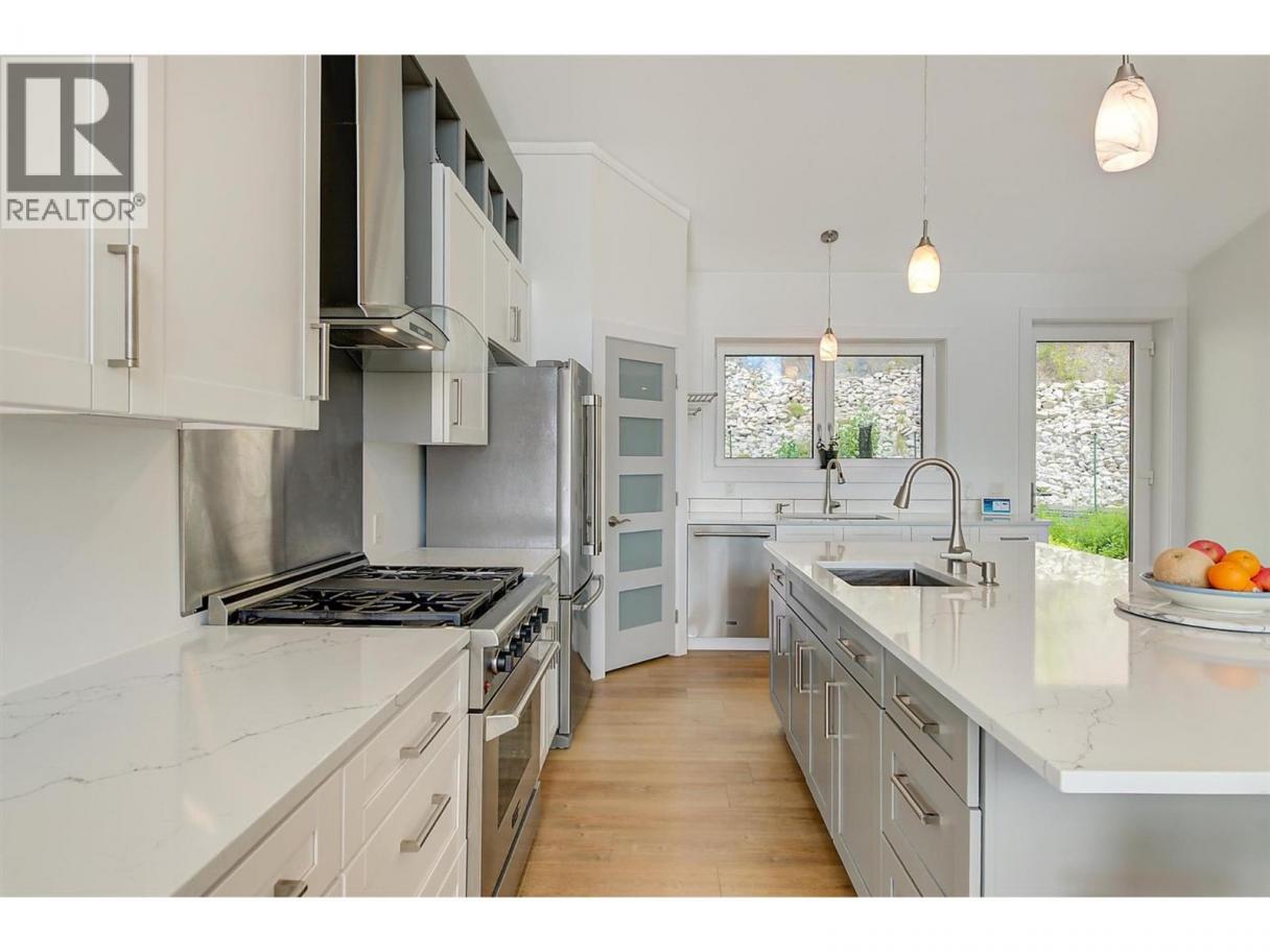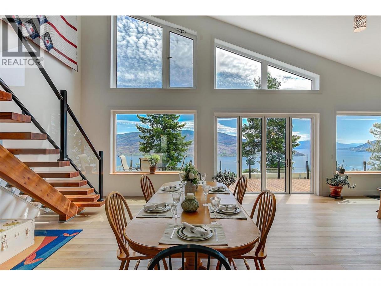 This stunning 2019 owner-built home offers thoughtful design and breathtaking panoramic views of Okanagan Lake and the surrounding mountains. Perched on the hillside, the home captures the scenery from both the spacious front deck and the bright interior living spaces. The open-concept main living area features soaring vaulted ceilings, a generous living room, and seamless flow into the dining area and beautifully designed chef’s kitchen complete with stainless steel appliances, quartz countertops, and a large island—perfect for entertaining or everyday living. The home offers three spacious bedrooms, each with walk-in closets and private access to modern bathrooms, providing comfort and privacy for family or guests. Step outside to a peaceful garden patio surrounded by nature, or explore the nearby trail system for the ultimate quiet and private Okanagan lifestyle. Adding exceptional versatility, the property includes a separate one-bedroom legal suite with its own entrance, ideal for extended family, guests, or generating rental income. Built to exceed building code standards, this high-performance home is engineered to be fire-smart, wind-resistant, and earthquake-resistant, offering long-term durability and peace of mind. Year-round comfort is ensured with a super high-efficiency design, radiant in-floor heating, and ductless split air conditioning. Sustainability and energy efficiency are enhanced by a 10-kilowatt solar panel system, natural gas generator, and battery backup system, helping reduce utility costs while providing added security. Completing the home is an attached double garage with a Level 2 EV charger for modern convenience. Beautifully maintained and move-in ready, this Peachland property perfectly blends luxury, efficiency, and the relaxed Okanagan lifestyle. (id:6769)