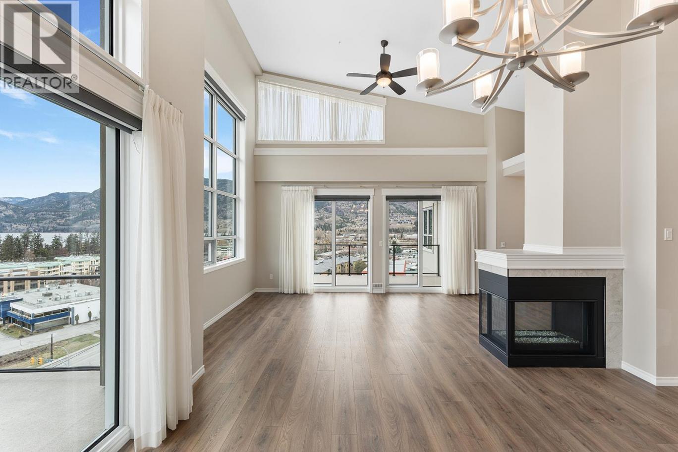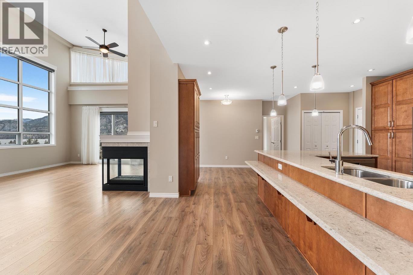 Welcome to Skaha Lake Towers Penthouse! One of Penticton's finest condominium complexes. This south-facing, 1,713 sq ft luxury top-floor residence offers unobstructed lake views and features vaulted ceilings and upgrades throughout the 2-bedrooms & den. Each room opens onto one of four private decks. The massive kitchen has solid wood cabinetry, stainless steel appliances, a large wrap-around peninsula, with an outdoor NG BBQ hookup. The large living/dining room with high ceilings and expansive windows, is perfectly positioned to capture the breathtaking views. The well-appointed master bedroom has a walk-in closet and an ensuite bathroom complete with his-and-hers sinks and a jetted tub. There is a large guest bedroom and the den is perfect for a home office or a crafting room. Condo life offers conveniences such as large same-floor storage, two sets of elevators, secure, semi-private heated parking, bike room, and multi-use rooms for private events, games and recreation. Skaha Lake beach, parks, pathways and shopping are just a stroll away. Rentals are permitted with some restrictions. 2 dogs or cats are allowed. Contact us now to seize the opportunity to make this marvellous Penthouse yours! (id:6769)