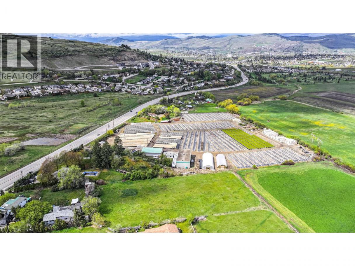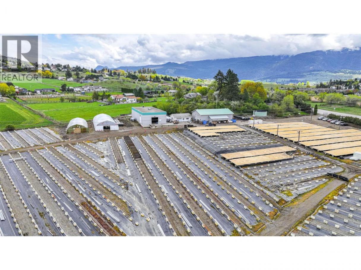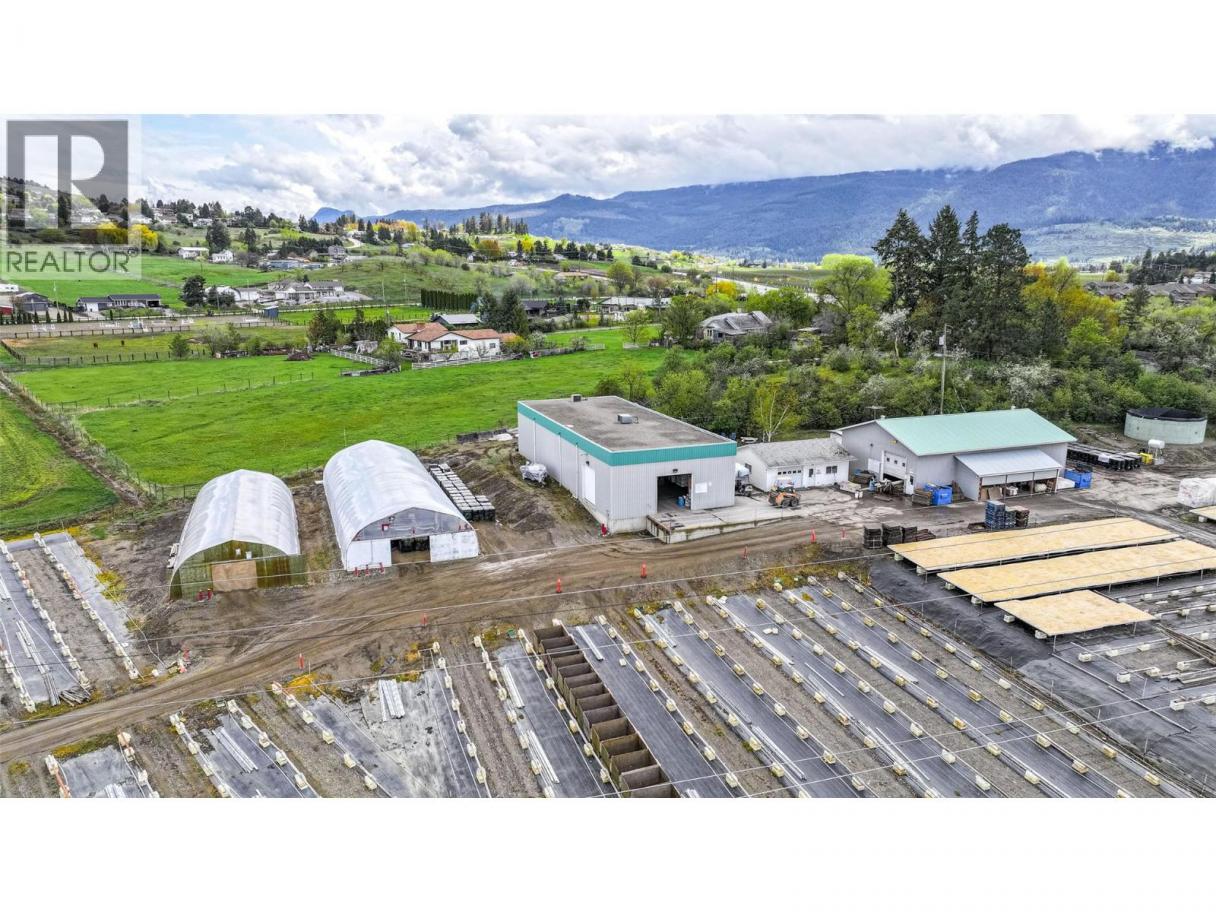 Amazing potential for income production and growth! Perfect for a fruit producer that needs a cold storage facility and a great high exposure easily accessible highway 6 location. This farm is located on 8.24 acres of gently sloped, to flat, ALR land just past Hillview Golf course at the eastern boundary of the City of Vernon. The current lease with PRT Nurseries has just expired and the commercial facility will be vacant at the end of March 2026. The residential home is tenant occupied and rents for $2,000 per month. Residential Tenancy Act. The Commercial Buildings for the Nursery Business, include an office, a cold storage facility, and other storage buildings. PRT (Pacific Regeneration Technologies Inc.)a forest seedling nursery, had leased the land and buildings since 2005 and has now terminated their lease. This is the perfect opportunity for another entrepreneurial agricultural business to flourish in this location. The Commercial buildings alone are valued at over 1 million dollars. 40x100, 40x64, 24x32 commercial buildings, a nicely maintained 1960's rancher home home with basement, detached garage, and swimming pool on 8.24 acres of fertile Coldstream Valley bottom farmland. Don't miss out on this great opportunity - This property also has farm status ( hence low BC Assessment & taxes) agricultural farm water allocation, and a south west facing aspect, making it perfect for very fertile growth. (id:6769)