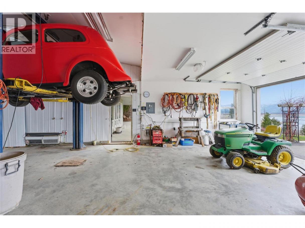 LAKE VIEW! LAKE VIEW! Just over 3.5 Acres In Town | Unobstructed Lake Views | Workshop w/ Hoist | Subdivision Potential A rare opportunity to own private acreage in town with spectacular lake views and endless potential. Welcome to this incredible 3.6-acre property offering breathtaking, unobstructed lake and mountain views right in town. The home features rancher-style main floor living with a daylight walk-out basement, covered deck and basement with suite potential that is perfectly positioned to capture the stunning lake views through large picture windows. A drive-through driveway and double heated garage on the main level make this home both practical and accessible. The property includes a large, paved backyard area along with a detached 2 door heated garage with a workshop attached with the hoist this makes this property ideal for mechanics, hobbyists, or storing recreational equipment. Roof replaced in 2025; radiant heating system and heat pump ( Approx 2 years); hot water tank is approx. 5 years old The partially fenced acreage provides space for a hobby farm, ,or possible subdivision potential for future value. Outdoor enthusiasts will love being near hiking trails and all the outdoor recreation at your fingertips! Located in the highly desirable Appleyard subdivision on a quiet private no-through road. With just a 5-minute drive to Canoe beach, walking distance to schools, and close to amenities and town services. Measurements by IGUIDE are approximate (id:6769)