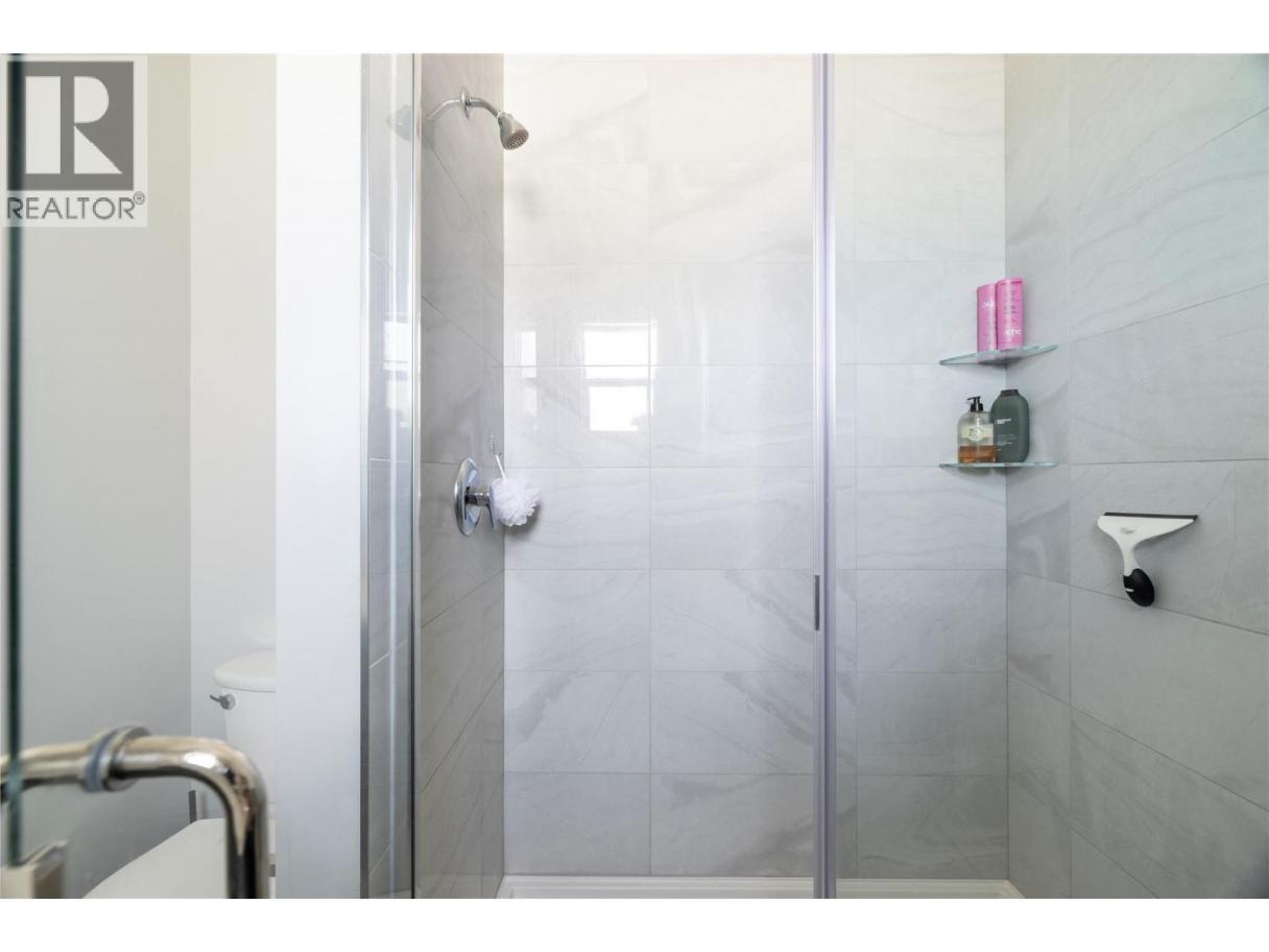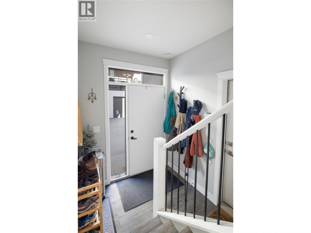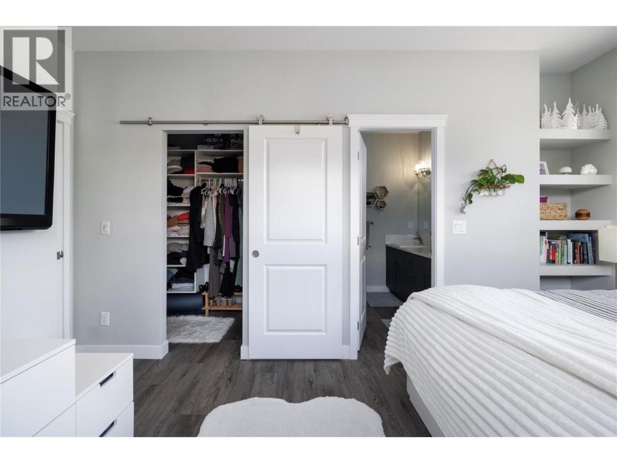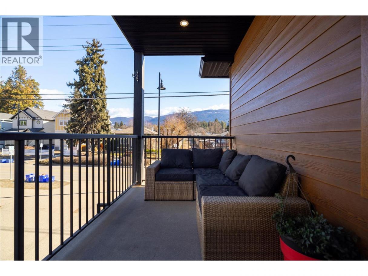 Modern corner unit townhome in the Heart of Harwood - Step into modern living with this beautifully designed three-bedroom townhouse located in the heart of Harwood. Combining contemporary style with in-town convenience, this home offers an excellent opportunity for those seeking low-maintenance, turn-key living, and a short walk to Harwood elementary school. The ground level features the front entry, and a tandem garage with the front portion offering flexibility for a second vehicle, a gym, storage, or hobby space. Upstairs, the main living area is bright and welcoming, filled with natural light and finished with luxury vinyl plank flooring throughout. The modern kitchen showcases sleek quartz countertops, stylish cabinetry, and a breakfast bar, perfect for casual dining or entertaining. The open-concept design flows seamlessly into the living area, with access to a covered balcony—an ideal spot to relax and enjoy the outdoors. The top floor provides privacy with all three bedrooms located on this level. The spacious main bedroom suite features a walk-in closet, and a beautiful ensuite with dual vanities, and a walk-in shower. Two additional bedrooms, a full bathroom, and convenient upper-level laundry complete the layout. A fantastic opportunity to enjoy modern townhouse living in one of Vernon’s most convenient neighbourhoods, close to shopping, schools, parks, and everyday amenities. (id:6769)