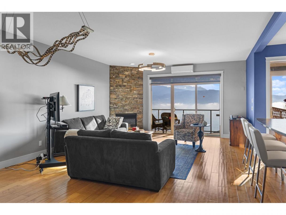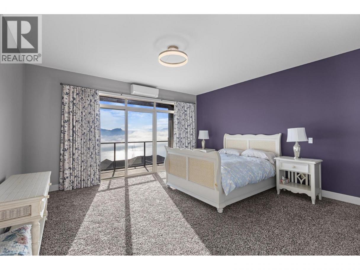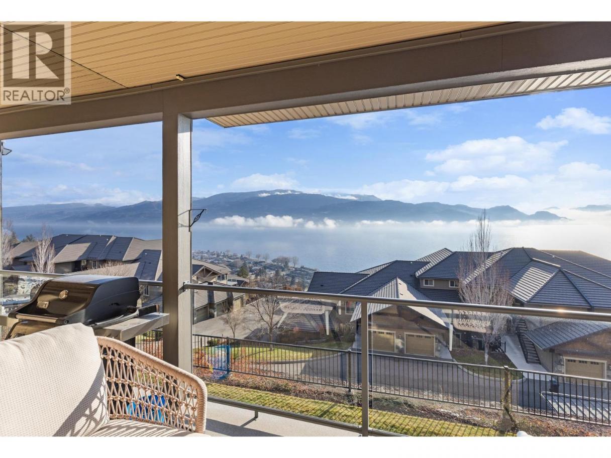 Beautiful 3 bedroom, 2 bathroom ""OWL"" layout in Eagles View development, perched above Peachland town and waterfront with an amazing sweeping lakeview towards Kelowna and south towards Penticton... 1892 sq ft finished, a primary suite on the upper level 672 sq ft with a customized walk-in closet and an ensuite you will not want to leave. The additional two bedrooms are on the main level. Many professional upgrades include LED lighting, wine cooler, massive kitchen island/eating bar with granite counters, high-end appliances, Fujitsu ventless air-conditioning system, gas fireplace with a feature stone facade, gas hook-up for BBQ, gas stove. There is an amenities area with a well equipped gym, media room, kitchen to book for large gatherings. Private single garage with extra paring for a boat or RV. Pets allowed one dog or one in-door cat. (id:6769)