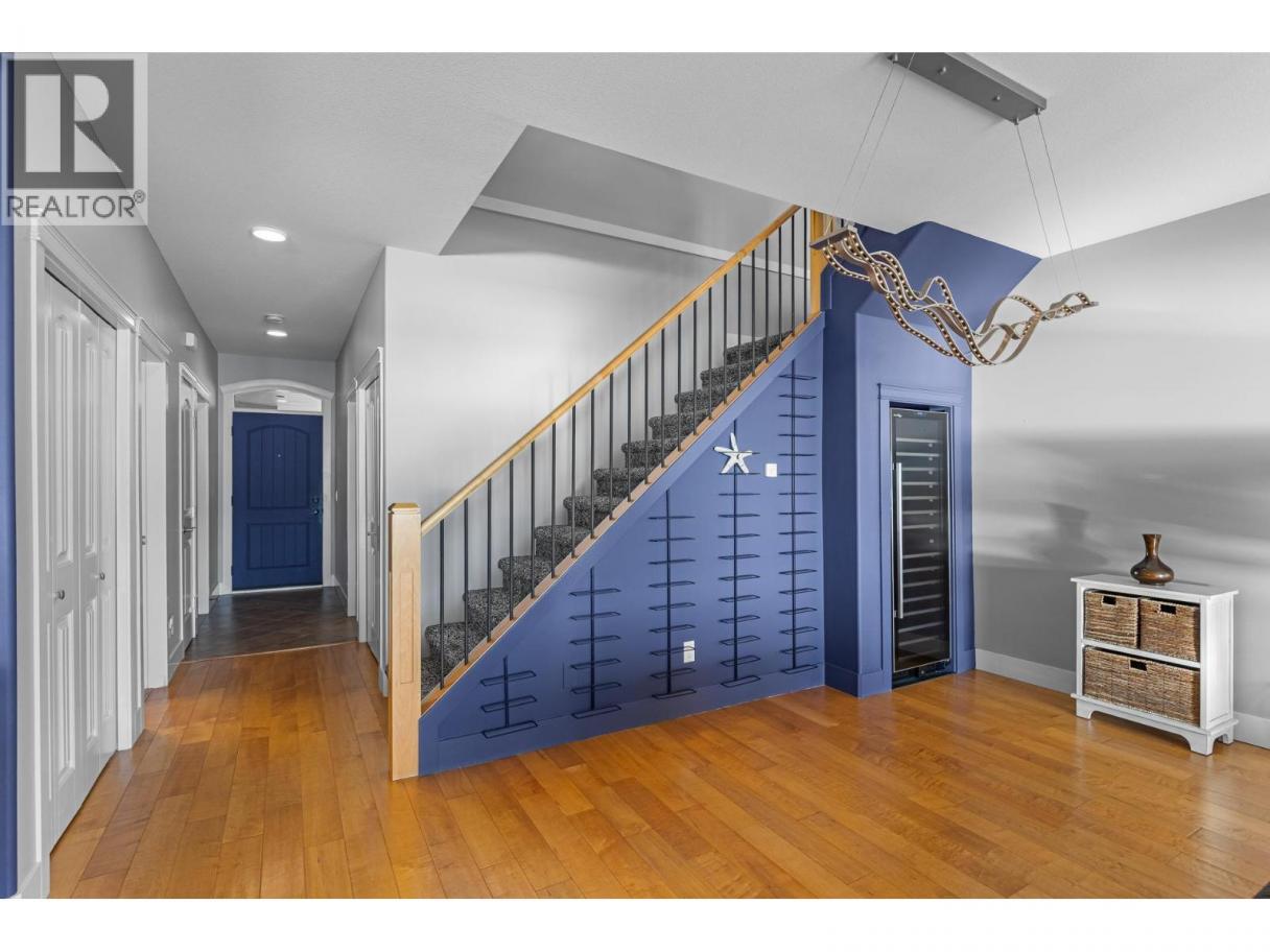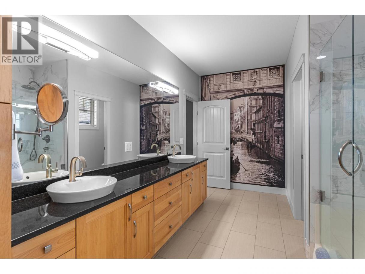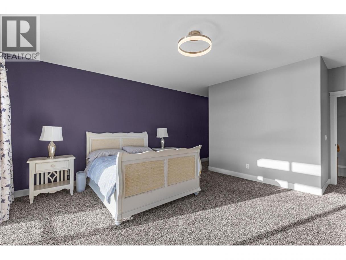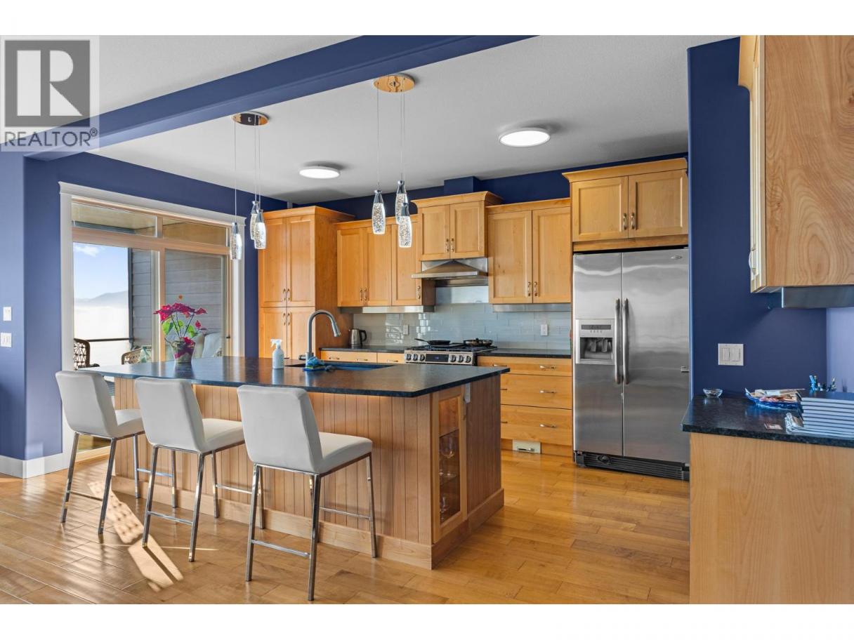 Beautiful 3 bedroom, 2 bathroom ""OWL"" layout in Eagles View development, perched above Peachland town and waterfront with an amazing sweeping lakeview towards Kelowna and south towards Penticton... 1892 sq ft finished, a primary suite on the upper level 672 sq ft with a customized walk-in closet and an ensuite you will not want to leave. The additional two bedrooms are on the main level. Many professional upgrades include LED lighting, wine cooler, massive kitchen island/eating bar with granite counters, high-end appliances, Fujitsu ventless air-conditioning system, gas fireplace with a feature stone facade, gas hook-up for BBQ, gas stove. There is an amenities area with a well equipped gym, media room, kitchen to book for large gatherings. Private single garage with extra paring for a boat or RV. Pets allowed one dog or one in-door cat. (id:6769)
