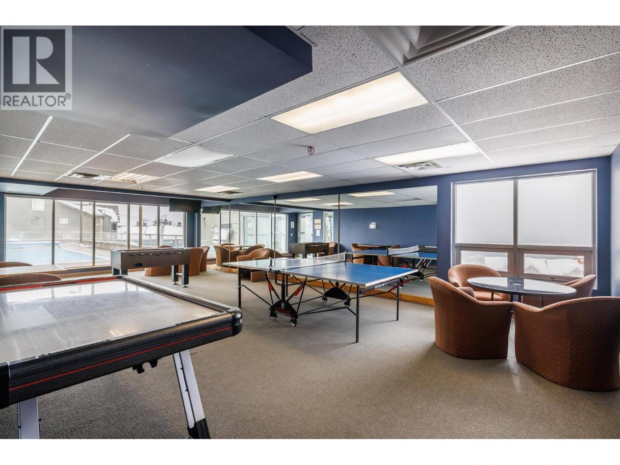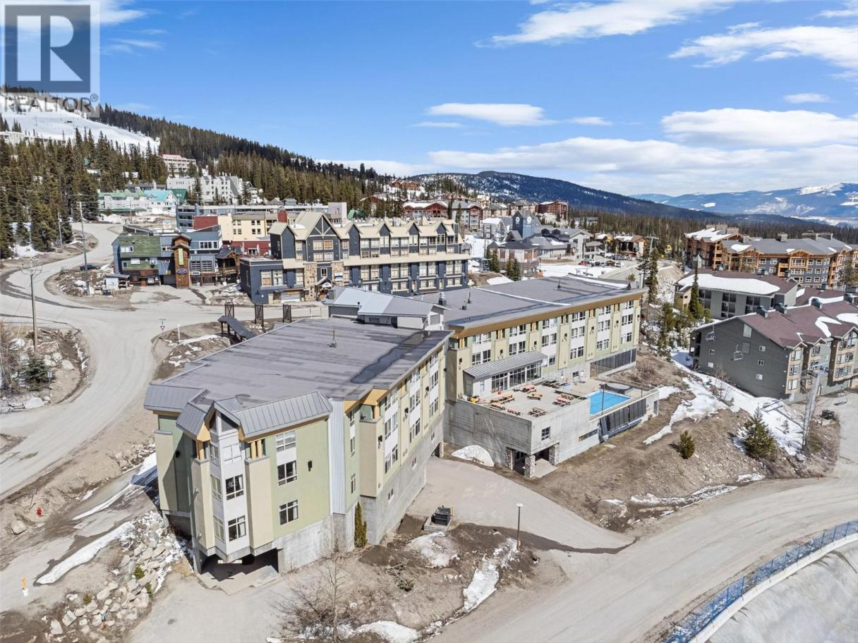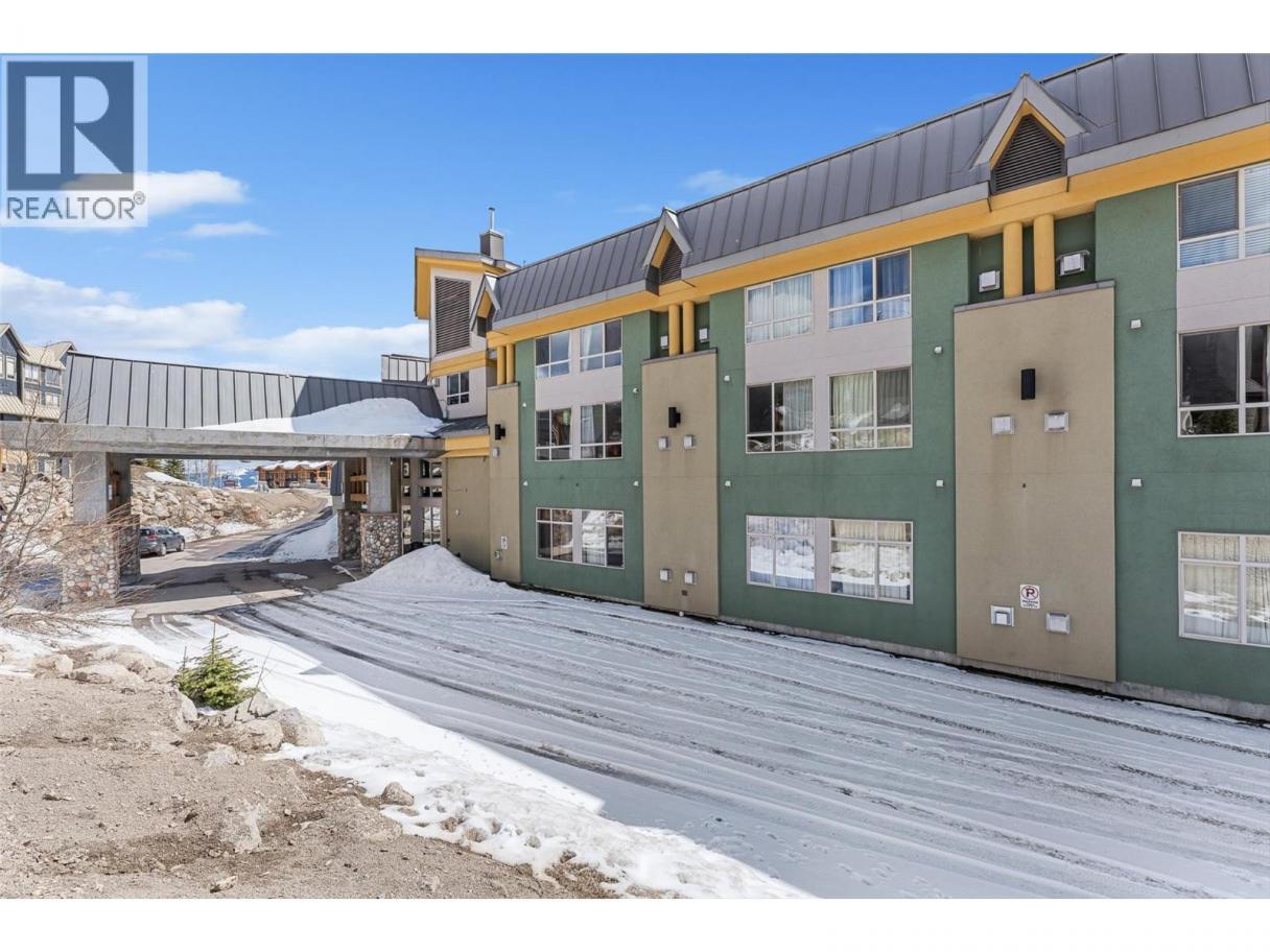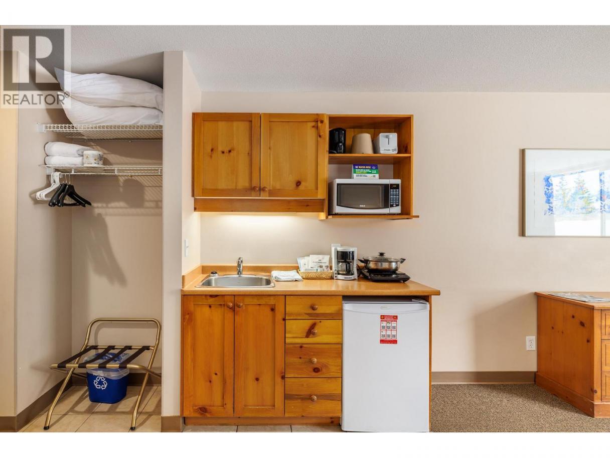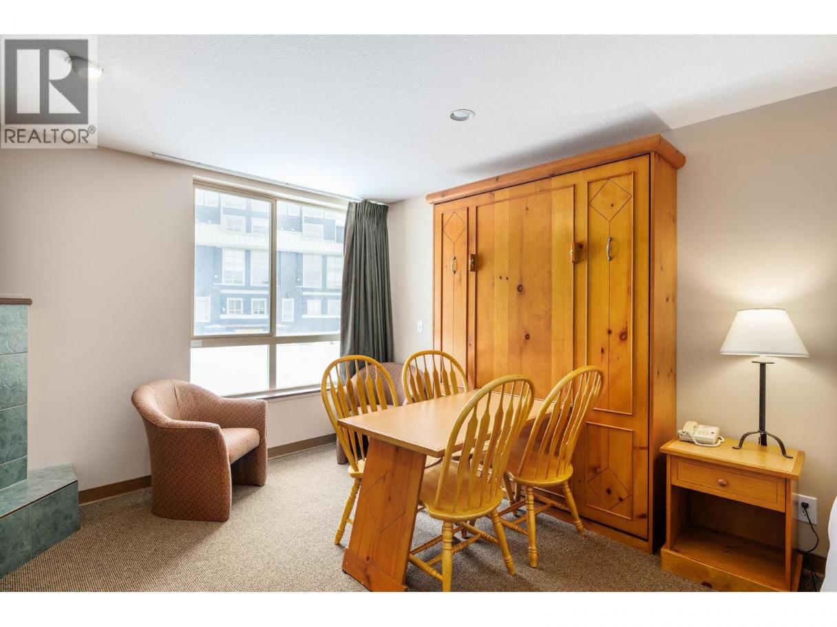Ski-in/ski-out living in the heart of Big White. This deluxe studio suite offers a comfortable mountain retreat with direct access to the slopes and resort amenities. Designed for efficient living, the open-concept layout features a built-in Murphy bed and thoughtful furnishings that allow the space to comfortably sleep four. The kitchenette is equipped with upper and lower cabinetry, tile flooring, an RCA microwave and Danby mini fridge—perfect for preparing quick meals between ski runs. The living area is warm and inviting with carpet flooring, a cozy gas fireplace with tile surround, and a large window framing views of the pool, hot tub and surrounding mountains. The 4-piece bath features tile flooring, a single vanity with integrated lighting and a tub/shower combination. Owners and guests enjoy access to exceptional building amenities including an outdoor pool, hot tub, fitness room and games room, along with restaurants and bars just steps away. Additional features include secure parking, ski storage within the building, shared guest laundry on P2 and pet-friendly policies with restrictions. Whether used as a personal getaway or rental property, this well-positioned suite offers effortless access to everything Big White Resort has to offer. (id:6769)