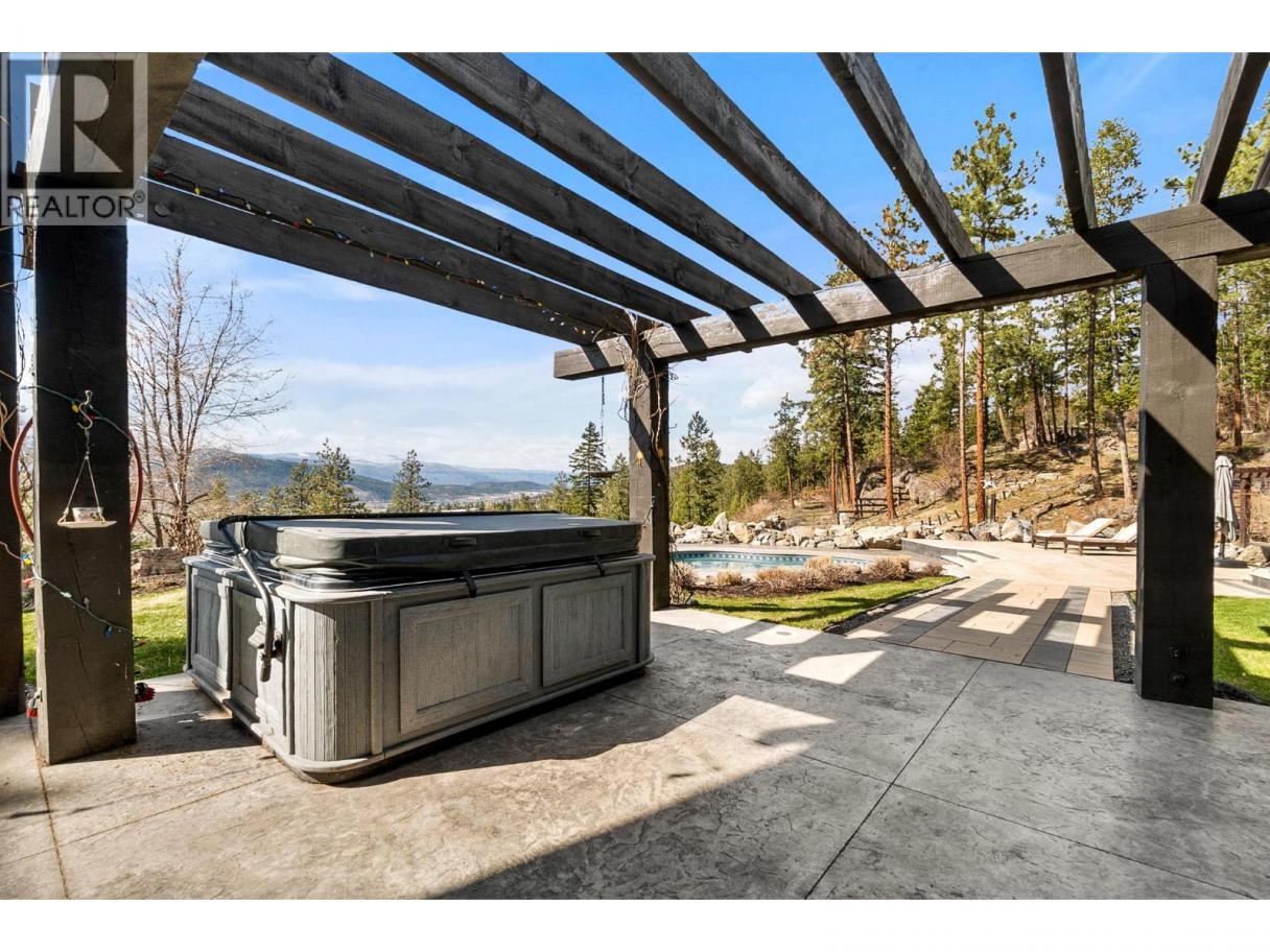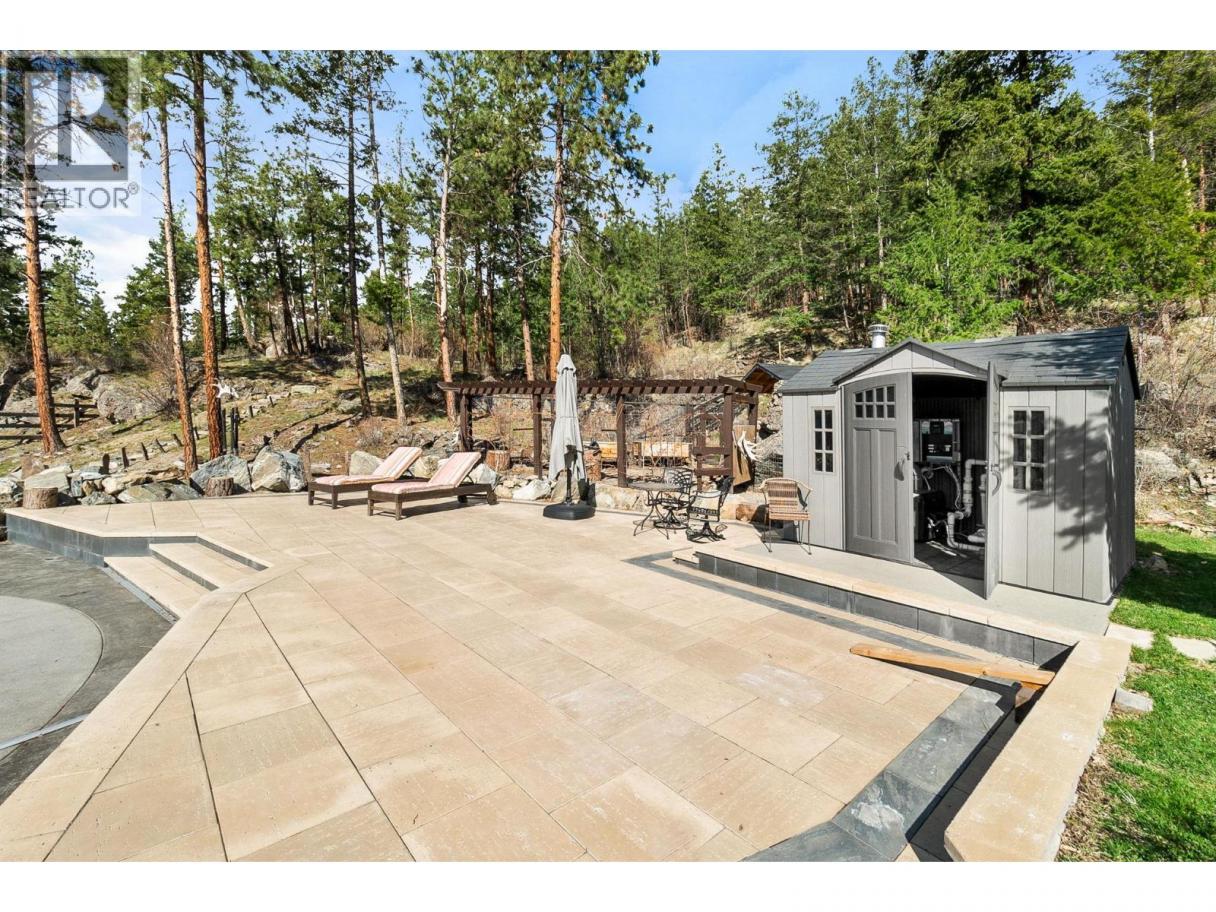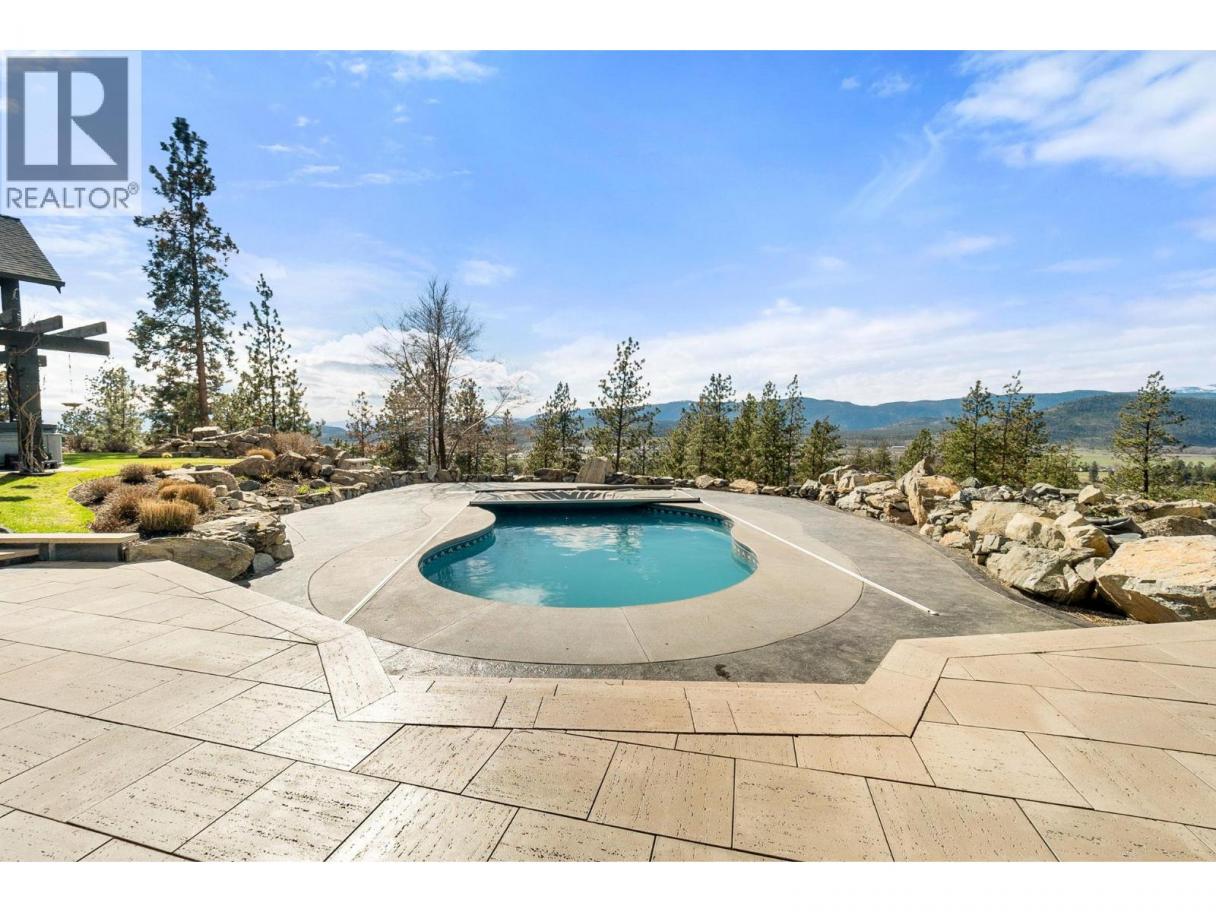 Ultra private gated estate lapped in luxury! Nearly 14 acres on a flat bench! Valley views! Horse lovers will celebrate this properties luxury built-in stable apart of the home! Behind security gates, a long driveway, this special property will make you feel at home! Minutes to horse trail systems, UBCO, YLW Airport, & amenities! Truly an entertainer’s oasis- seamless indoor-outdoor living fusing outdoor leisure spaces- pool / hot tub/ outdoor kitchen with the vaulted great room inside! The island kitchen features granite, paneled appliances & pass thru window for easy entertaining. The vaulted living room’s post and beam exude old world charm bringing that outdoor spacious feel indoors! Retire to the main floor primary retreat with spa-like ensuite. The upper level offers additional bedrooms split by a shared Jack and Jill full bath, additional flex space and access to an in-law suite that has exterior staircase separate entry. The lower level features a theatre room, gym area, tack room & access to horse stables or potential garage /workshop thru the home's exterior side walk-out under a suspended slab for the upper garage. Quality throughout- custom millwork, volume ceilings, Low E windows, travertine, electric blinds in main great room, hardwood floors, radiant in-floor heating, heated stables with direct access to fenced corrals and pastures. This estate offers both luxury and functionality. Come see this idyllic horse set-up and saddle up for a great life on Rockface! (id:6769)