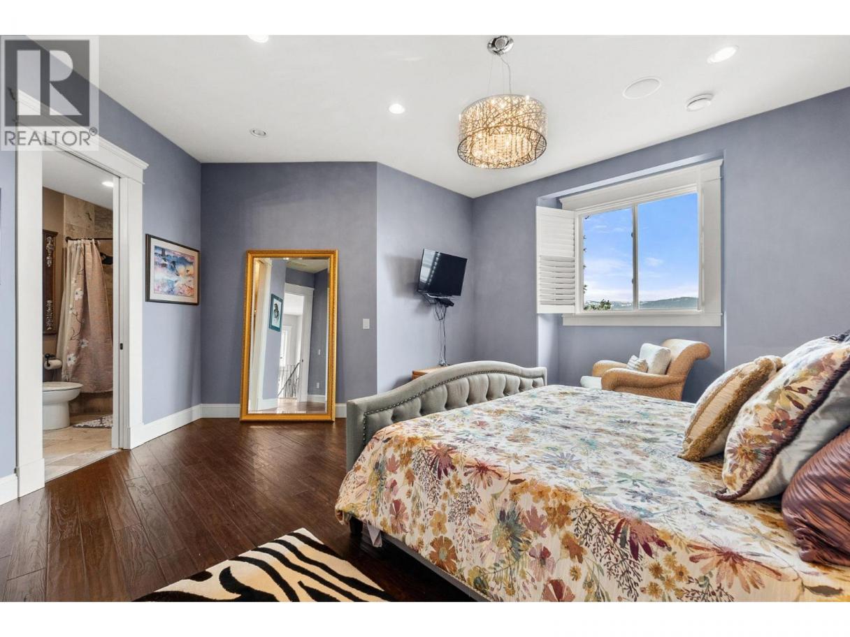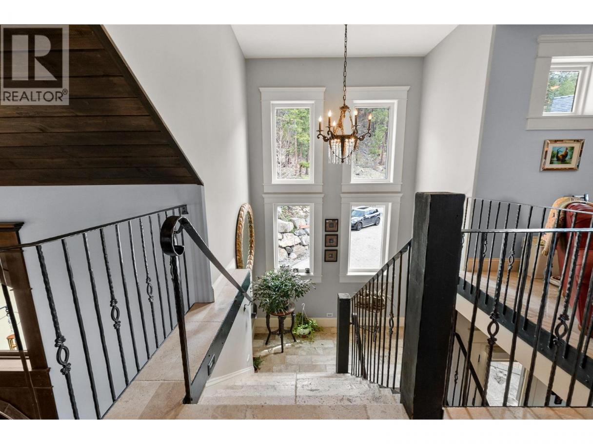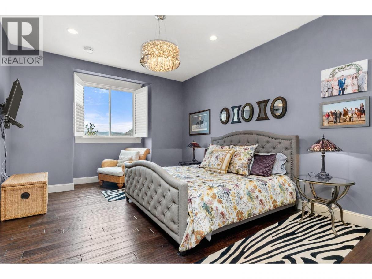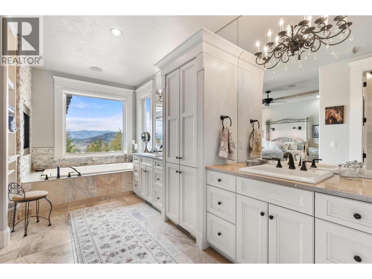 Ultra private gated estate lapped in luxury! Nearly 14 acres on a flat bench! Valley views! Horse lovers will celebrate this properties luxury built-in stable apart of the home! Behind security gates, a long driveway, this special property will make you feel at home! Minutes to horse trail systems, UBCO, YLW Airport, & amenities! Truly an entertainer’s oasis- seamless indoor-outdoor living fusing outdoor leisure spaces- pool / hot tub/ outdoor kitchen with the vaulted great room inside! The island kitchen features granite, paneled appliances & pass thru window for easy entertaining. The vaulted living room’s post and beam exude old world charm bringing that outdoor spacious feel indoors! Retire to the main floor primary retreat with spa-like ensuite. The upper level offers additional bedrooms split by a shared Jack and Jill full bath, additional flex space and access to an in-law suite that has exterior staircase separate entry. The lower level features a theatre room, gym area, tack room & access to horse stables or potential garage /workshop thru the home's exterior side walk-out under a suspended slab for the upper garage. Quality throughout- custom millwork, volume ceilings, Low E windows, travertine, electric blinds in main great room, hardwood floors, radiant in-floor heating, heated stables with direct access to fenced corrals and pastures. This estate offers both luxury and functionality. Come see this idyllic horse set-up and saddle up for a great life on Rockface! (id:6769)