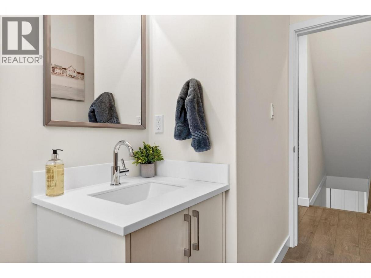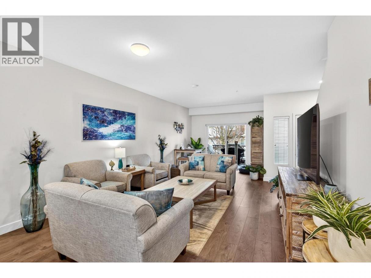 This well-kept 3 bedroom, 2.5 bathroom townhome offers a bright, functional layout in a solid, newer development. The main level features an open kitchen with quartz countertops, gas stove, stainless appliances, soft-close cabinetry, and a clean flow through the dining and living areas. A powder room on the main adds convenience. Upstairs you’ll find three bedrooms, including a comfortable primary suite with walk-in closet and ensuite, plus two additional bedrooms, a full bathroom, and laundry on the same level. This home includes a tandem double garage, hot water on demand, central air, and quality finishes throughout. Positioned in one of the better spots in the complex, the unit offers a more private outlook without facing directly into another building. Findlay Place is centrally located with quick access to UBCO, the airport, shopping, schools, parks, and major routes. A clean, move-in-ready townhome in a well-run, pet-friendly community. (id:6769)