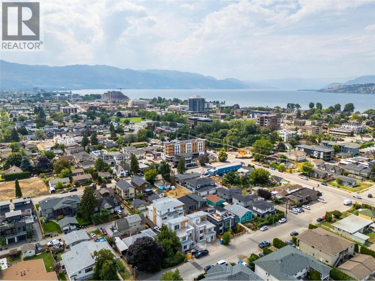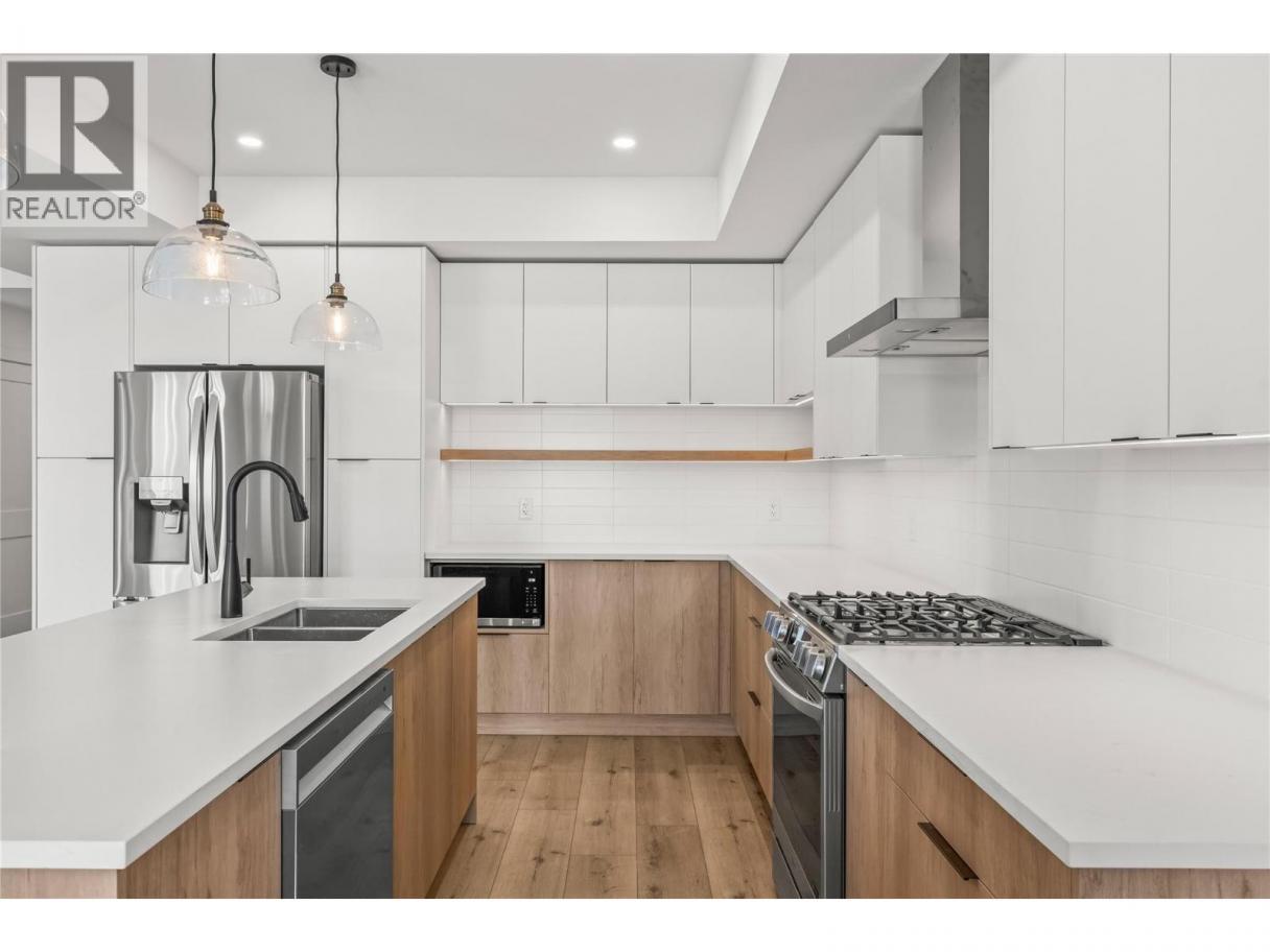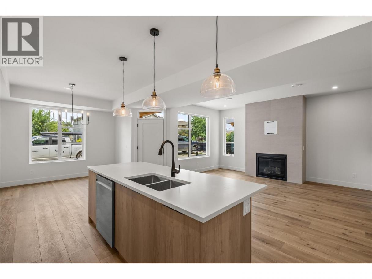Stylish townhome steps away from Pandosy Village! This beautifully finished 3-bedroom + den, 4-bath home offers the perfect blend of modern design, smart functionality, and unbeatable walkability. The bright, open-concept main floor features a chef-inspired kitchen with a large corner pantry, oversized island with seating, and seamless flow into the dining area and welcoming great room with a cozy natural gas fireplace. Upstairs, the spacious primary suite offers a walk-in closet and spa-like ensuite with double vanity, freestanding tub, and walk-in shower. Two additional bedrooms, a full bathroom with double vanity, and a thoughtfully designed laundry room with brand-new LG washer and dryer, folding counter, sink, and extra storage complete the upper level. The top floor offers a versatile recreation space with vaulted ceilings, a sleek wet bar, and direct access to a large rooftop patio—perfect for entertaining, relaxing, or adding a hot tub. Located just two blocks from the beach, and a short walk away from shops, restaurants, and amenities of Pandosy Village, with easy access to Kelowna General Hospital, parks, and schools. Spacious, stylish, and ideally located—an exceptional opportunity to enjoy Kelowna’s vibrant lifestyle. (id:6769)