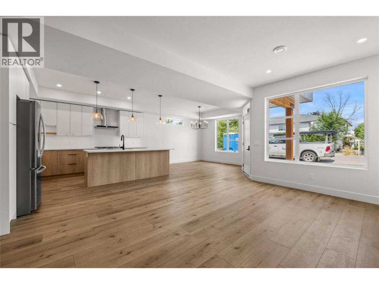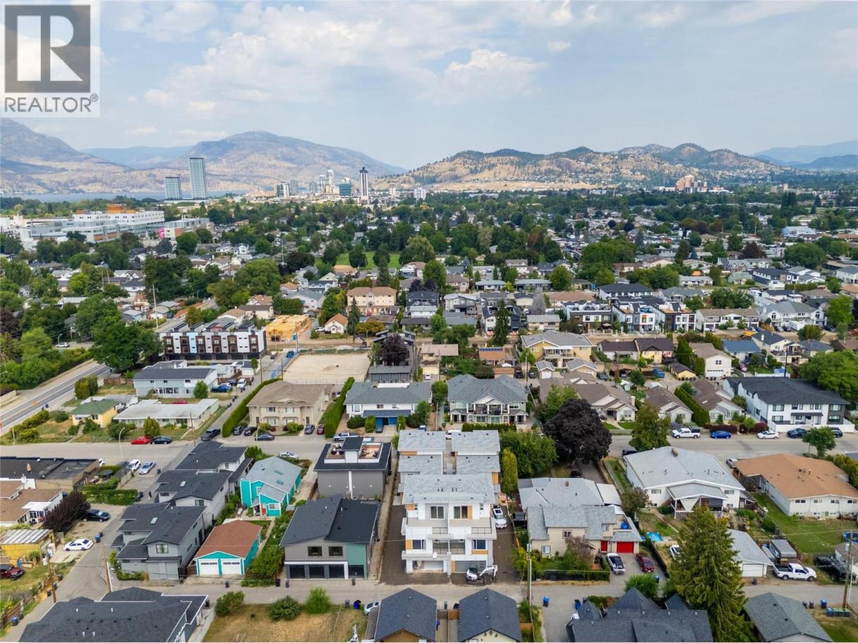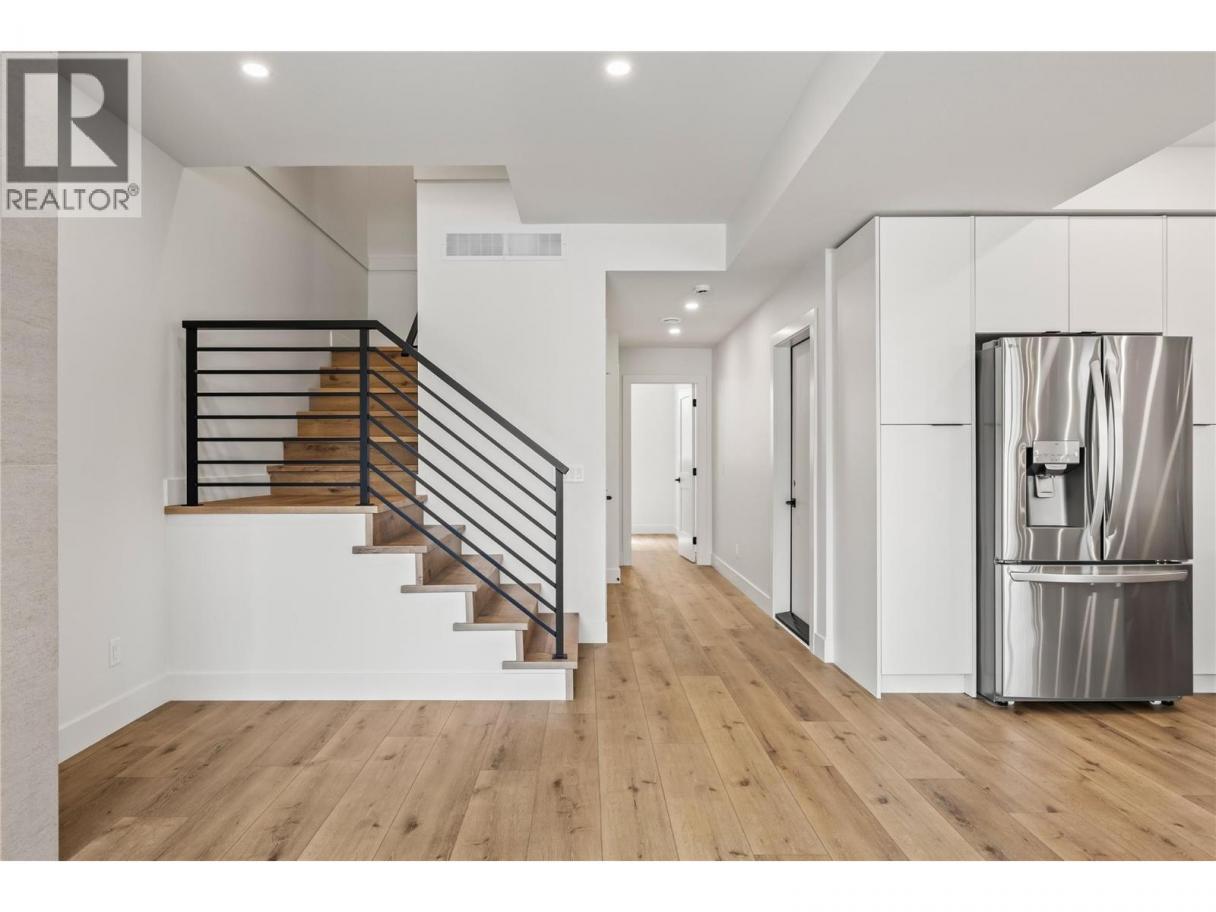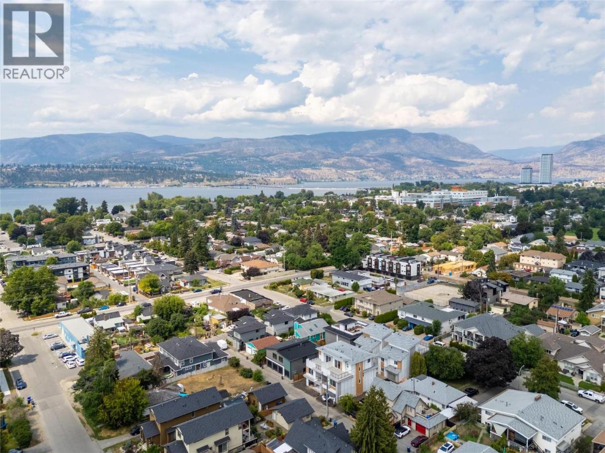 Stylish townhome steps away from Pandosy Village! This beautifully finished 3-bedroom + den, 4-bath home offers the perfect blend of modern design, smart functionality, and unbeatable walkability. The bright, open-concept main floor features a chef-inspired kitchen with a large corner pantry, oversized island with seating, and seamless flow into the dining area and welcoming great room with a cozy natural gas fireplace. Upstairs, the spacious primary suite offers a walk-in closet and spa-like ensuite with double vanity, freestanding tub, and walk-in shower. Two additional bedrooms, a full bathroom with double vanity, and a thoughtfully designed laundry room with brand-new LG washer and dryer, folding counter, sink, and extra storage complete the upper level. The top floor offers a versatile recreation space with vaulted ceilings, a sleek wet bar, and direct access to a large rooftop patio—perfect for entertaining, relaxing, or adding a hot tub. Located just two blocks from the beach, and a short walk away from shops, restaurants, and amenities of Pandosy Village, with easy access to Kelowna General Hospital, parks, and schools. Spacious, stylish, and ideally located—an exceptional opportunity to enjoy Kelowna’s vibrant lifestyle. (id:6769)