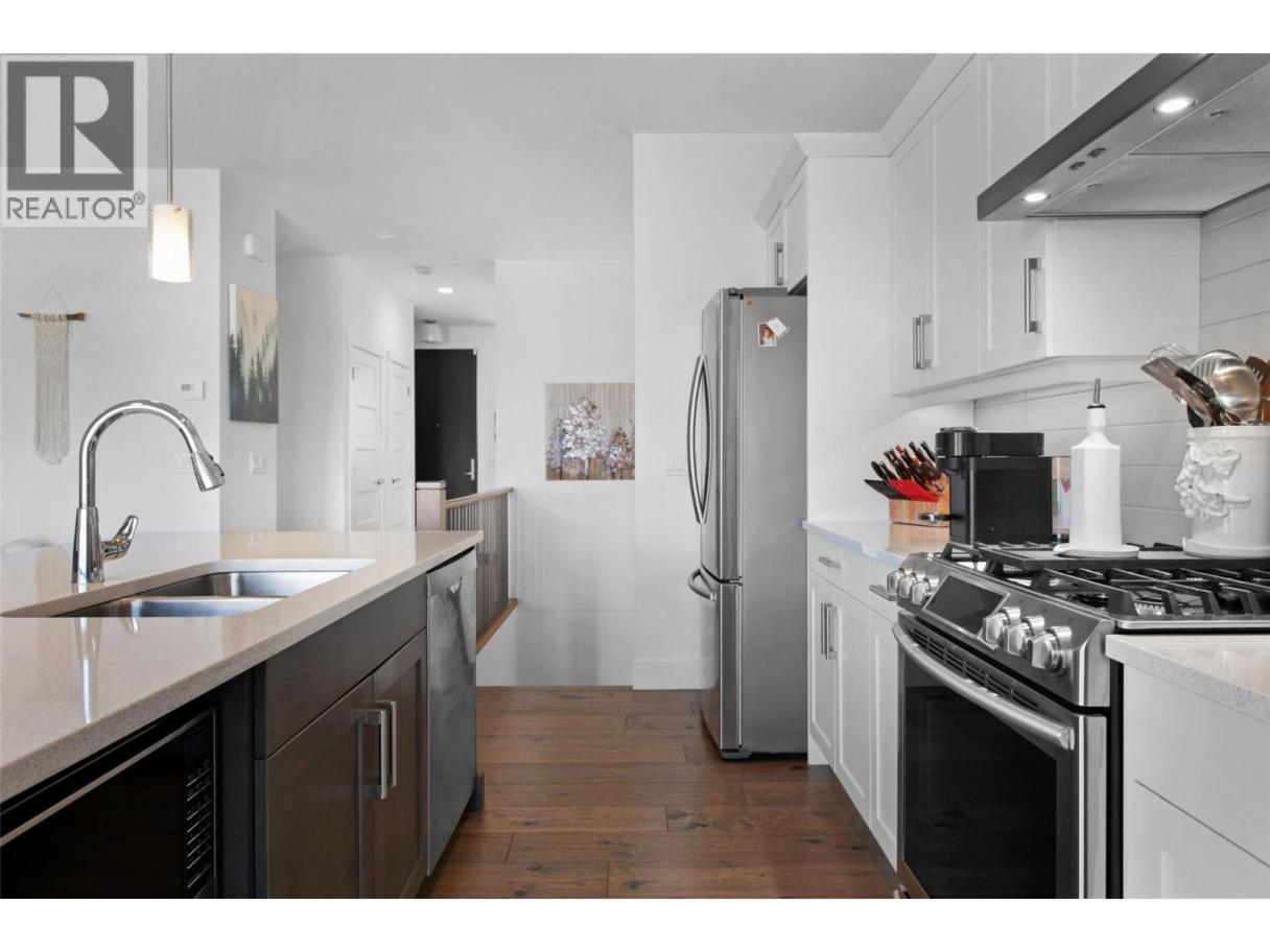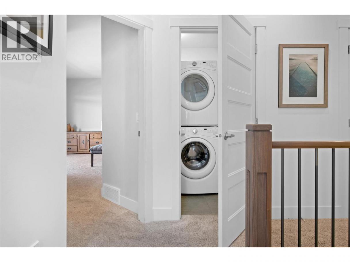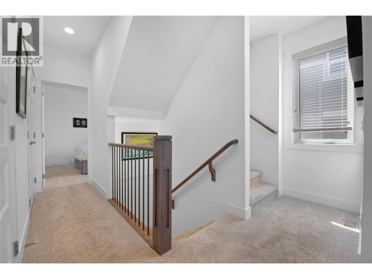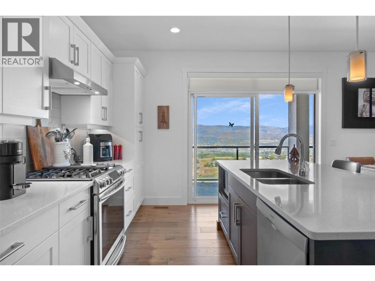 Vibrant golf course community offering luxury, low-maintenance living with breathtaking views. This beautifully appointed home features an open-concept main floor that seamlessly extends to a stunning backdrop of the golf course and Kelowna’s twinkling city lights. The spacious living room is anchored by a natural gas fireplace, while the chef’s kitchen boasts a large center island, abundant cabinetry, and an adjoining dining area. Step outside to a generous patio with automatic screens and a perfect for entertaining space. Off the front entry, you’ll find an ideal home office and a stylish two-piece bath. On the second level the primary suite offers a private view deck overlooking the city and lake, a walk-in closet, and a spa-inspired ensuite. A second bedroom and full bath complete this level and laundry. The lower floor offers a versatile family room with sliding glass doors to the patio and fully fenced yard, low maintenance landscaping and covered space. A guest bedroom with its own ensuite. Residents enjoy exclusive access to Tower Ranch Golf Club amenities, including a fitness centre, media room, restaurant, and more. Experience elevated living in one of Kelowna’s most scenic and sought-after communities. (id:6769)