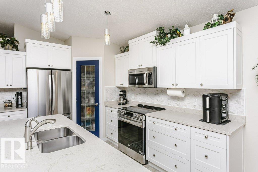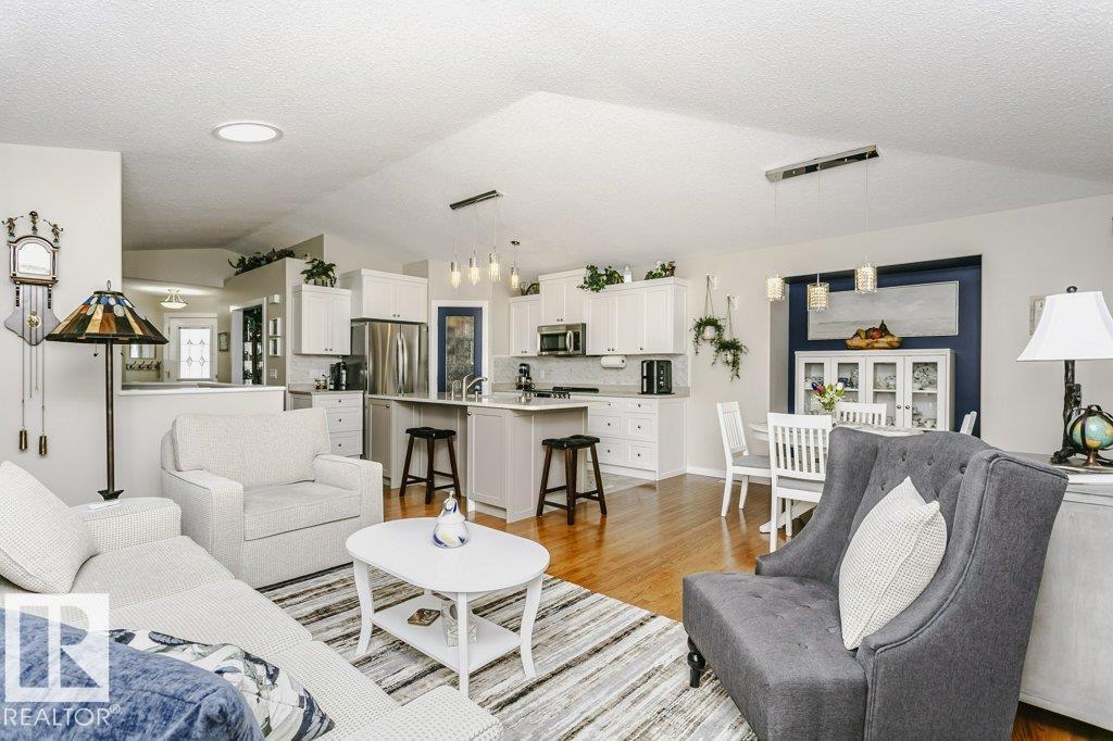 Welcome to this beautifully updated bungalow in a desirable adult living community, offering comfort, style, and convenience. This home features a spacious 20x24 attached garage and an extra-long driveway for ample parking. Inside, you’ll find an open-concept layout with a brand NEW kitchen, complete with an island and instant hot water tap—perfect for tea lovers. The inviting new sunroom adds bright, relaxing living space. The main floor boasts a large primary bedroom with a walk-in closet, additional wardrobe storage, and a private ensuite, along with a second 4-piece bathroom and a versatile front den. Enjoy the ease of main floor laundry and a beautifully updated fireplace with thermostat control. The fully finished basement offers high ceilings, two LARGE bedrooms, a 3-piece bathroom, generous storage, flex space, and a spacious family room. Additional upgrades include newer furnace, A/C, water softener, and UV-protective window film. A perfect blend of comfort and modern updates. (id:6769)
