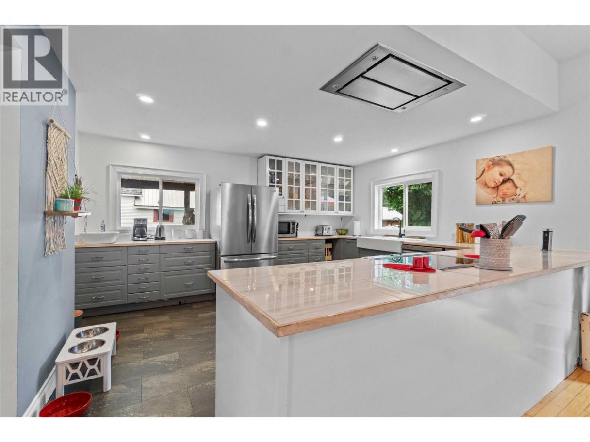 Originally built in 1915 this beautiful iconic home has been extensively renovated in 2018 transforming it into a stunning modern farmhouse while preserving its original charm. Nestled in the heart of Enderby this home is both functional and stylish offering a perfect blend of character and comfort. The interior is spacious with high ceilings, large windows, and open layout that welcomes natural light at every turn. The kitchen is a centerpiece complete with expansive counters, generous cabinetry, and a dedicated coffee bar with its own sink. Making this space ideal for both everyday living and entertaining. The main floor has two generously sized bedrooms and updated bathroom with a large walk-in tiled shower. Upstairs the entire loft has been converted into a stunning primary retreat. The home is exceptionally well-insulated with Ruxol insulation, newer furnace and A/C for year-round comfort. The exterior has been upgraded with durable Hardie siding and a newer roof. The basement remains unfinished but includes a separate entrance, great for a potential suite. The fully fenced yard is ideal for young children or pets. Located within walking distance to schools and amenities this home is perfect for families or anyone looking to enjoy small-town living with modern conveniences. This is truly a one-of-a-kind home in Enderby that needs to be seen to be fully appreciated. Don’t miss your chance to own a piece of history with all the benefits of modern living. (id:6769)