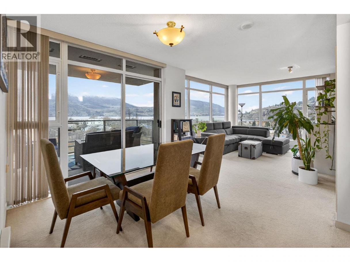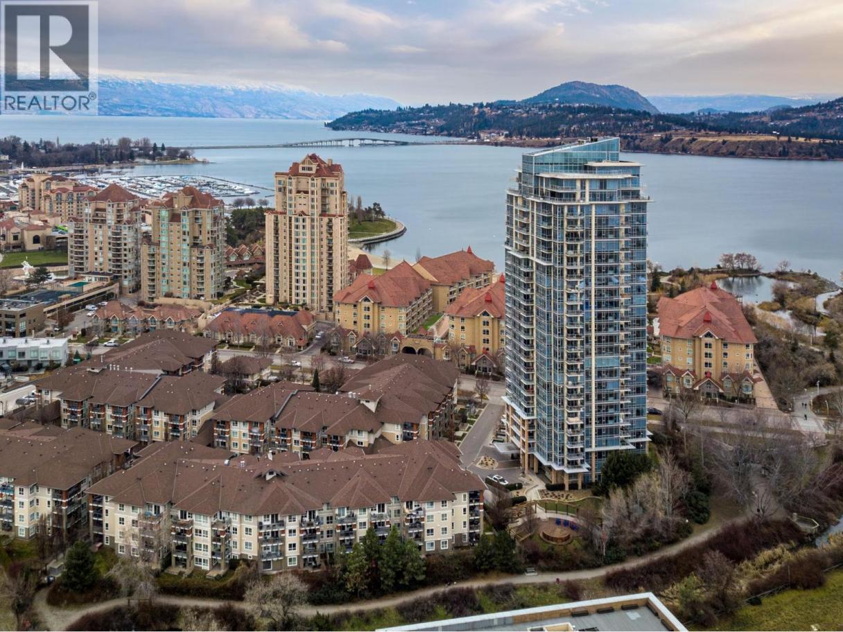 This beautifully appointed 1,200 sqft 2-bed, 2-bath plus den condo offers with stunning views of Okanagan Lake and is priced to sell. Offered $65,000 below the last comparable sold unit, this condo presents exceptional value in one of downtown Kelowna’s most desirable buildings. Ideal for both personal use or rental flexibility, the split-bedroom floor plan offers excellent privacy. Floor-to-ceiling windows flood the home with natural light and showcase beautiful lake and mountain views. The modern kitchen is equipped with stainless steel appliances, a gas range, and peninsula seating that flows into the open-concept living area with a built-in electric fireplace and access to a lake-view patio. The spacious primary suite includes a walk-in closet and a 5-piece ensuite, while the second bedroom and den provide excellent flexibility for guests or a home office. Located on Sunset Drive, widely considered the premier street in downtown Kelowna, just steps from the waterfront, marina, restaurants, and shopping. Includes secure parking and a storage locker. Waterscapes residents enjoy resort-style amenities including an outdoor pool, two hot tubs, and a fully equipped fitness centre. (id:6769)