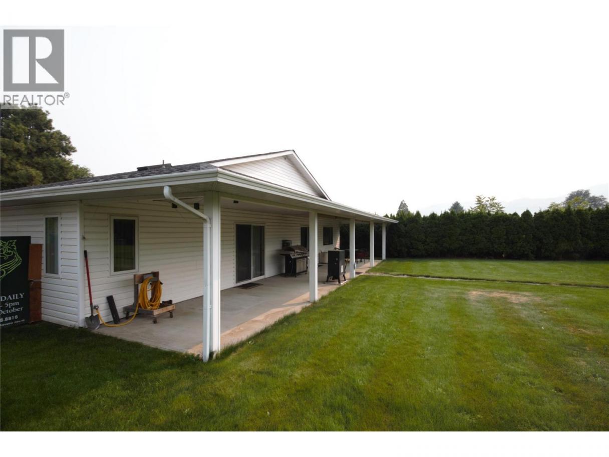 Welcome to 5226 Haynes Road—an exceptional rancher offering bright, open-concept living on a quiet, friendly street just minutes south of downtown Oliver. Set on 0.48 of an acre, this property combines comfort, functionality, and impressive outdoor space. The spacious eat-in kitchen is a true centerpiece, featuring a large island, pantry, and quality stainless steel appliances, with seamless flow into the dining and living areas—perfect for both everyday living and entertaining. A cozy gas fireplace, vaulted ceilings and radiant in-floor heating adds warmth and charm to the main living space. The generous primary suite offers a private retreat with direct access to the covered patio, a sizeable walk-in closet, and a well-appointed ensuite complete with a corner soaker tub and separate shower. Step outside to enjoy the fully fenced, private backyard. The expansive covered patio stretches across the rear of the home—ideal for relaxing or hosting while taking in stunning mountain views. Additional highlights include central air conditioning, water softener, underground irrigation, double car garage, and RV parking. A standout feature of this property is the impressive 1,270 sq. ft. detached shop, which includes a mezzanine, separate sub-panel, two 10-ft doors, 10-ft ceilings, is plumbed for in-floor heating and convenient alley access—perfect for hobbyists, car enthusiasts, or extra storage. Contact Cameron or John to book your private tour or for more information. (id:6769)