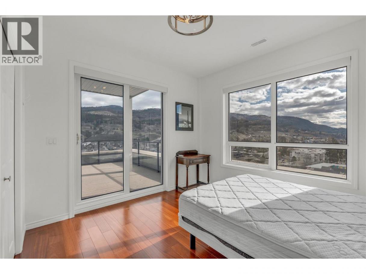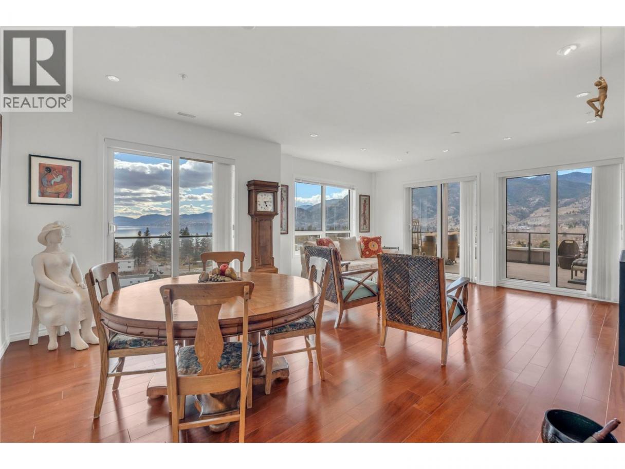 Absolutely one of a kind, panoramic lake view, sub penthouse at the South end of Penticton on the 11th floor! This stunning 1700sqft unit is totally custom & upgraded throughout with no detail missed. Situated on the whole South side of the building & wrapping to the East & West sides also, with expansive views across Skaha Lake this modern condo is spectacular, & just a 3-minute walk to Skaha Lake. The floorplan features 2 bedrooms plus a den, spacious open rooms & design with over 664sqft of deck space to enjoy over 4 decks! The stunning high end kitchen features waterfall edge quartz counters, 7 high end appliances, custom organizers & tons of cabinetry. The hardwood floors run throughout the unit, & customizations continue with all built in closet organizers, valor fireplace, wheelchair accessible door frames, recessed lighting, custom cabinetry & more. The unit comes with a secure parkade parking spot & has a large storage locker on the same floor as the suite. (id:6769)