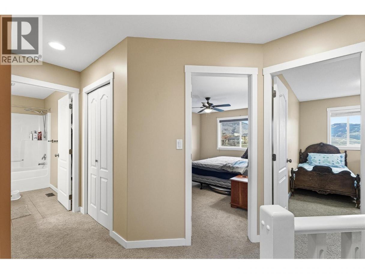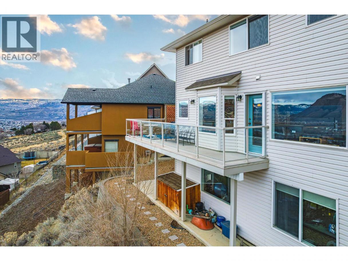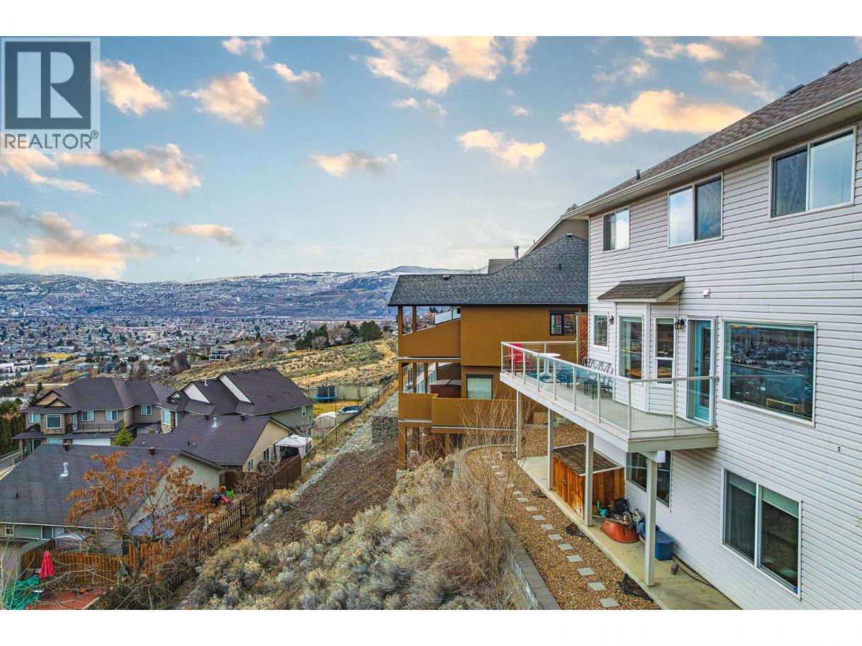 Spacious and well-designed 4 bedroom, 4 bathroom home offering 3,388 sq ft in a quiet pocket of Batchelor Heights. Set on a south-facing slope capturing panoramic city views & mountain scenery w/ excellent sun exposure throughout the day. Main level features real hardwood flooring & tile, with a layout that flows naturally between living spaces. Kitchen is equipped with granite countertops, a gas stove, & ample prep space. Ideal for both daily living and entertaining. Large windows throughout take full advantage of the elevated setting, w/ views visible from multiple rooms, incl the primary bed & ensuite. Wrap-around deck extends your living space outdoors, allowing you to enjoy the views & sun from different angles throughout the day. Bsmnt offers excellent flexibility w/ sep entrance, well-suited for future suite potential. Currently includes a spacious rec room set up as a home gym, easily convertible back into addi living space, along with a dedicated workshop featuring built-in benches, storage, & an air filtration system— for woodworking or projects. A/C (2024), HE furnace, HW tank (2022), and wireless access points installed for reliable connectivity. Just minutes from the Lac du Bois Grasslands, offering direct access to hiking, biking, and outdoor recreation right at your doorstep. A well-established neighbourhood known for its quiet setting, larger lots, and convenient access to schools, shopping, and downtown Kamloops. (id:6769)
