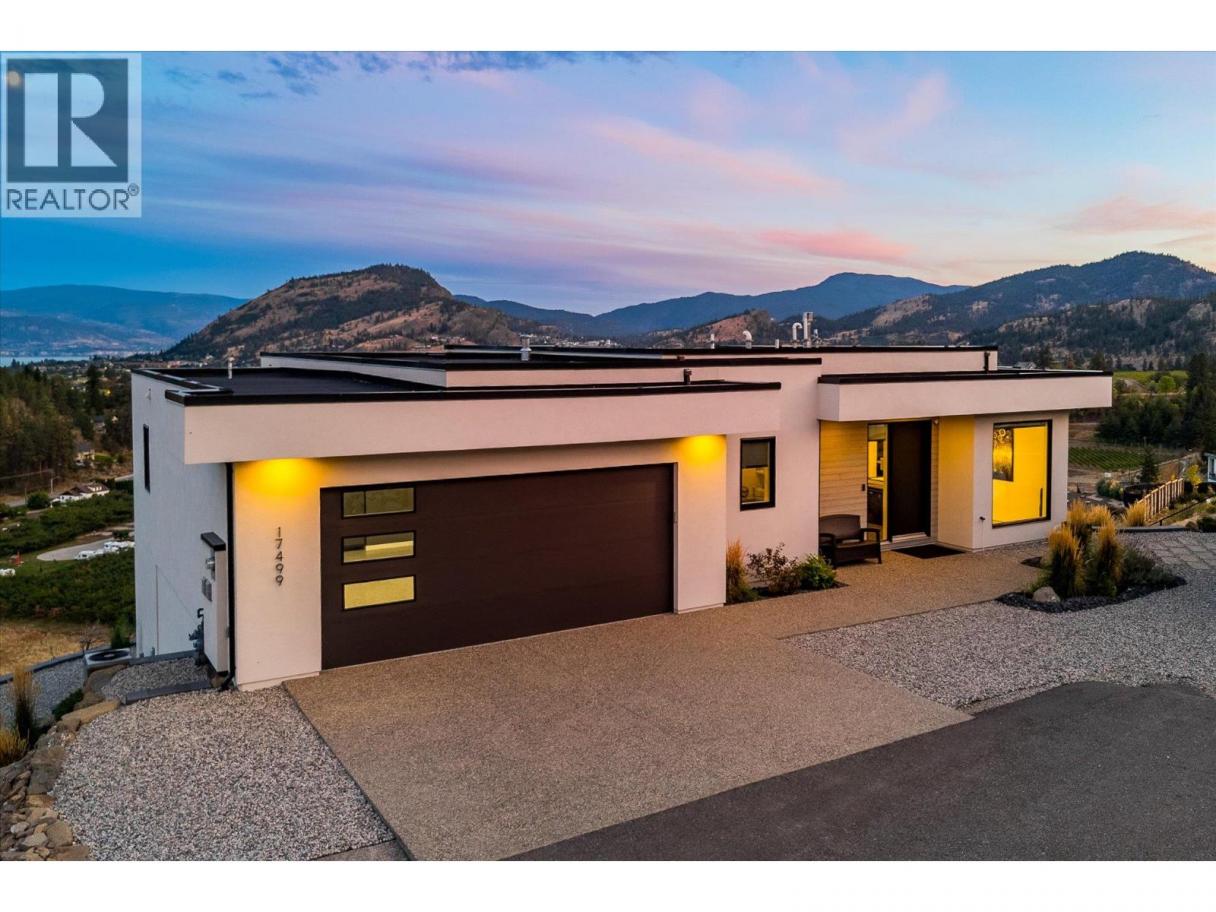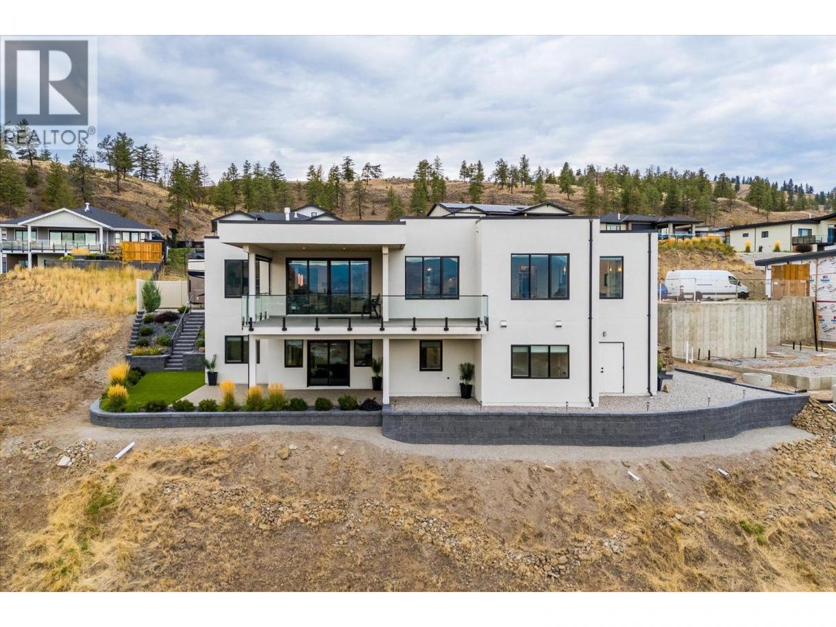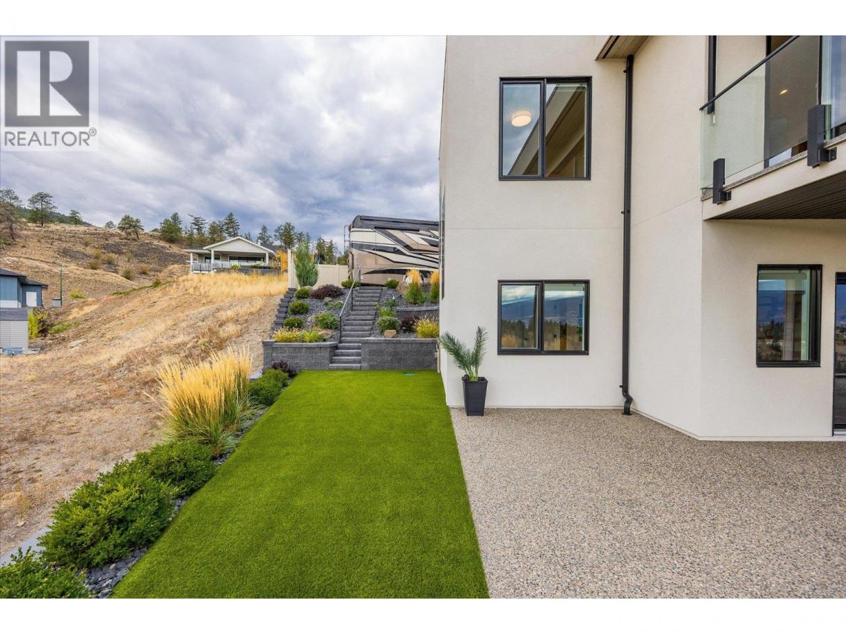 Welcome to this immaculate custom home in Summerland’s sought-after Hunters Hill community, built by renowned Richie Custom Homes. Offering nearly 3,000 square feet of refined living, this three bedroom and office, three bathroom residence showcases panoramic lake, mountain, and valley views. The chef’s kitchen is equipped with custom cabinetry, premium Fisher & Paykel appliances, and seamless flow into the open living area. The primary wing features gorgeous views and complete privacy, complementing a spa-inspired primary suite with heated floors. The main floor also has a bright office and beautiful powder room. Downstairs are two additional bedrooms, gym or flex room, full bathroom, and a fantastic storage room (easily converted to an additional bedroom). The lower level features polished concrete floors, and full in-floor radiant heating. Additional features include on-demand hot water, a private gym, ample storage, and a built-in security system for peace of mind. The Park Place garage impresses with epoxy floors & custom cabinetry, and ready for EV charging. Outdoors, enjoy an artistic shaded deck, hot tub connection, synthetic turf, a 42 foot x 10 foot RV pad with 50-amp service, irrigation, and low maintenance landscaping. Completed in 2022, this home shows brand new, with home warranty in place — a perfect harmony of luxury, technology, and design. (id:6769)