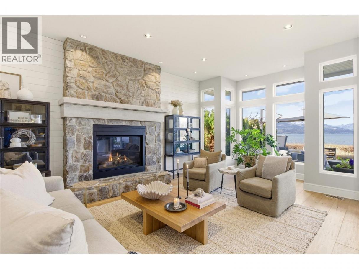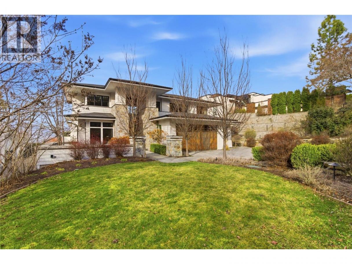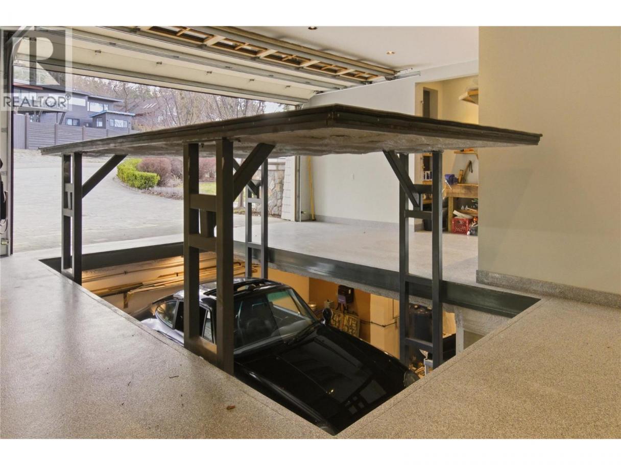 There’s a quiet magic to this home - the way it settles into its surroundings & the way every space feels connected to the lake. Set in one of Kelowna’s best neighbourhoods with the best lake view setting, this one owner home draws subtle inspiration from Frank Lloyd Wright’s Prairie design, blending natural materials, clean lines & a deep sense of warmth. Designed as a coveted two-storey walk-out, the main level opens effortlessly to the outdoors where a concrete & tile pool, sunken hot tub & thoughtfully designed landscaping create a setting that feels more like a private resort, all framed by front row unobstructed lake views. Inside, expansive windows invite in natural light, while Kettle Valley stone, oak hardwood & custom millwork create a grounded, welcoming feel. The great room is anchored by a statement stone fireplace, while the kitchen features a generous island designed for gathering. The main level primary suite is a lake view sanctuary of its own, with spa-like finishes & boutique style closet, while upstairs bdrms each enjoy their own ensuite. Upper level also offers a family room space & office space while the main level features a guest bedroom/den. The lower level of the home features a very rare offering - a fully equipped 1500sqft Collector’s Shop with parking for 4-6 additional vehicles. Accessed by a 7000lb hydraulic elevator lift complete with radiant in floor heat, welding station, fresh air recirculation system + more. Short walk to Cedar Creek Park. (id:6769)