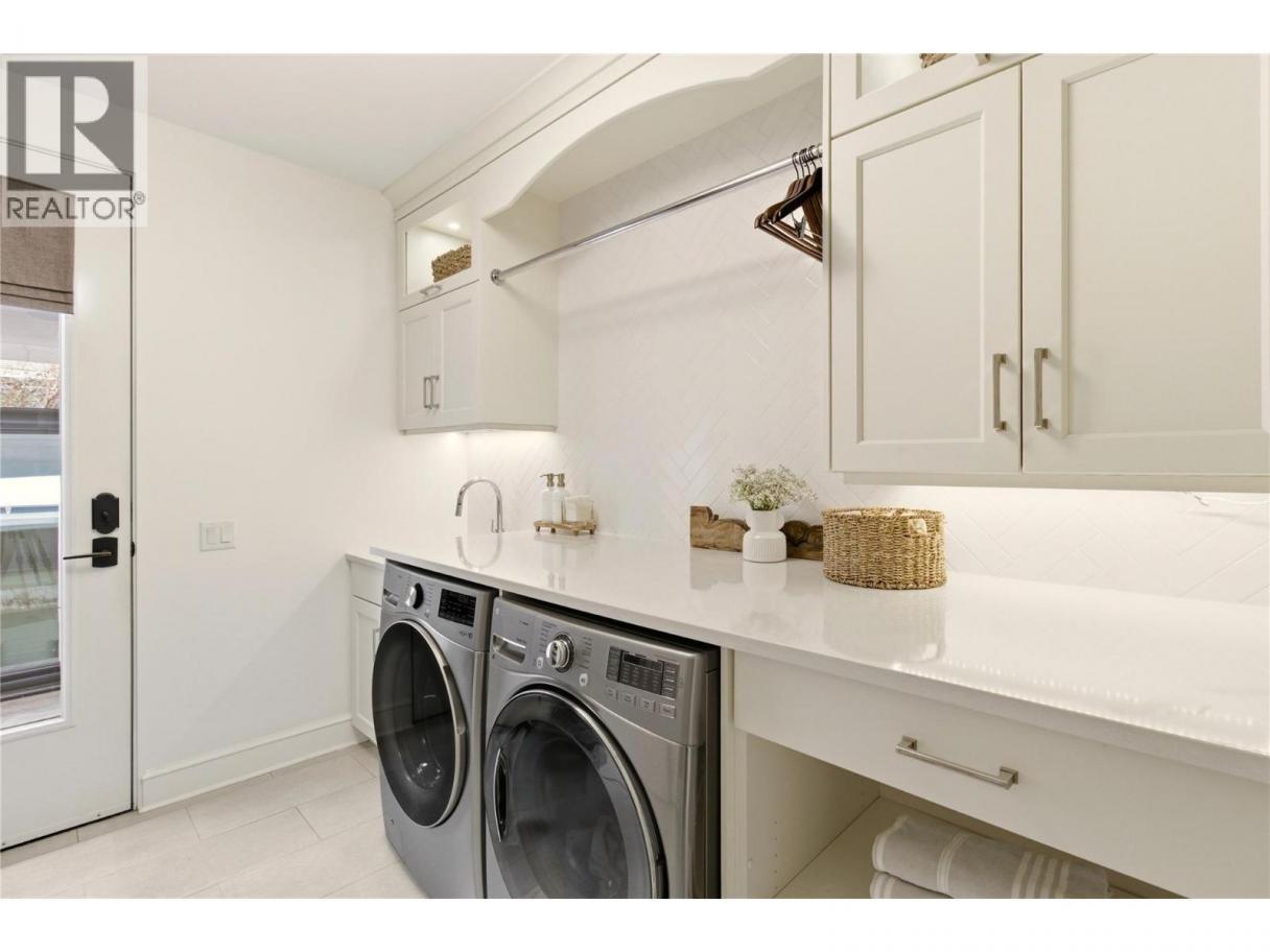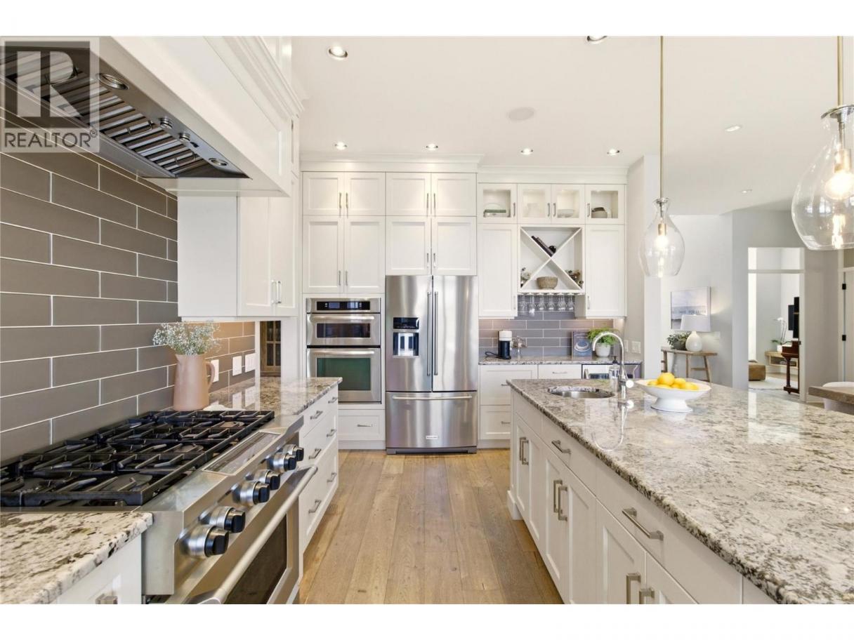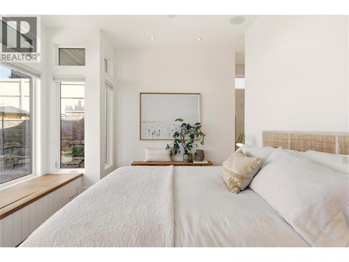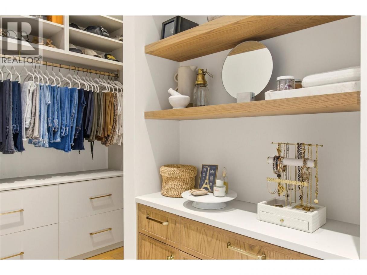 There’s a quiet magic to this home - the way it settles into its surroundings & the way every space feels connected to the lake. Set in one of Kelowna’s best neighbourhoods with the best lake view setting, this one owner home draws subtle inspiration from Frank Lloyd Wright’s Prairie design, blending natural materials, clean lines & a deep sense of warmth. Designed as a coveted two-storey walk-out, the main level opens effortlessly to the outdoors where a concrete & tile pool, sunken hot tub & thoughtfully designed landscaping create a setting that feels more like a private resort, all framed by front row unobstructed lake views. Inside, expansive windows invite in natural light, while Kettle Valley stone, oak hardwood & custom millwork create a grounded, welcoming feel. The great room is anchored by a statement stone fireplace, while the kitchen features a generous island designed for gathering. The main level primary suite is a lake view sanctuary of its own, with spa-like finishes & boutique style closet, while upstairs bdrms each enjoy their own ensuite. Upper level also offers a family room space & office space while the main level features a guest bedroom/den. The lower level of the home features a very rare offering - a fully equipped 1500sqft Collector’s Shop with parking for 4-6 additional vehicles. Accessed by a 7000lb hydraulic elevator lift complete with radiant in floor heat, welding station, fresh air recirculation system + more. Short walk to Cedar Creek Park. (id:6769)