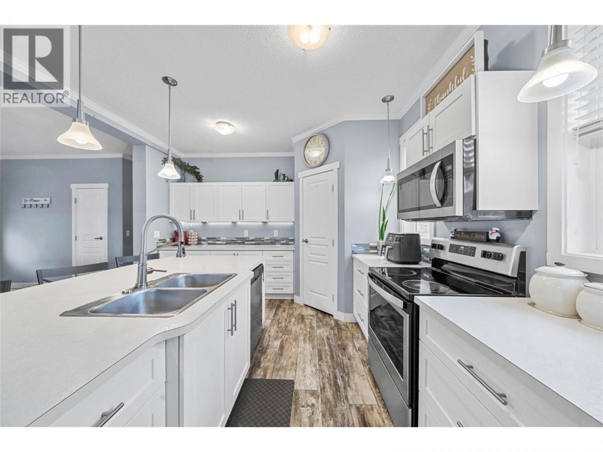 Built in 2019, this well-maintained 2 bedroom, 2 bathroom modular home is located in Carriage Lane bare land strata on a quiet no-through (dead-end) street, offering privacy and minimal traffic. The open-concept floor plan provides a bright and functional layout, ideal for both everyday living and entertaining. Pride of ownership is evident throughout, highlighted by thoughtful upkeep and the added comfort of a new air conditioning unit for year-round efficiency. A major highlight is the spacious double garage, paired with an extra-tall crawl space that delivers exceptional storage. The low-maintenance strata setting offers the comfort of a detached home with the convenience of community living—an excellent option for downsizers or those seeking a quiet, easy-care lifestyle. (id:6769)