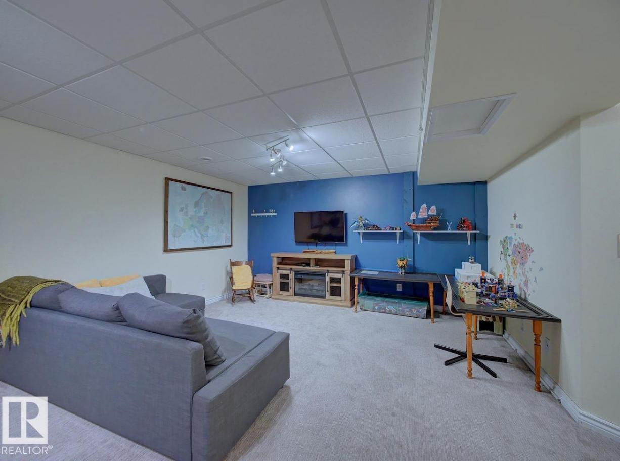 Location, and comfort come together in this fully developed 3-bedroom bungalow condo in Countryside, just steps from Fort Saskatchewan’s river valley and walking trails The main floor features a spacious kitchen with ample cabinetry, a dining area that overlooks the inviting living room, and a built-in electric fireplace for added comfort. Patio doors lead to your private backyard space, perfect for relaxing outdoors. This level also offers a 4-piece main bathroom and three bedrooms, including the primary bedroom with its own 2-piece ensuite. Each bedroom includes generous closet space. Downstairs, you’ll find a large recreation room, a 3-piece bathroom with sauna, a den, being used as a workshop, utility room with plenty of storage, and a separate laundry area. (id:6769)