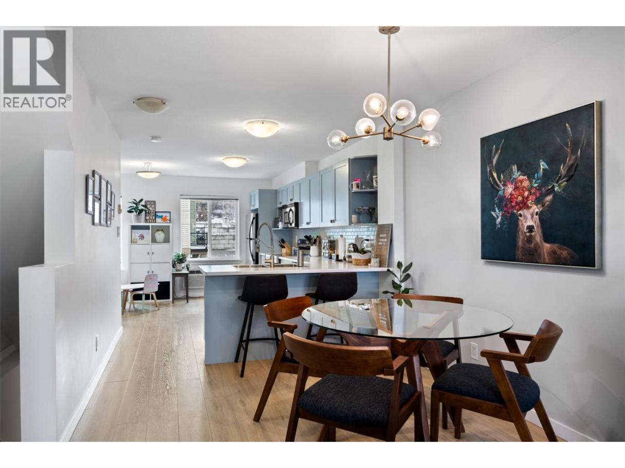 Nicely updated with new flooring, paint, countertops, plus re-surfaced cabinet faces and new tile, all in the last 3 years! The thoughtful addition of a flex space currently used as a work out area and a 2 pc bathroom on the lower level expand the possibilities of customization and personalized use. This well cared for and nicely styled unit is on the view side of the complex and enjoys a gorgeous outlook over the valley. The french doors from the flex space open onto a patio and a very private feeling grassy area beyond. Nice sized bedrooms, a full bathroom and full ensuite round out the top floor. Check out this fantastic property near shopping, transit and restaurants. Very low strata fee, new H/W tank 2025, secure garage parking for one vehicle, additional parking stalls available by waitlist. (id:6769)