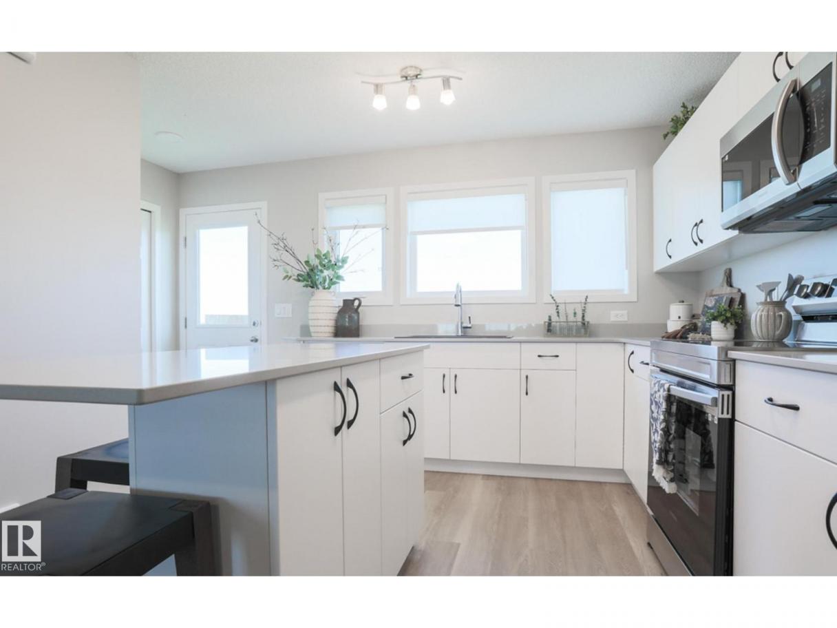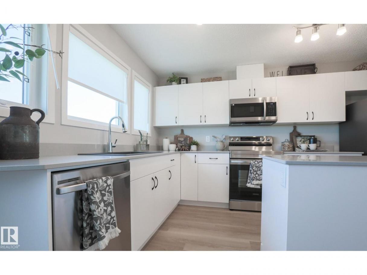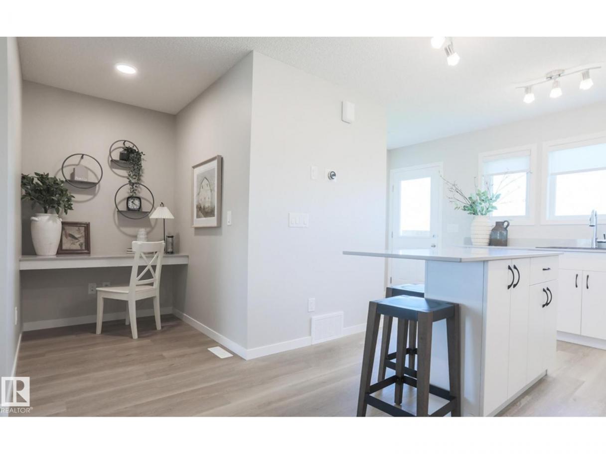 Charming and thoughtfully designed 2-storey built by Sterling Homes, offering modern comfort and smart use of space. The main floor features durable luxury vinyl plank flooring and a bright, open layout ideal for everyday living. Large front and rear windows fill the home with natural light, while the U-shaped kitchen with peninsula seating creates the perfect space for cooking and gathering. A convenient 2-piece bath completes the main level. Upstairs, you’ll find three bedrooms including a bright primary suite with walk-in closet and private ensuite. Upper-floor laundry adds everyday convenience. A separate side entrance and basement rough-in provide excellent future development potential. Parking pad included with option to add a detached double garage. (id:6769)