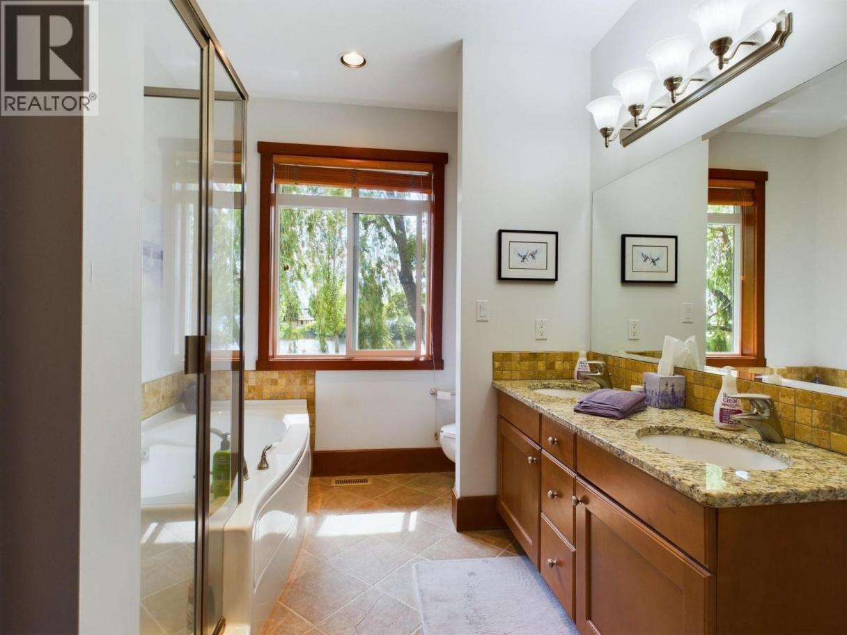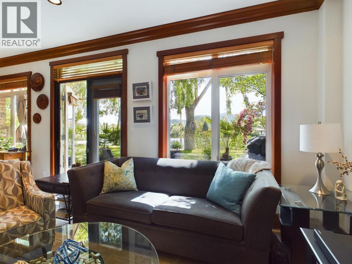 Welcome to Sole Vita, a sought-after gated waterfront community in beautiful Osoyoos. Situated on nearly 11 acres of meticulously maintained grounds, this family-friendly community offers exceptional resort-style living, expansive green space, and direct beach access. Residents enjoy two sparkling pools, two relaxing hot tubs, a fitness centre, volleyball courts, and a welcoming clubhouse — all designed for both recreation and connection. A boat slip is available if needed. This impressive 3-bedroom, 3 full-bath home features 11-foot ceilings, elegant crown mouldings, stainless steel appliances, and granite countertops. The thoughtful layout offers both comfort and functionality, while the double garage provides ample storage and convenience. Ideally located just minutes from award-winning wineries, premier golf courses, and scenic hiking and biking trails, this home offers the perfect blend of luxury, lifestyle, and location. Experience waterfront living at its finest in Sole Vita. (id:6769)
