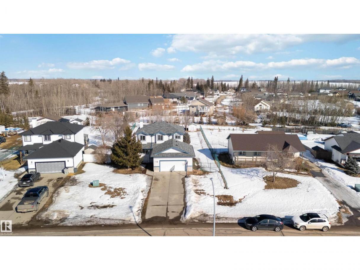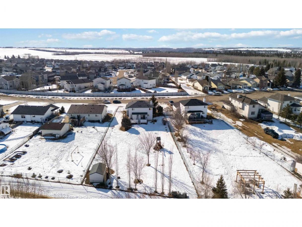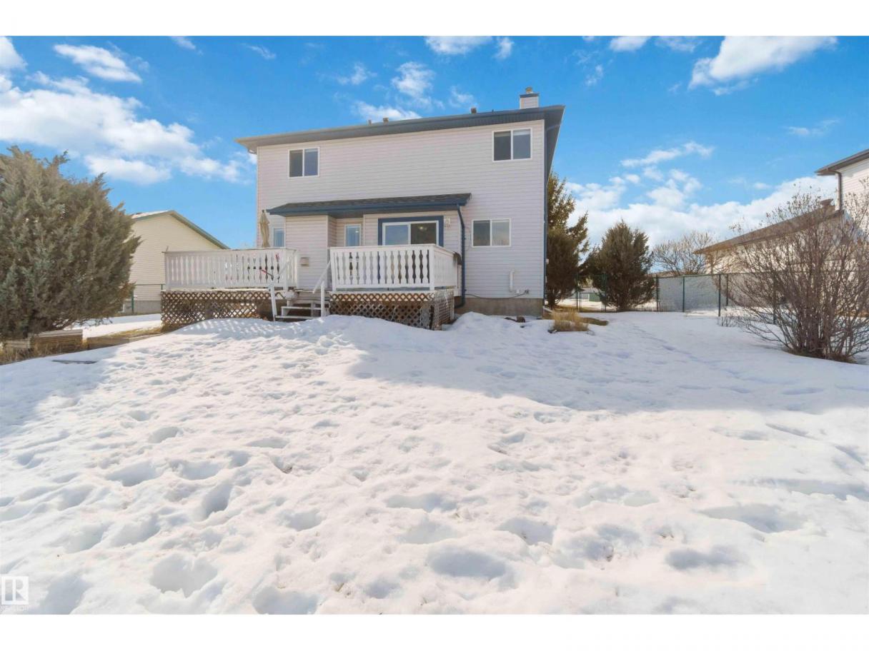 Ever dream of owning a .4-acre lot with the convenience of city water? This solid 2004-built, 1,816 sq. ft. two-storey home offers the perfect balance of massive outdoor space for the kids to play without the high maintenance of full acreage living. Featuring 5 bedrooms, two main-floor living rooms, and a fully developed basement with an additional rec room, there is space for everyone. The home is topped with a new roof (2024) and features a bright, west-facing layout. Outside, you’ll find a large garden, numerous fruit trees, a shed, and a deck with a gas BBQ hookup. The property includes a double attached garage and ample parking for an RV. Perfectly situated for convenience, you are walking distance to the elementary school and just 15 minutes from CFB Edmonton. This is a rare opportunity to secure a spacious family home on a prime, oversized lot. (id:6769)