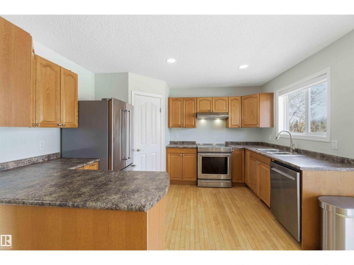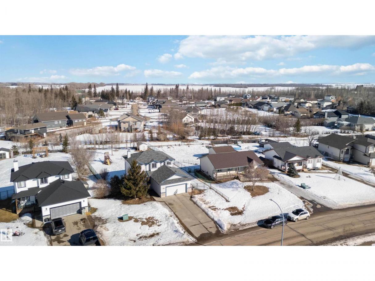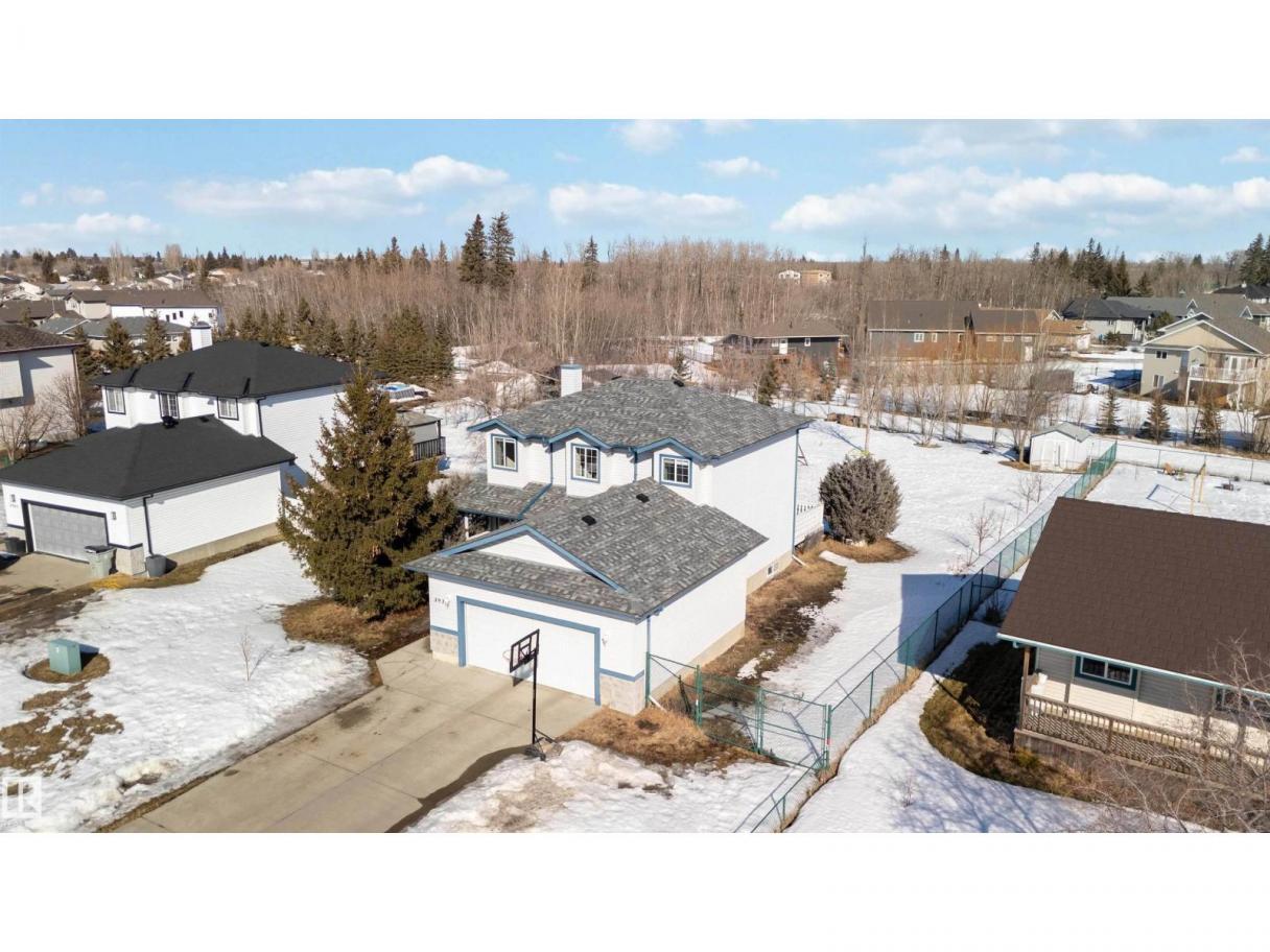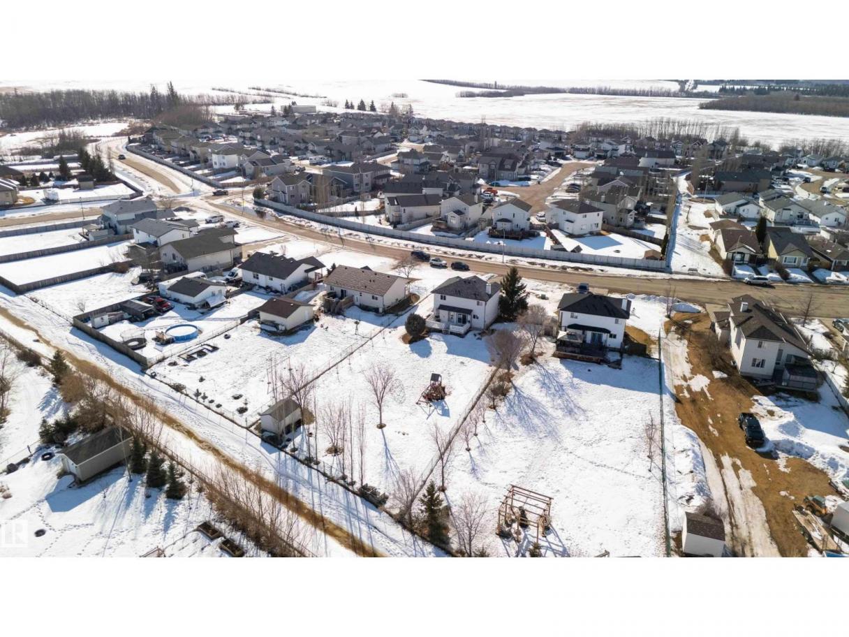 Ever dream of owning a .4-acre lot with the convenience of city water? This solid 2004-built, 1,816 sq. ft. two-storey home offers the perfect balance of massive outdoor space for the kids to play without the high maintenance of full acreage living. Featuring 5 bedrooms, two main-floor living rooms, and a fully developed basement with an additional rec room, there is space for everyone. The home is topped with a new roof (2024) and features a bright, west-facing layout. Outside, you’ll find a large garden, numerous fruit trees, a shed, and a deck with a gas BBQ hookup. The property includes a double attached garage and ample parking for an RV. Perfectly situated for convenience, you are walking distance to the elementary school and just 15 minutes from CFB Edmonton. This is a rare opportunity to secure a spacious family home on a prime, oversized lot. (id:6769)