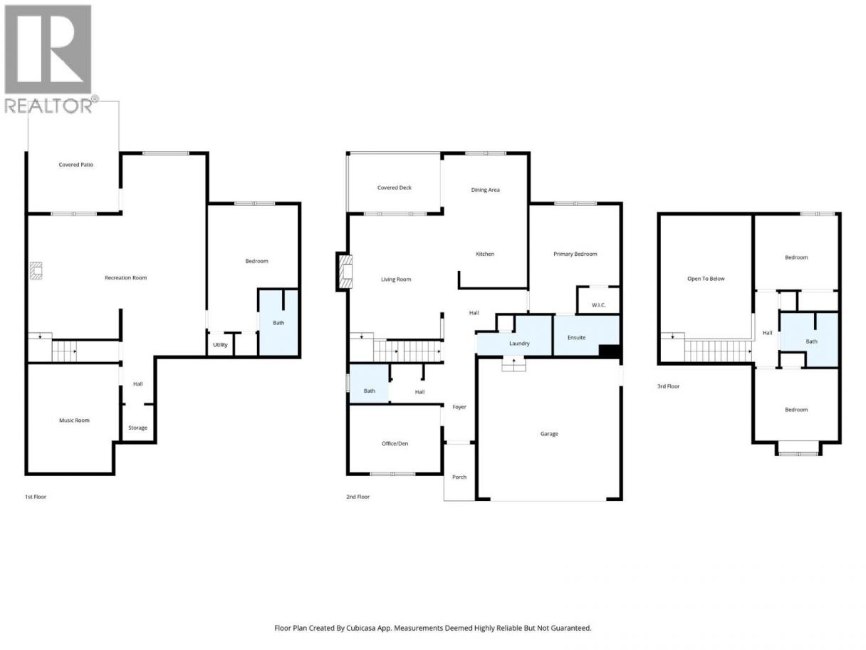 This 3022 sq ft, 2 storey home with main floor living that would suit a growing family or executive style living. Close to schools, shopping and hiking. The main floor provides mbdrm, ensuite, walk in closet, laundry room, good sized office which could also be a bedroom if closet was added. Open living room with vaulted ceilings and cozy gas fireplace. Kitchen is open with an island workspace and a dining area that looks out over semi private yard and a distant view. Glass sliding door to rear covered sundeck that offers a gas bbq hookup. Laundry on the main. 2nd floor provides 2 spacious bdrms & 4 pc bath. Bsmt is bright with an L-shaped fam & rec room. Another bdrm down that has ensuite-style access to a 3pc bath is great for the independent teen or guests. One more finished room currently used for music room with storage. Under ground irrigation, A/C & mature landscaping 2 car garage with RV parking as well. Call to view (id:6769)