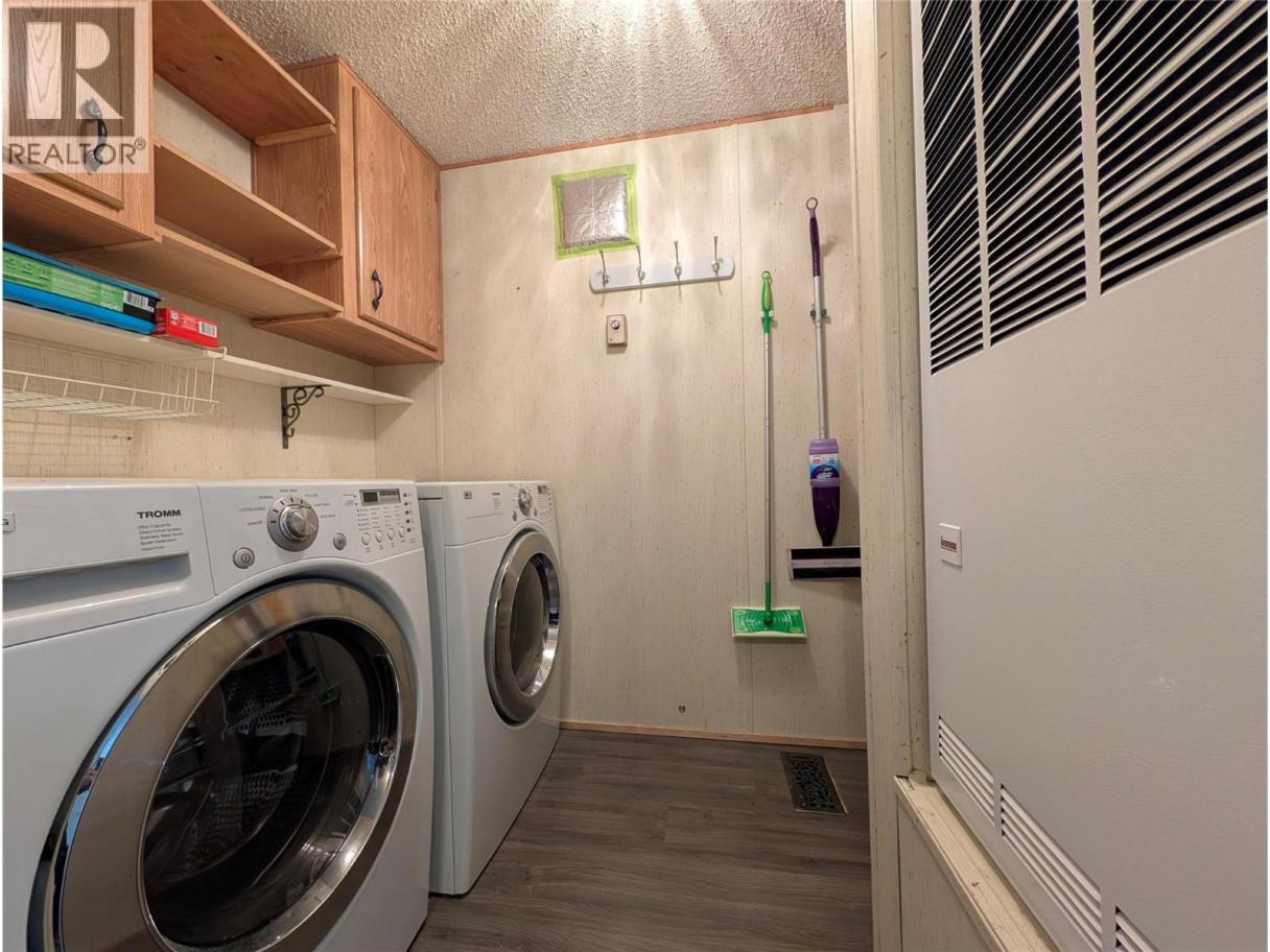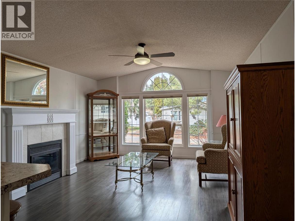 Very comfortable 14' wide home with two outside decks backing onto a park. This home is in great condition and features a large open living space and a covered and an un-covered deck. The skylight in the kitchen keeps it bright and modern. There is new laminate flooring throughout and a gas fireplace in the living room, where the large windows let in lots of light. The renovated bathroom features a tiled walk-in glass shower and a skylight. The second bedroom is spacious enough to double as a TV room. There is a storage/garden shed in the back as well as plenty of flower beds making up a very attractive yard. The yard flows seamlessly into the park extending the useable space and opening up the view. Come and see this attractive home today! Central Mobile Home Park is a friendly and beautiful park close to all the amenities of South Pandosy. One of the owner/occupants must be 55+ and pets are allowed with approval. However rentals are not allowed in the park. (id:6769)