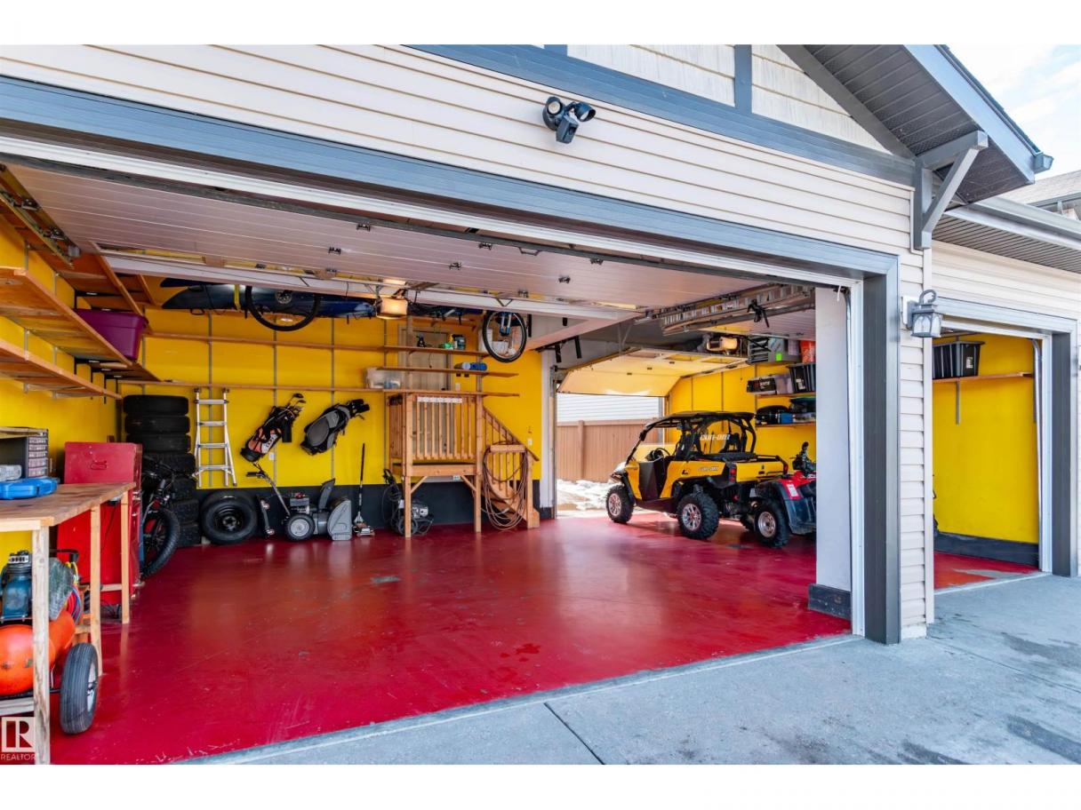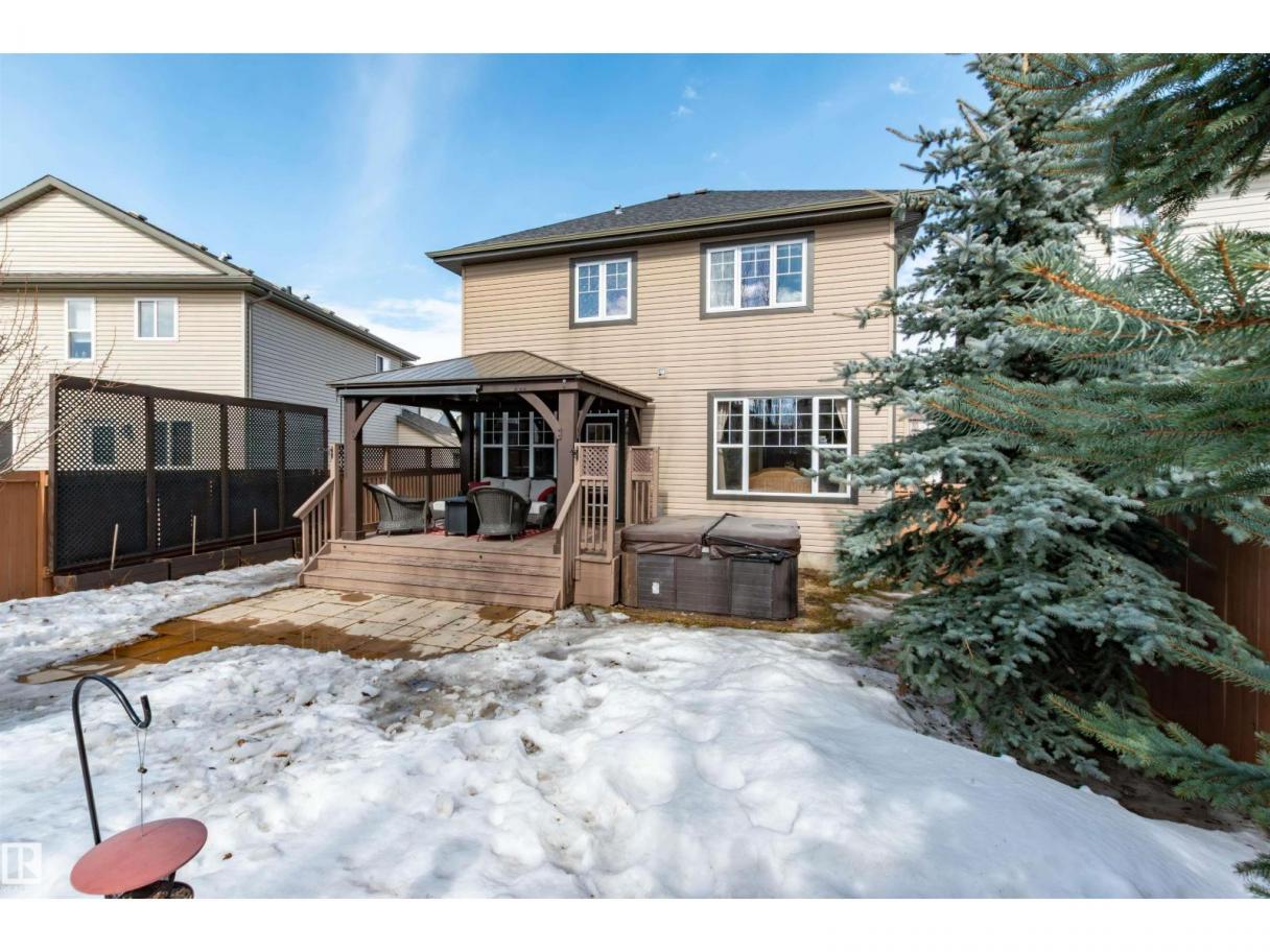 Did you say Oversized Triple Garage?? This immaculately appointed 4 bed, 3 1/2 bath 2 storey beauty, in the family friendly Fort Sask. comm. of Westpark, checks all the boxes. Once you get past the impressive and uber functional triple garage (heated and w/ 2 fl. drains and h/c water bibs), you are presented with a luxurious open concept main floor living, kitch. and eating space. The FULL WALL, floor to ceiling stone fireplace offers a unique living and entertainment area normally reserved for exclusive estate properties. So much natural light!! A well appointed kitchen with gas range, ceiling high cabinets, bar seating, and granite counters, looks directly out to an amazing outdoor gazebo covered deck w/ step in tub. The large primary bed. w/ luxury 4 pce ensuite (sep. tub and shower) sets the romantic mood. Spacious bonus room area for family entertainment. Fully finished basement w/ wet bar, and an additional bedr., full bath, and family room. Close to parks and walking trails!! Raise a family here!! (id:6769)
